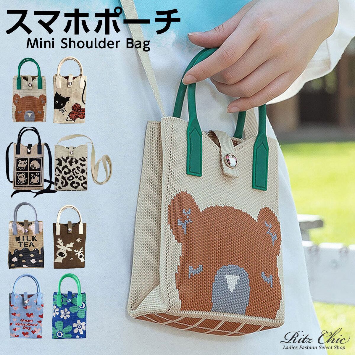 スマホポーチ ショルダー ミニバッグ レディース キッズ 子供 韓国 コンパクト 軽量 小さめ 大人 かわいい おしゃれ スマホポシェット ミニトート ライブ フェス イベント ニットバッグ ニット 大人可愛い 大人女子