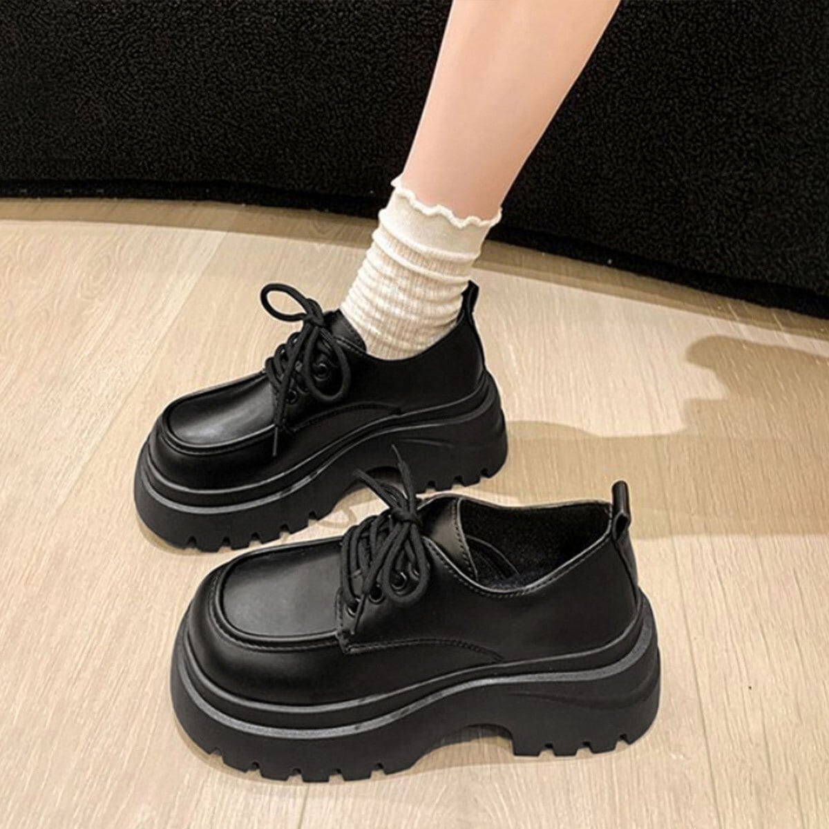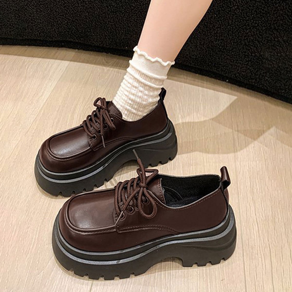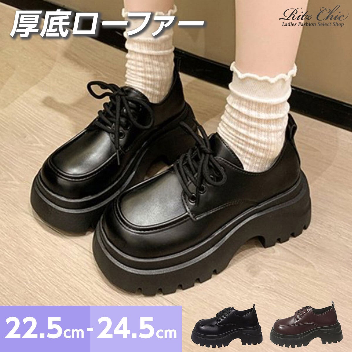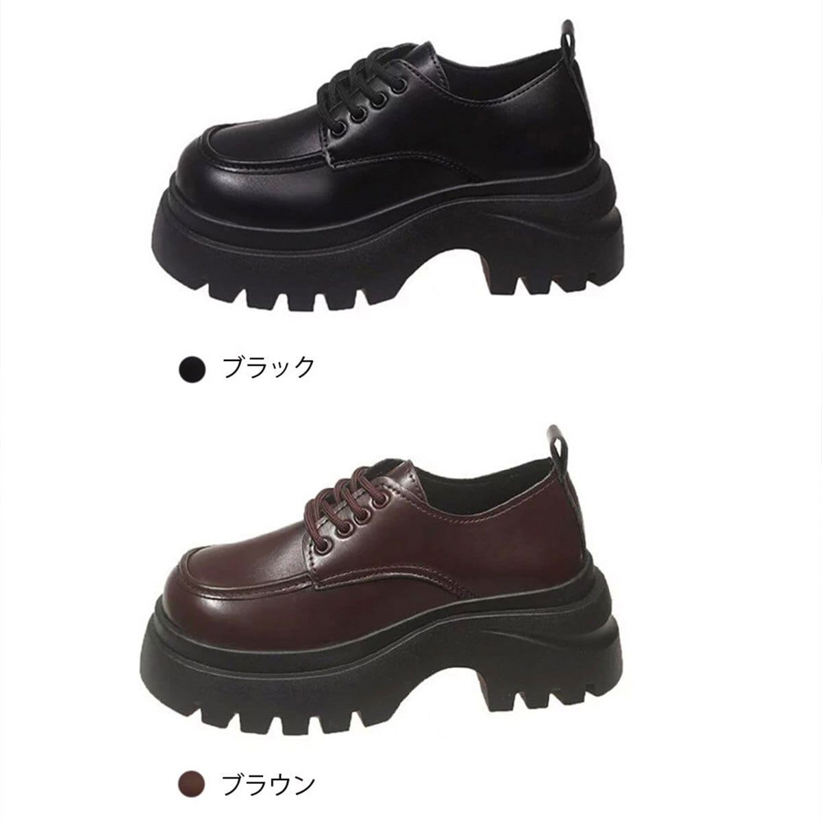 厚底 ローファー 韓国風 レディース 通勤 通学 大人 学生 スクエアトゥ シューズ ボリュームソール レースアップ きれいめ おしゃれ カジュアル 大人可愛い 大人女子