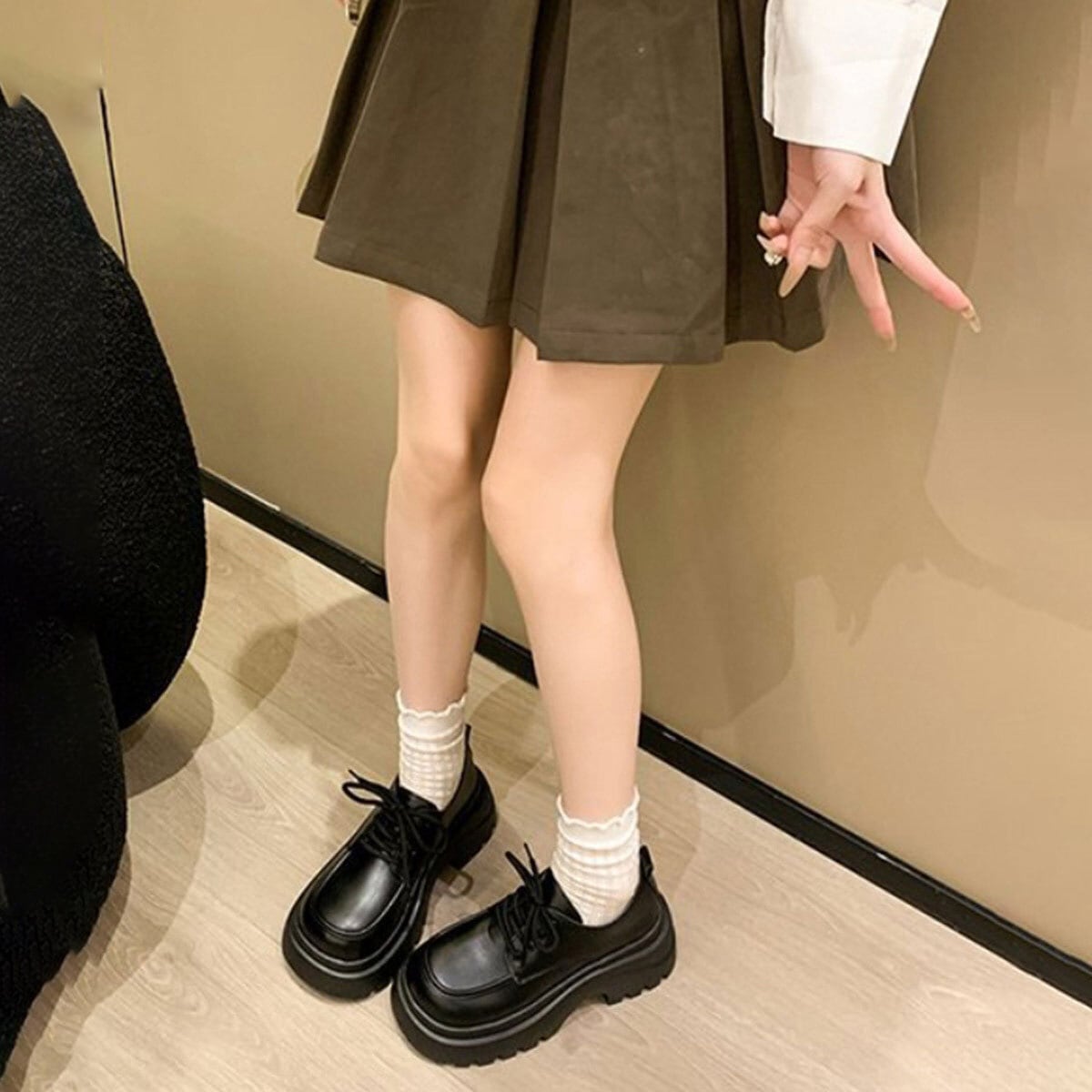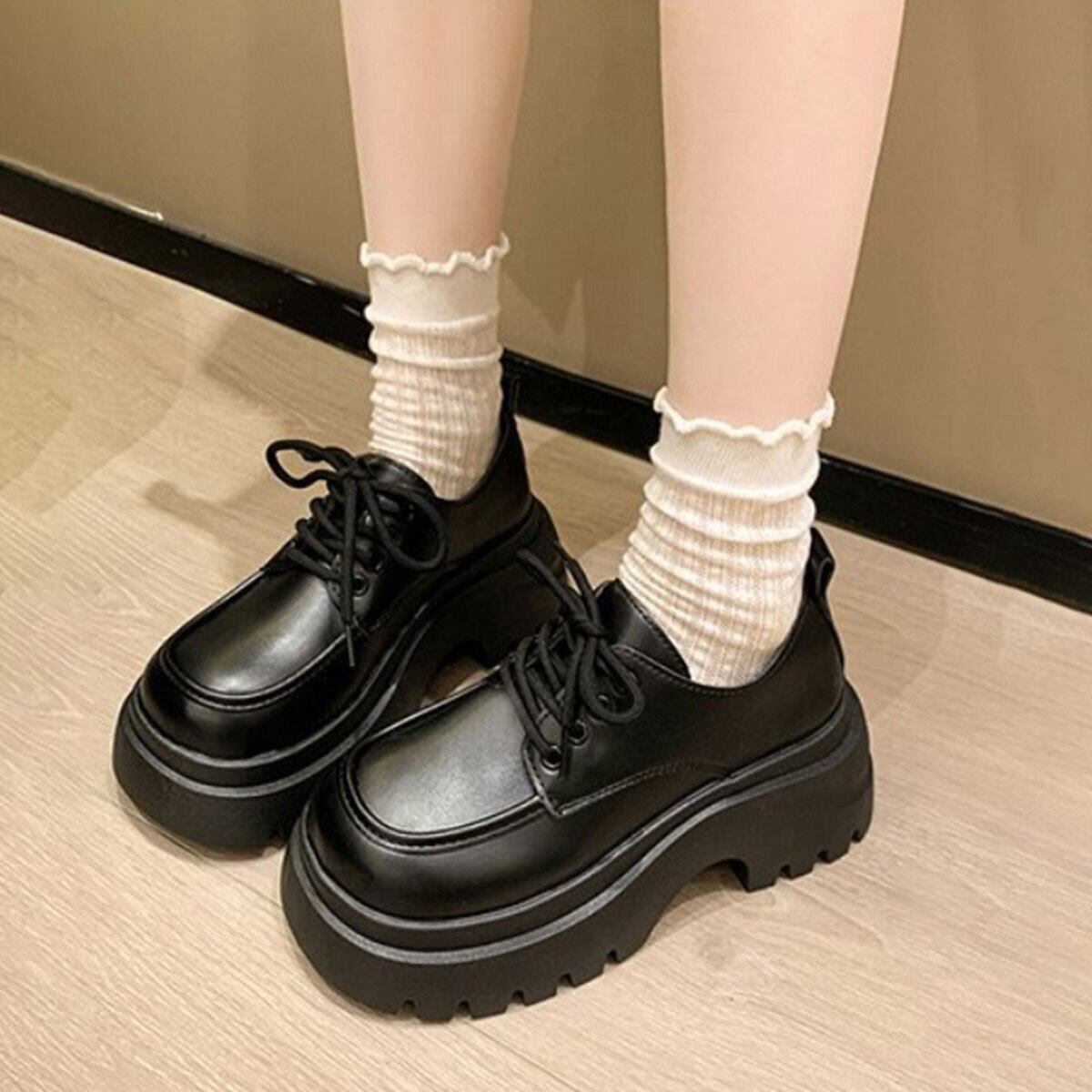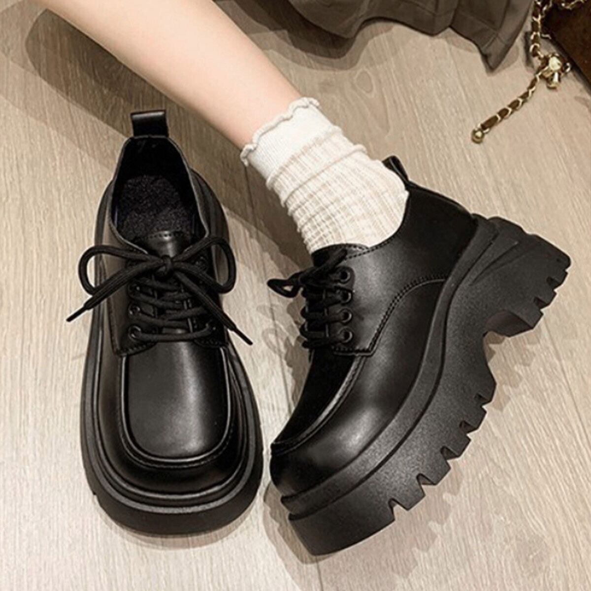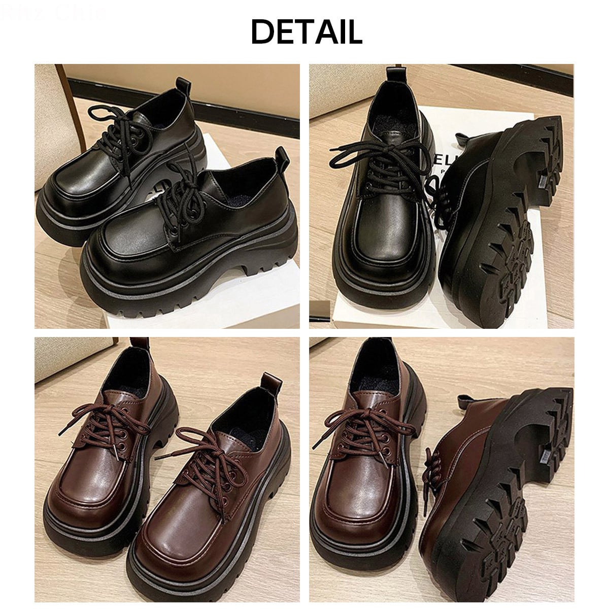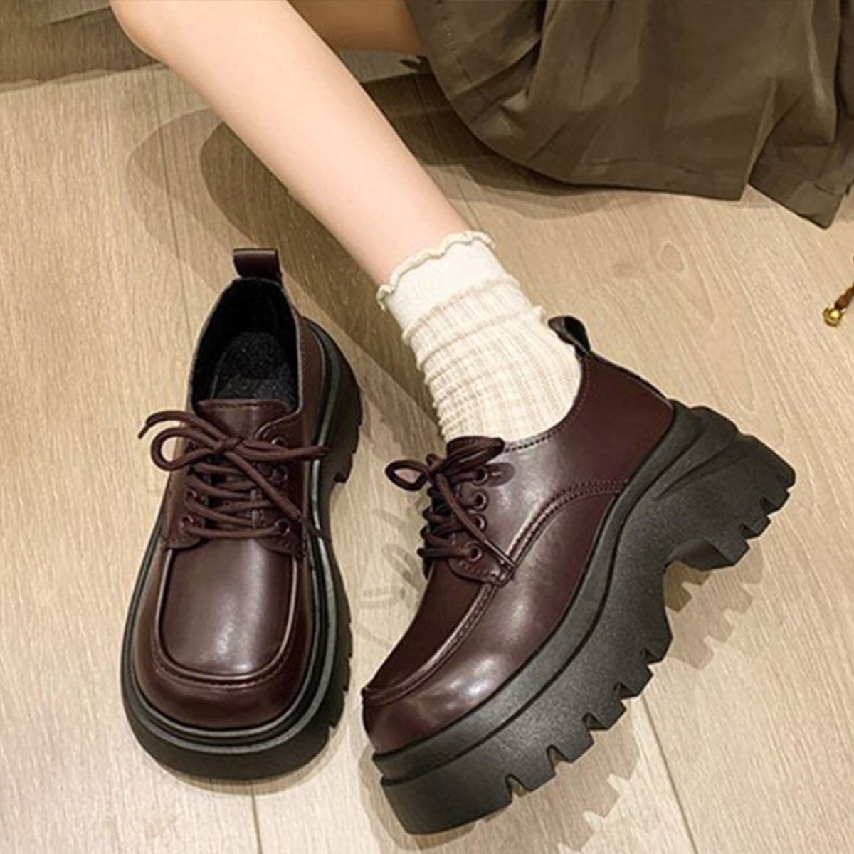 厚底 ローファー 韓国風 レディース 通勤 通学 大人 学生 スクエアトゥ シューズ ボリュームソール レースアップ きれいめ おしゃれ カジュアル 大人可愛い 大人女子