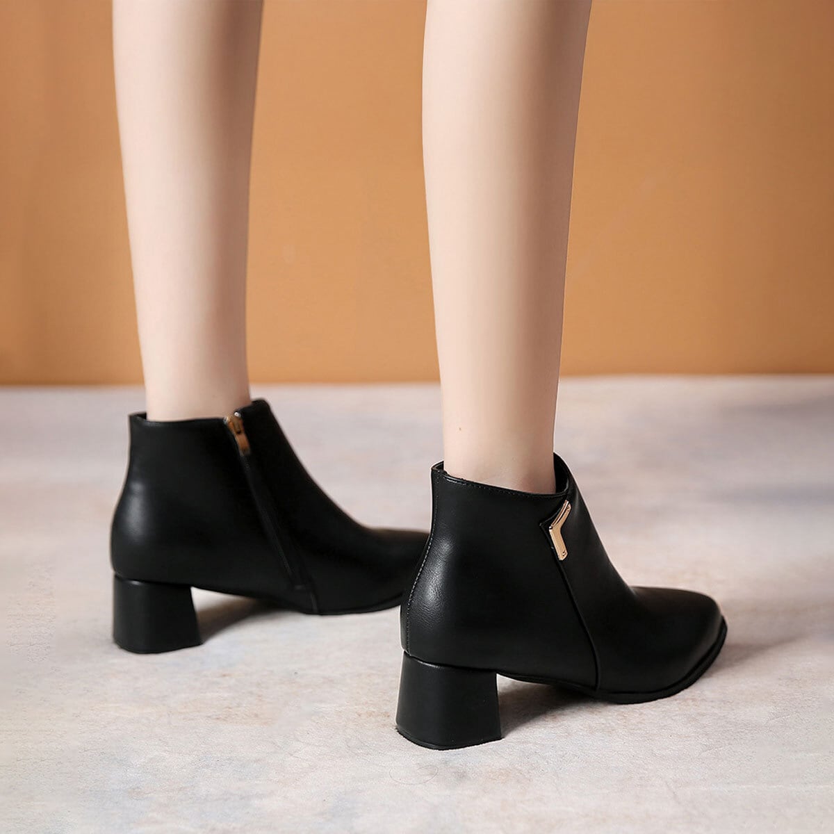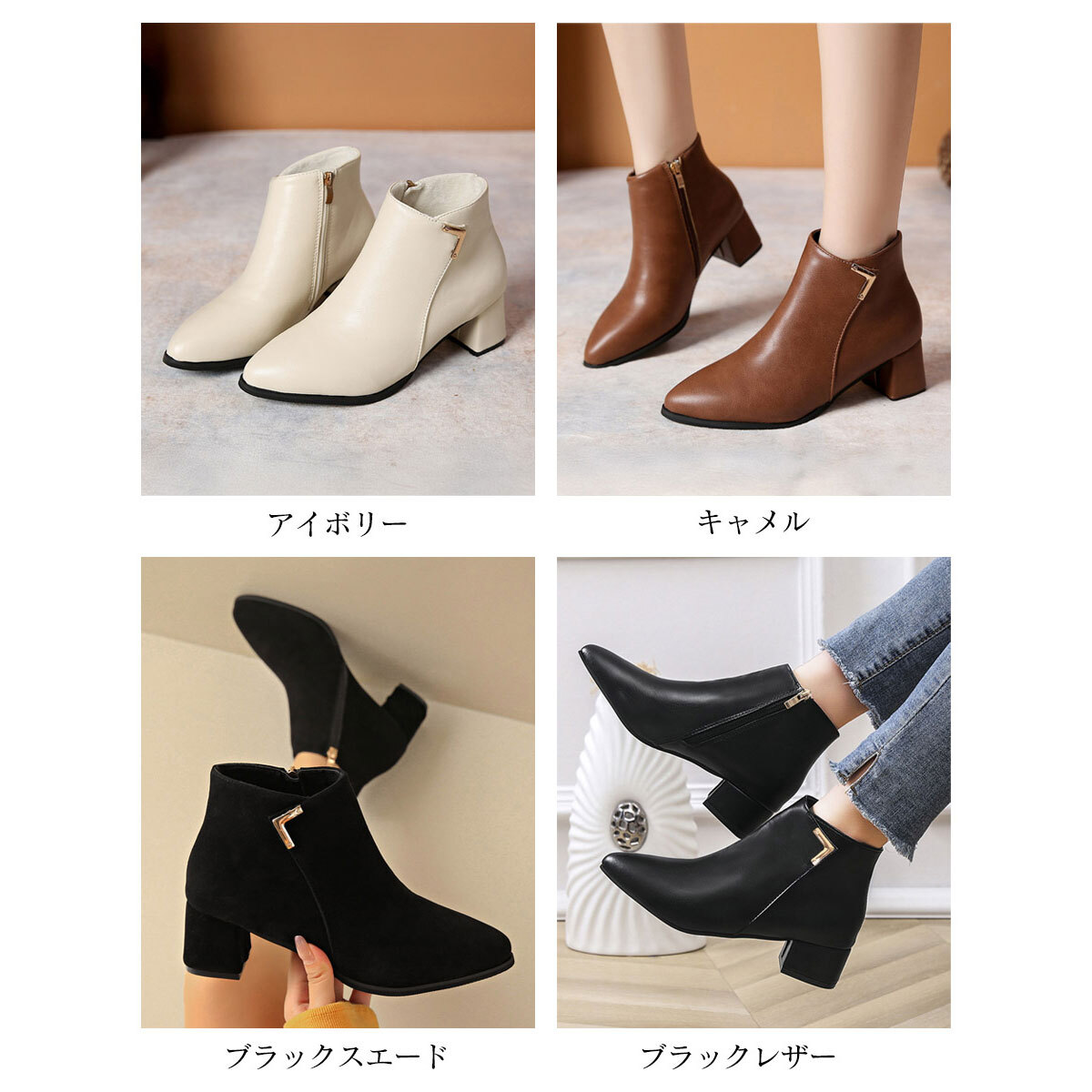 ショートブーツ 裏起毛 レディース 秋冬 韓国 ブーツ 防寒 保温 きれいめ 大人 カジュアル 通勤 通学 ビジネス OL サイドファスナー ローヒール 歩きやすい 痛くない 大人可愛い 大人女子