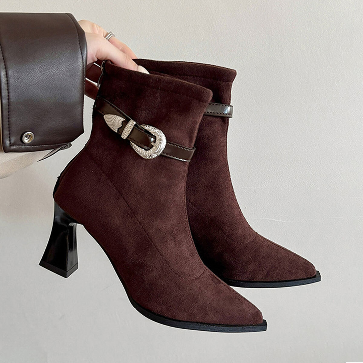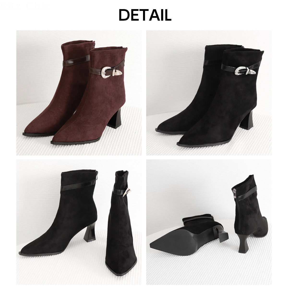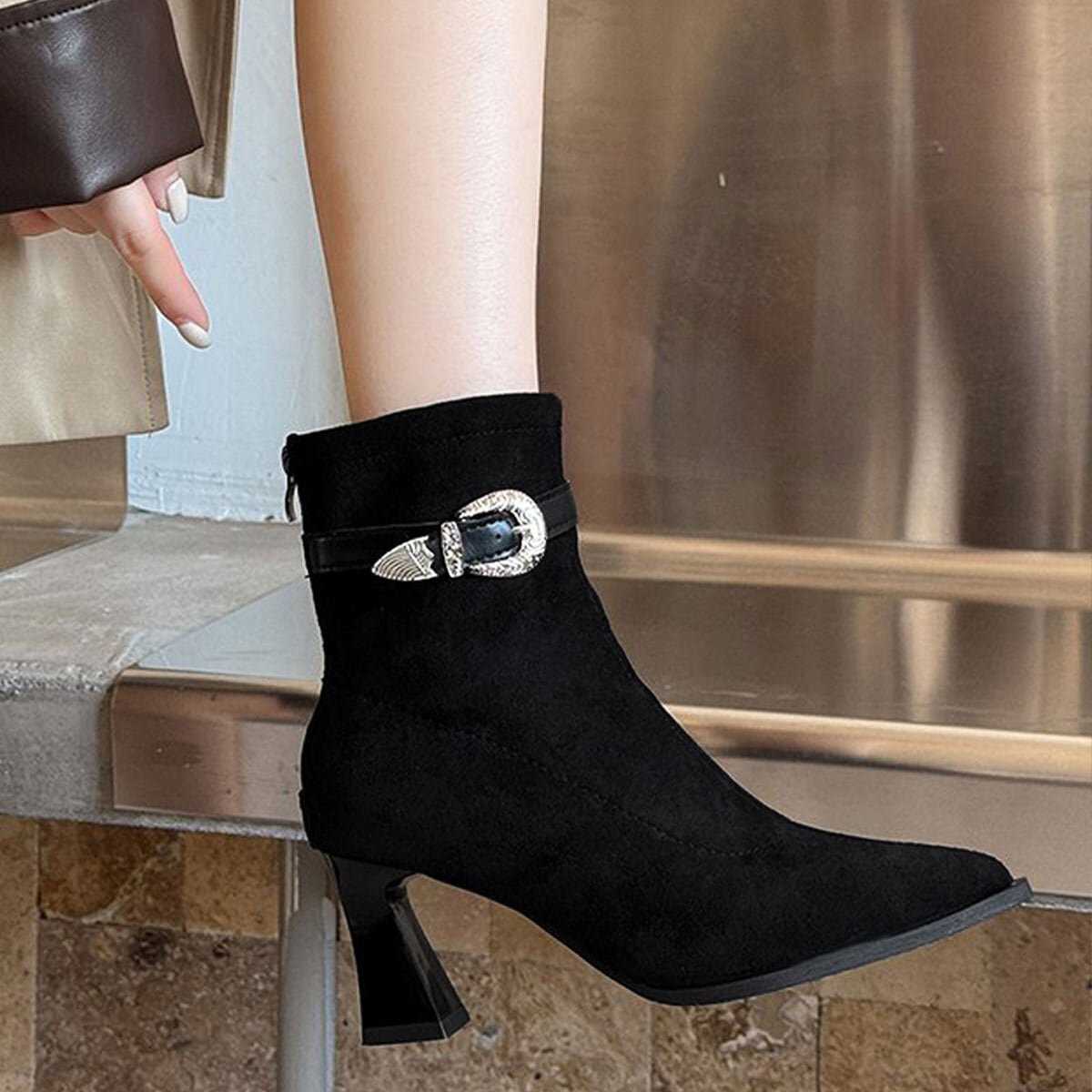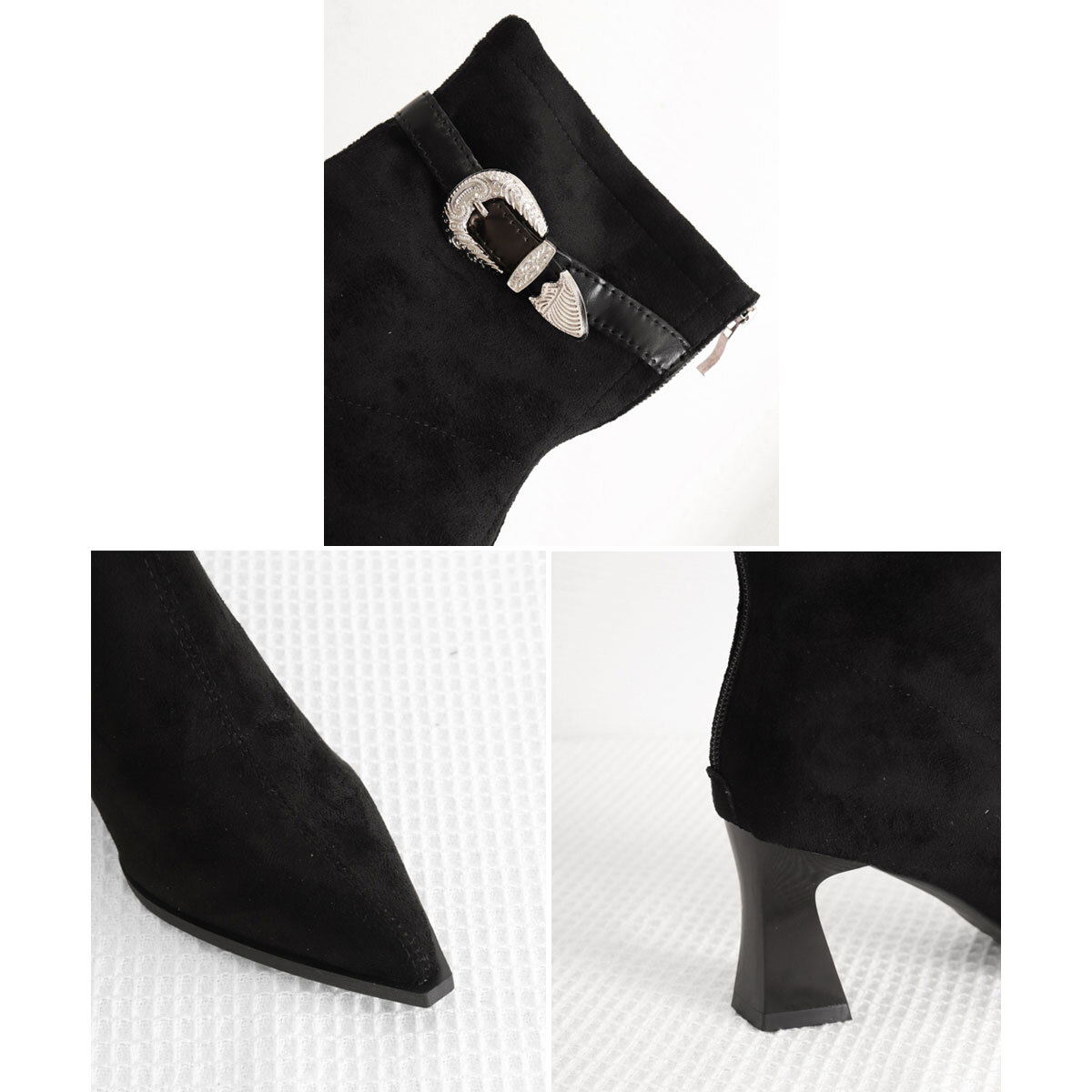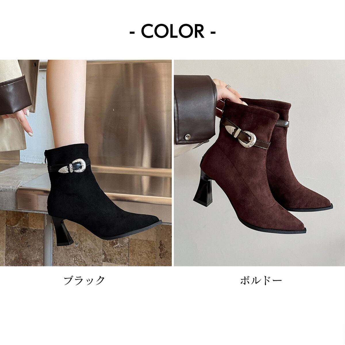 ポインテッドトゥ ショートブーツ 裏微起毛 レディース 秋冬 ブーツ 太ヒール 大人 きれいめ カジュアル 通勤 通学 OL ビジネス オフィス 歩きやすい 痛くない チャンキーヒール 大人可愛い 大人女子