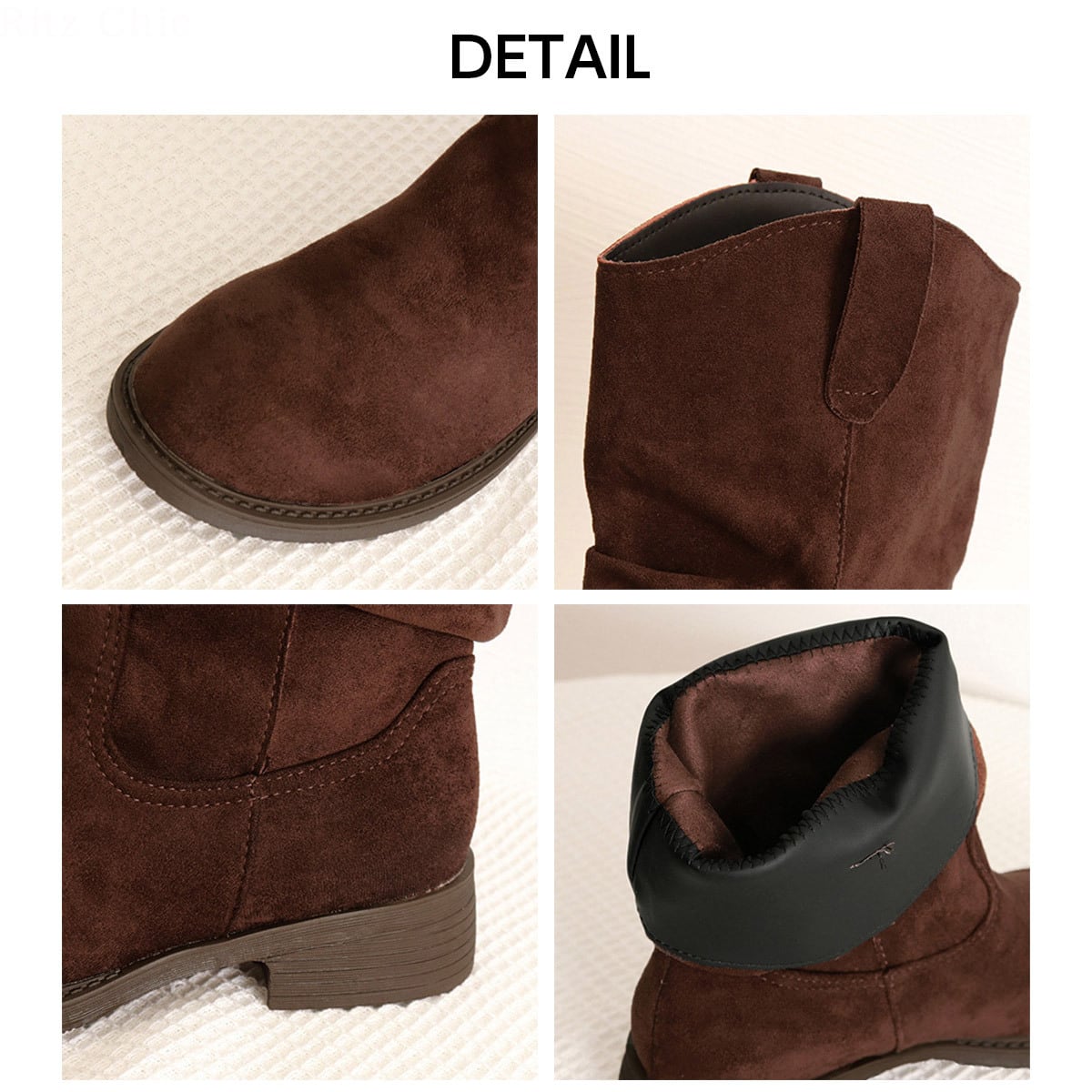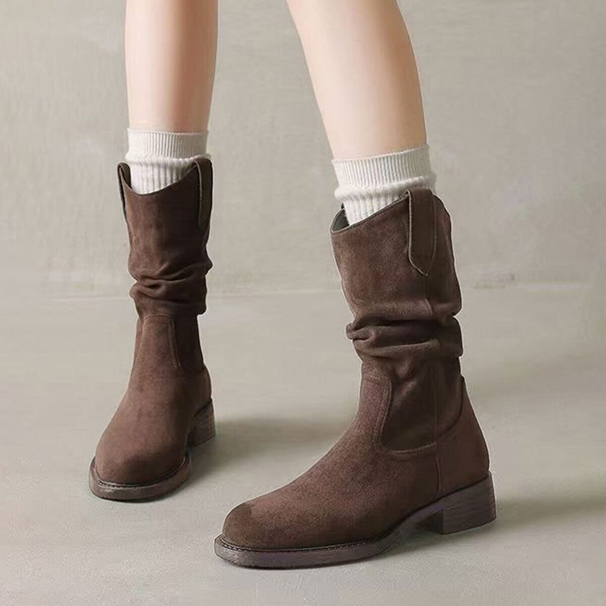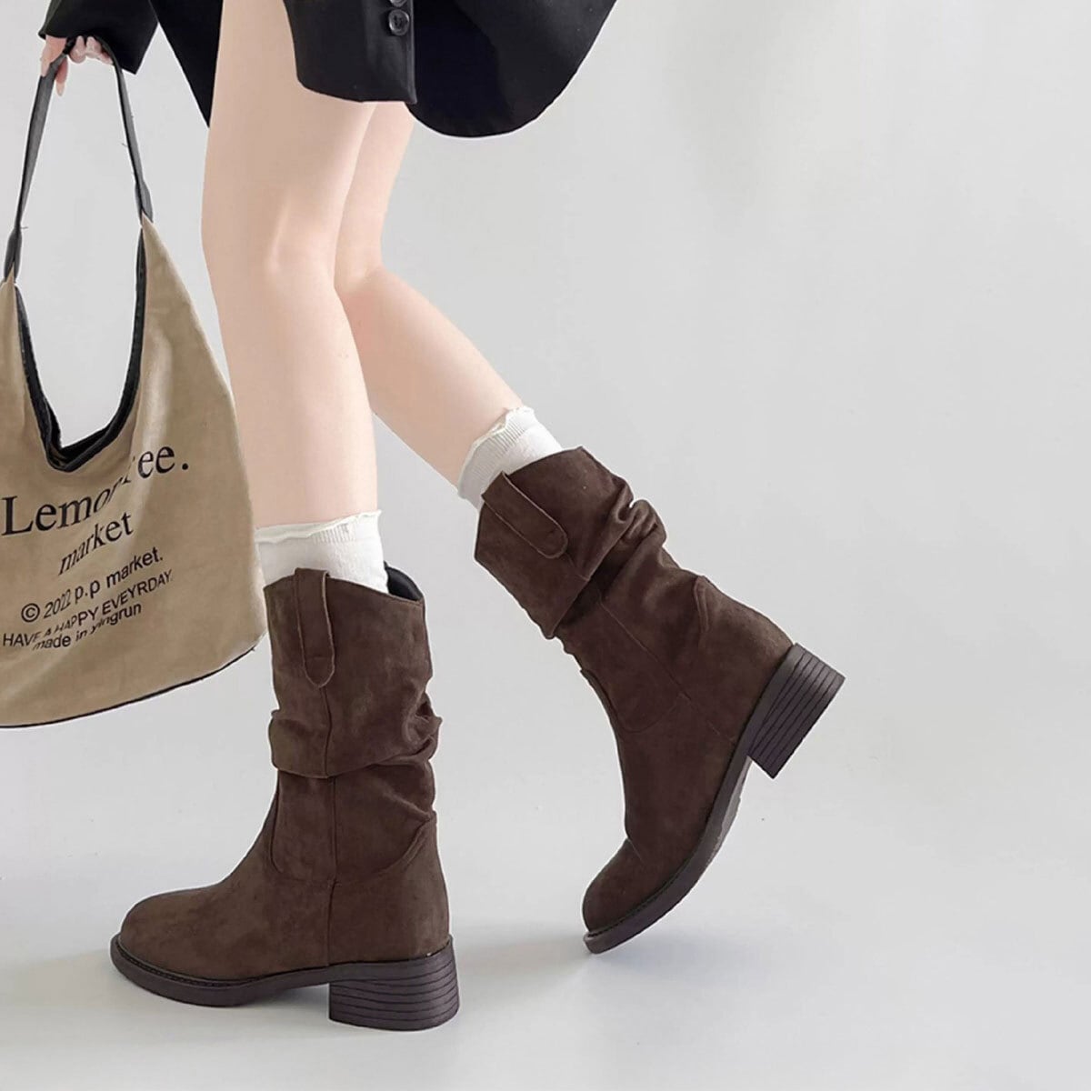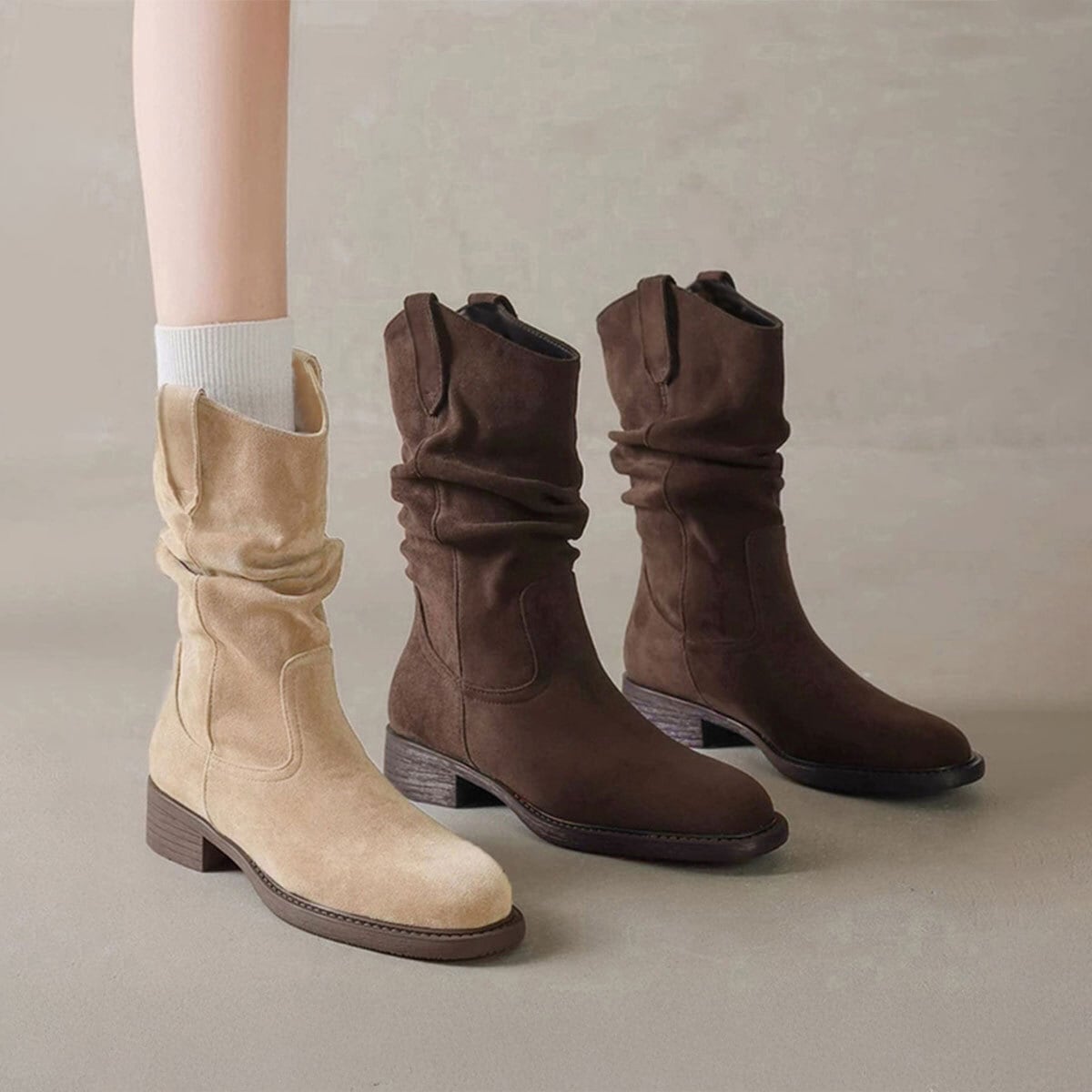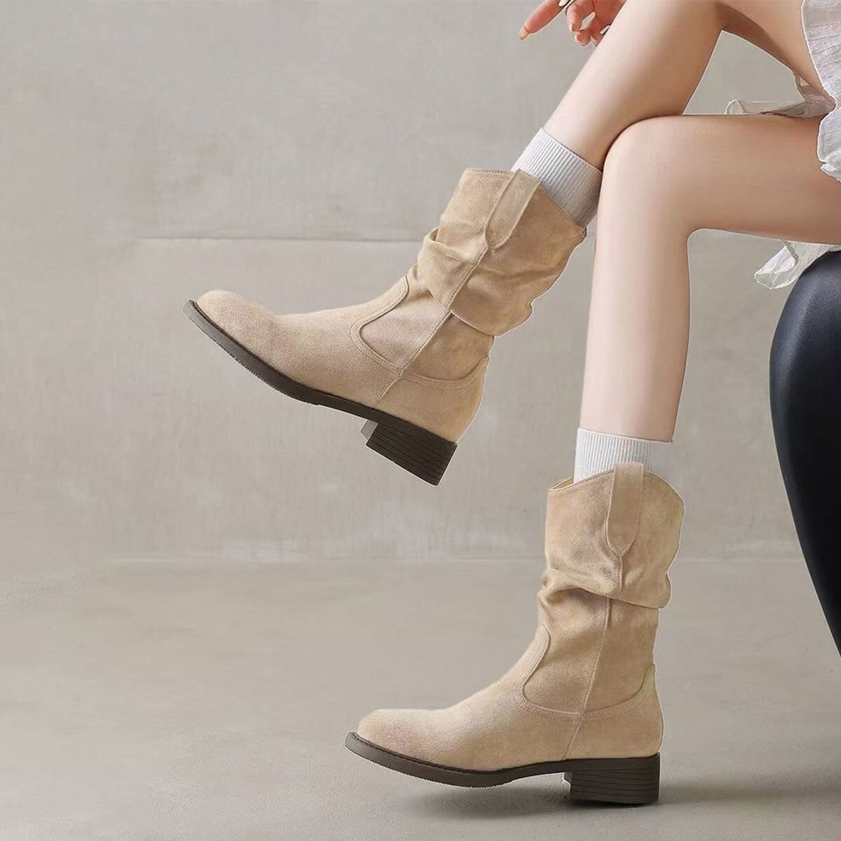 程よい高さのミドル丈に、くしゅくしゅっとしたシルエットが脚を美しく綺麗に見せて、足元に優雅な印象を与えてくれるウエスタンスタイルのミドルブーツです。