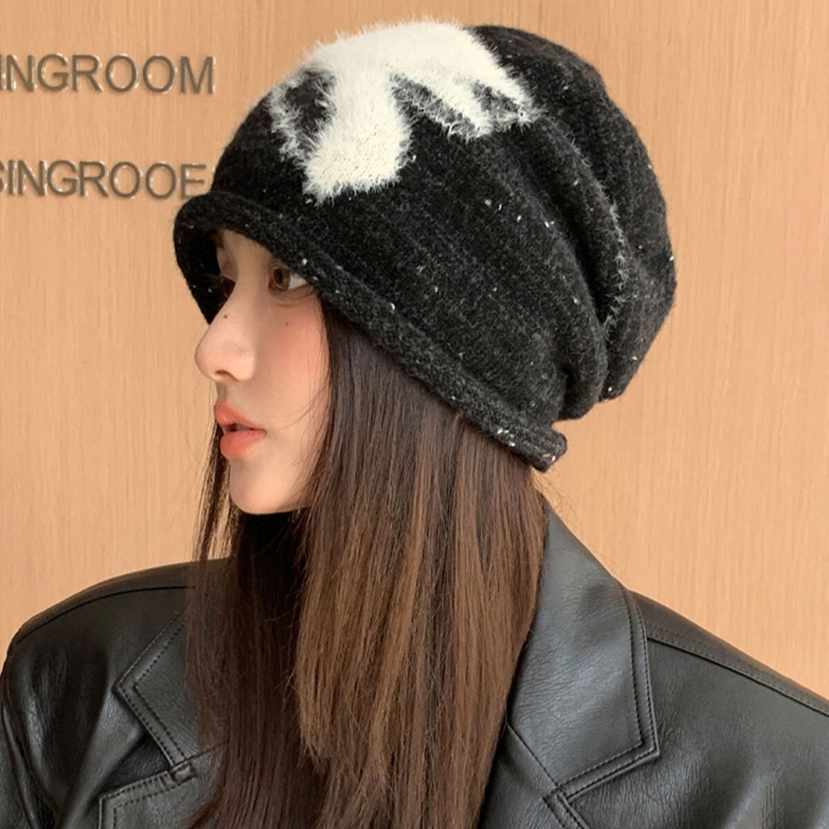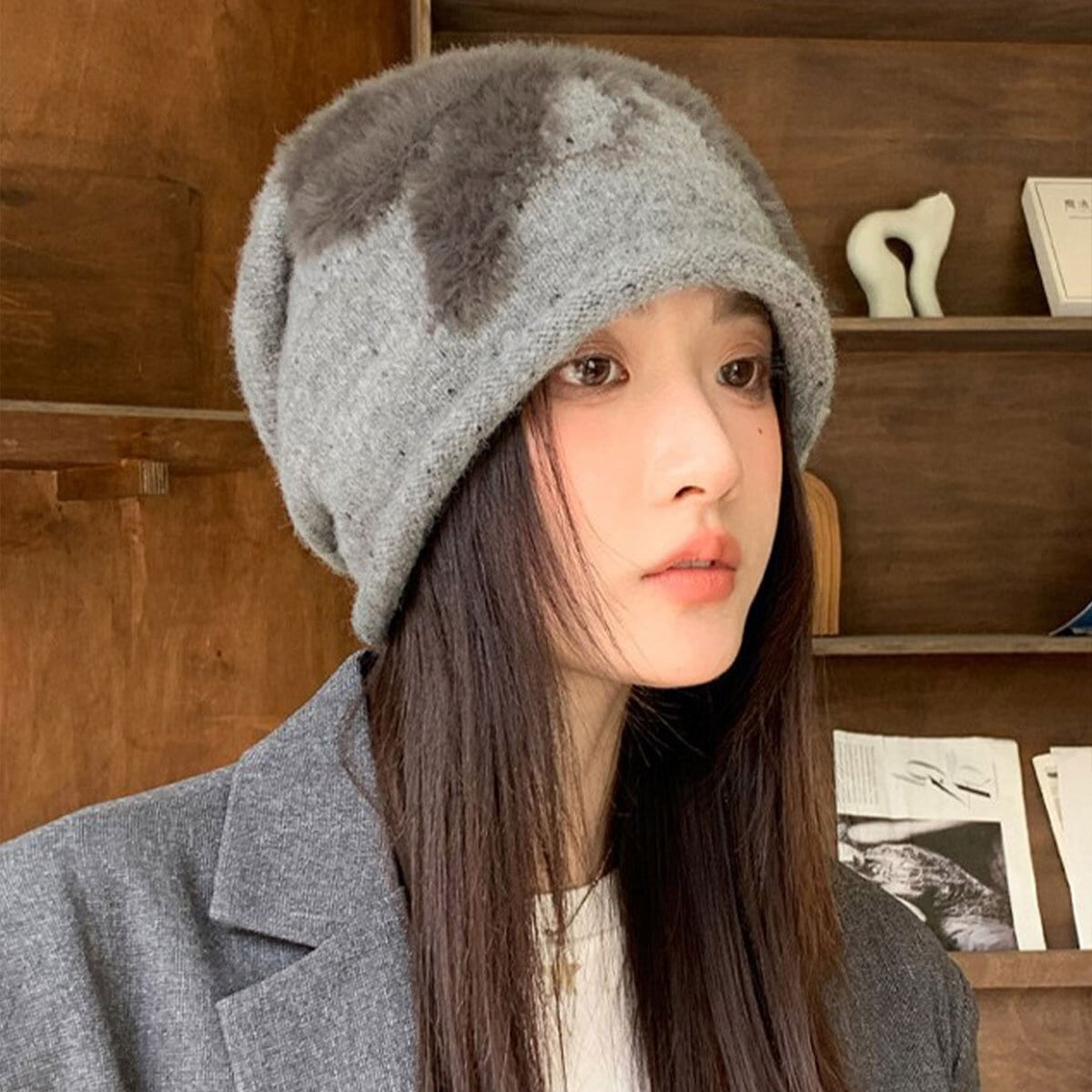 ◇ふわふわで暖かいニット素材のビーニー帽。
