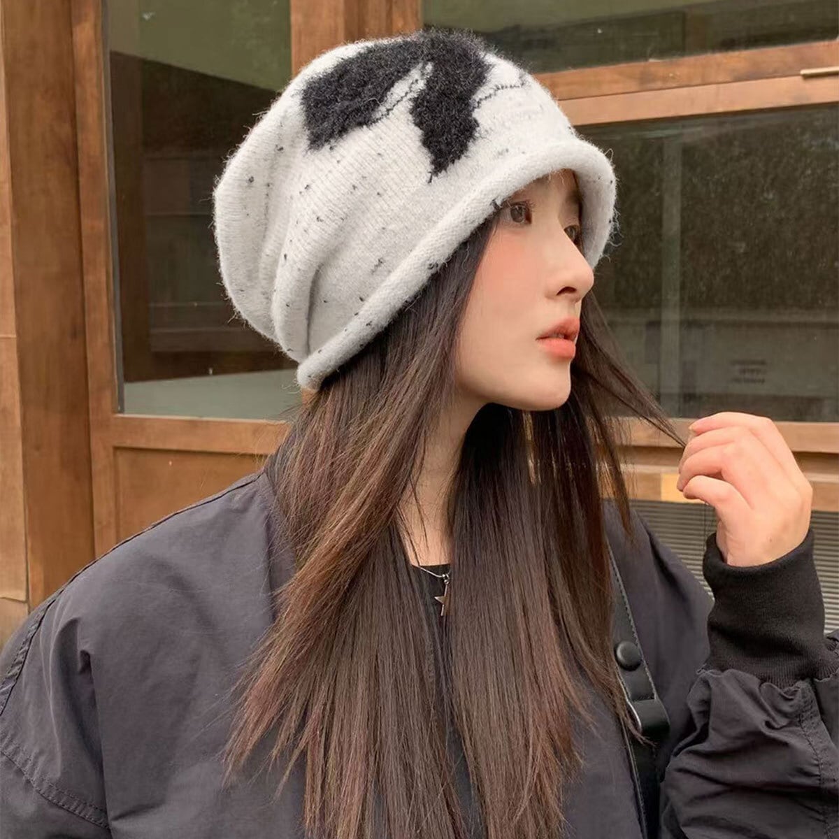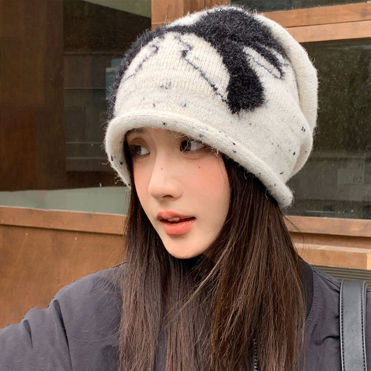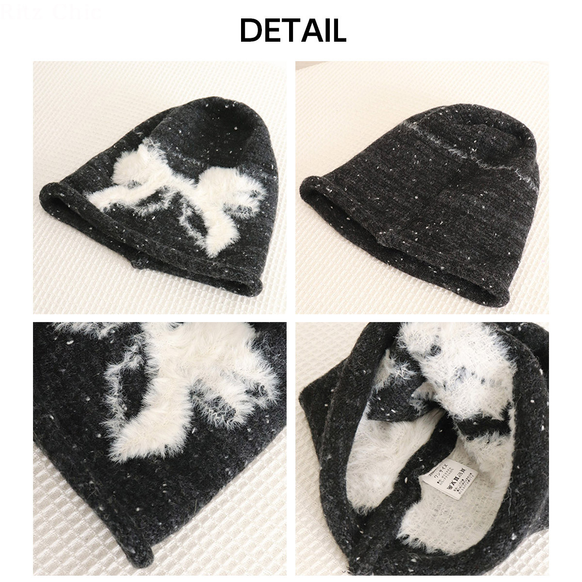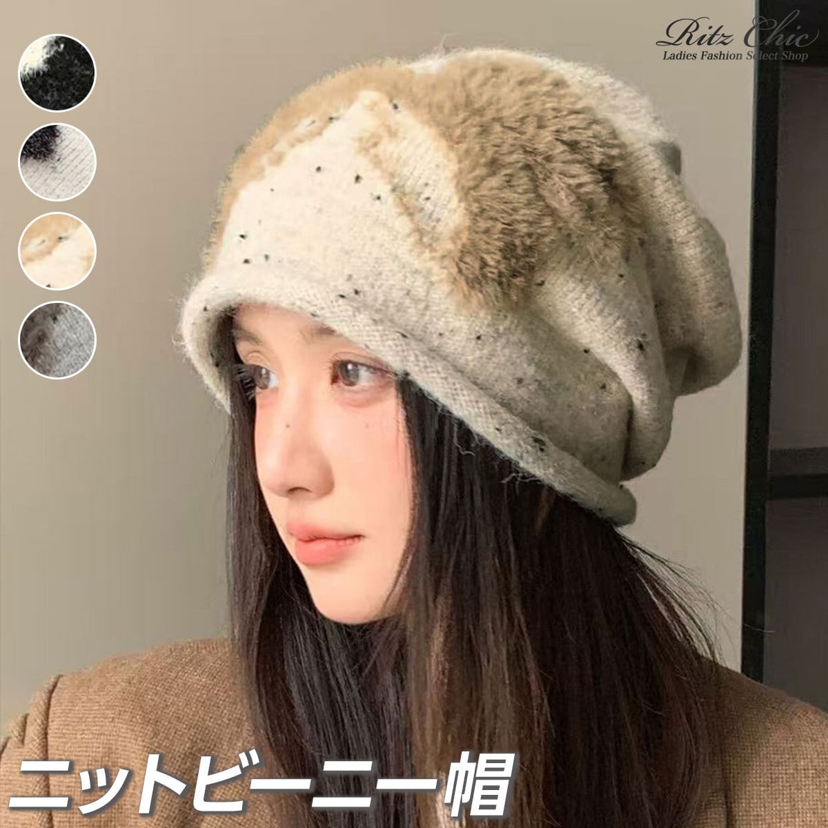 ビーニー帽 リボン柄 ニット レディース 秋冬 韓国 帽子 防風 防寒 暖かい ふわふわ きれいめ 大人 かわいい カジュアル ストリート アメカジ アウトドア おしゃれ 大人可愛い 大人女子