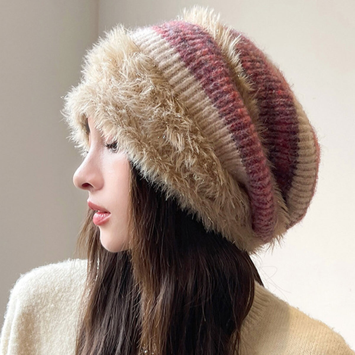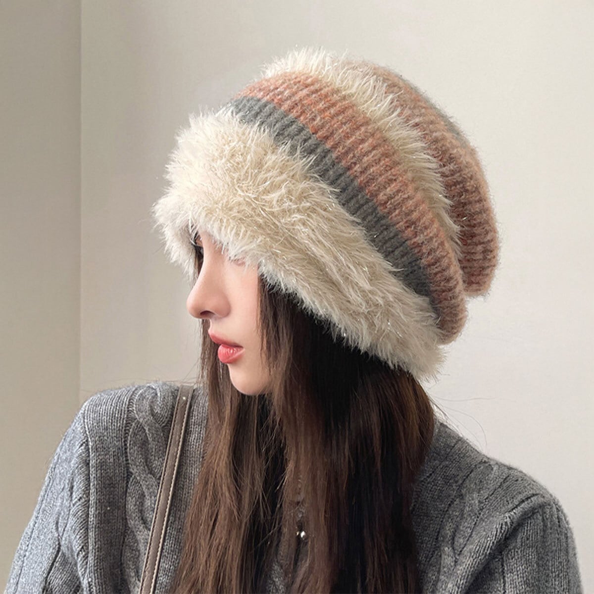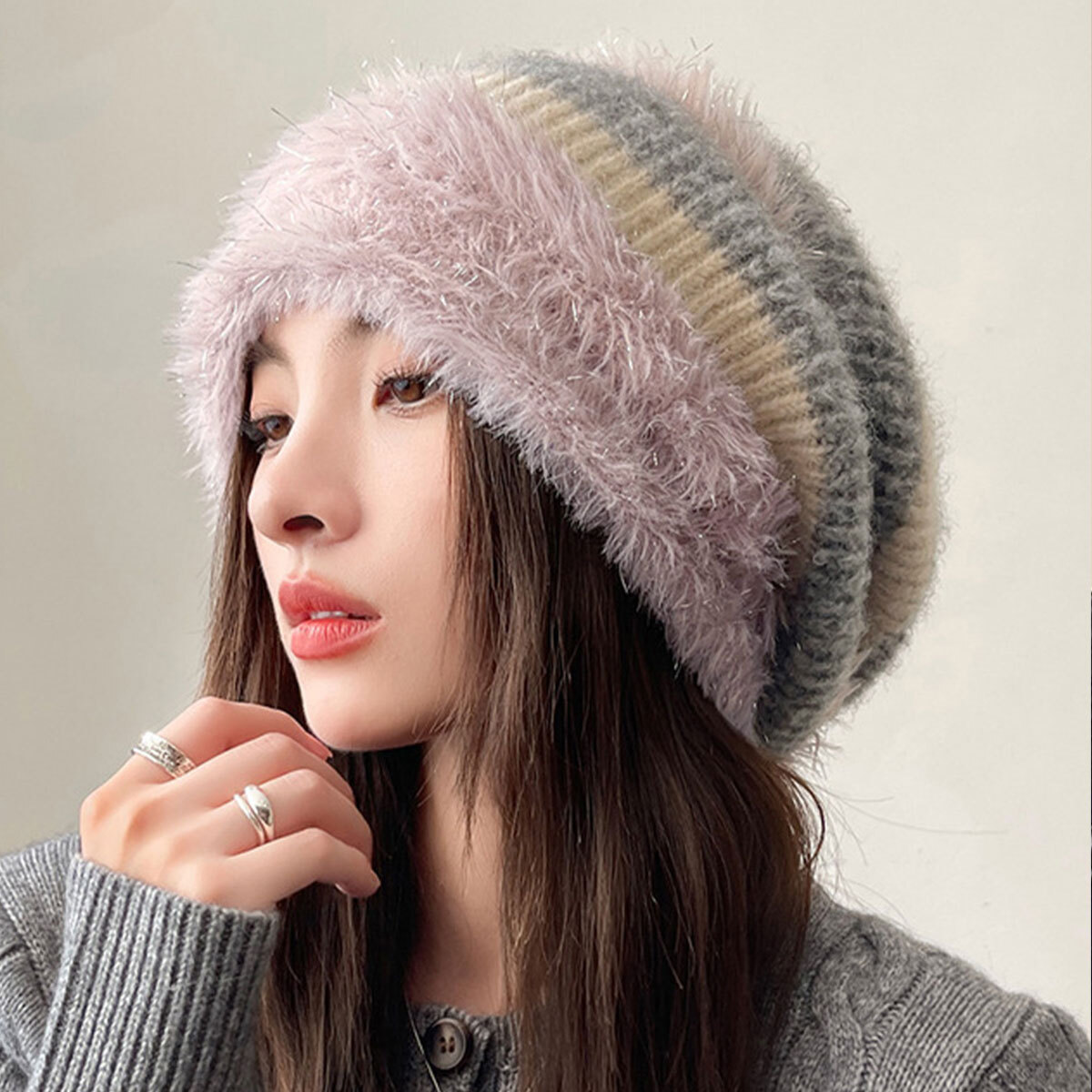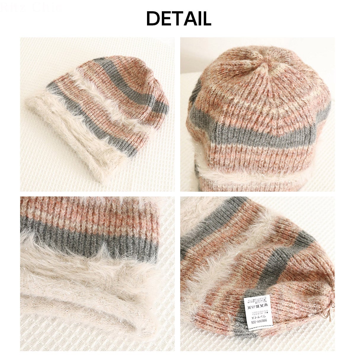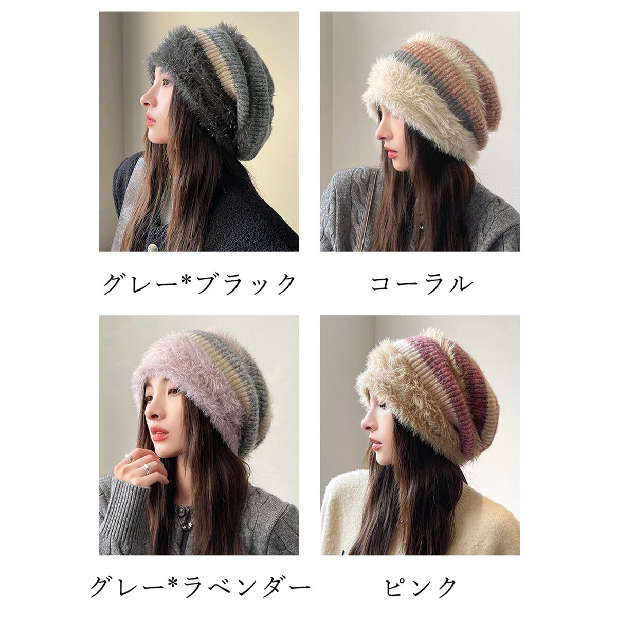 リブ編み ビーニー帽 レディース 秋冬 韓国 ニット帽 おしゃれ 大人 かわいい きれいめ 防寒 保温 暖かい 配色 帽子 ふわふわ 折りたたみ 小顔 大人可愛い 大人女子