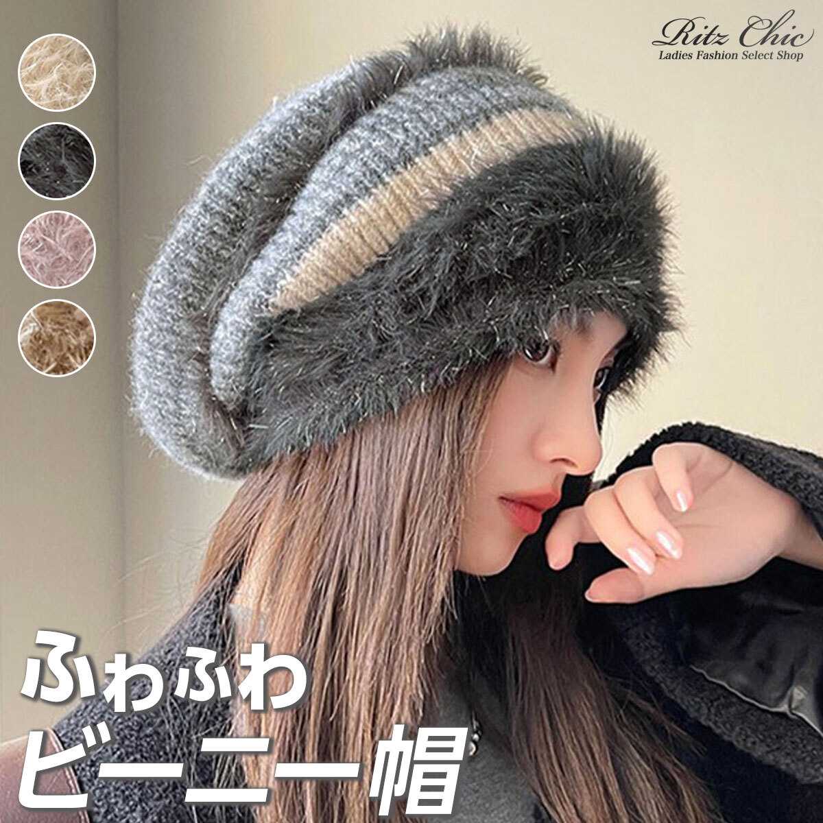 ◇ふわふわ素材が可愛いニットビーニー帽。