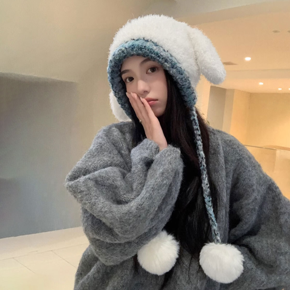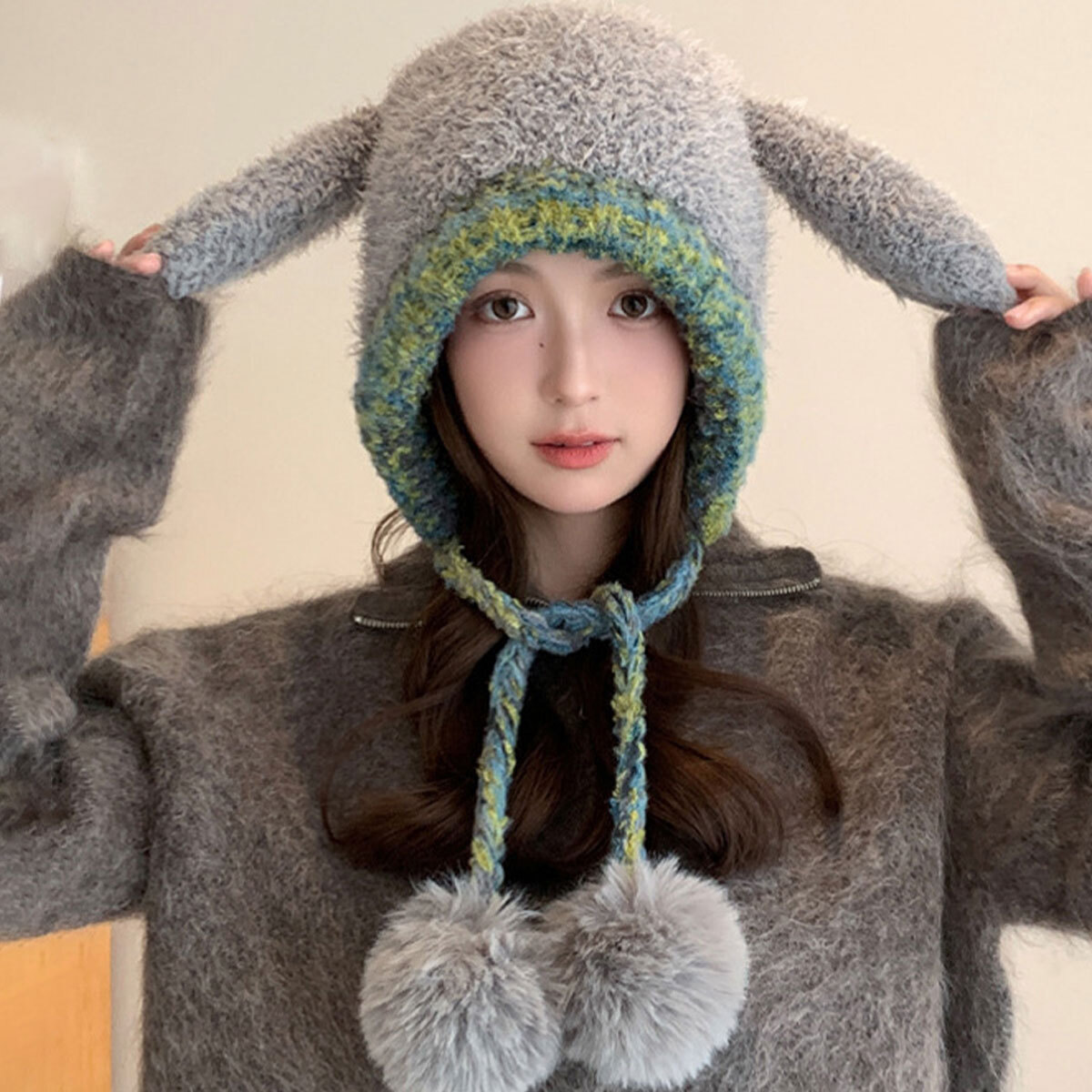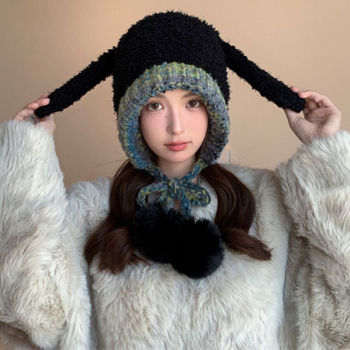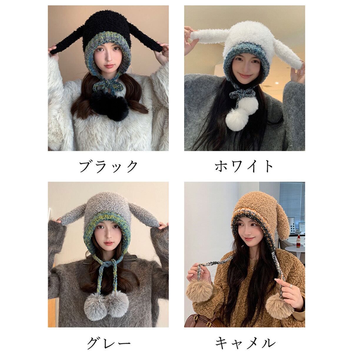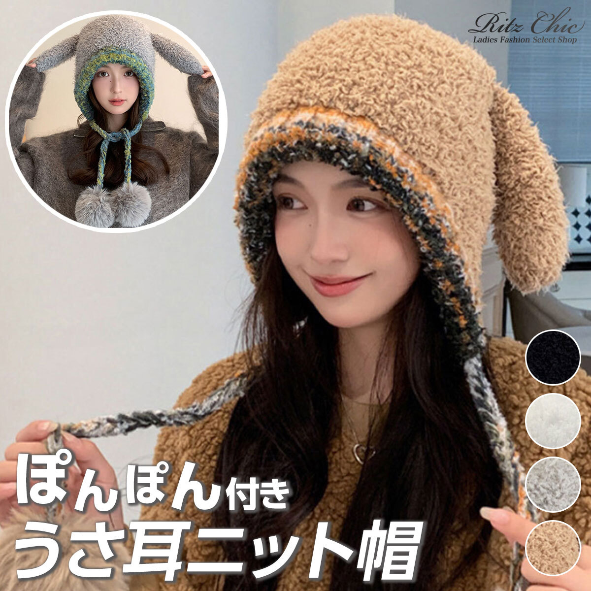 うさ耳 ニット帽 ぽんぽん付き レディース 秋冬 韓国 帽子 ウサミミ おしゃれ 大人 かわいい フェミニン ガーリー 防寒 保温 暖かい 耳付き帽子 大人可愛い 大人女子