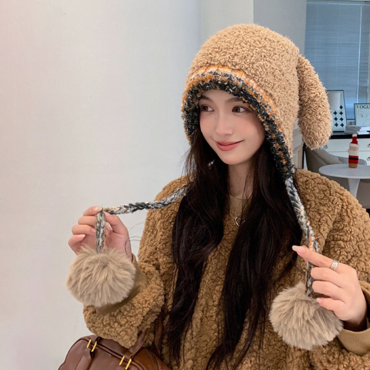 ふわふわでもこもことしたウサミミデザインが可愛いニット帽です。