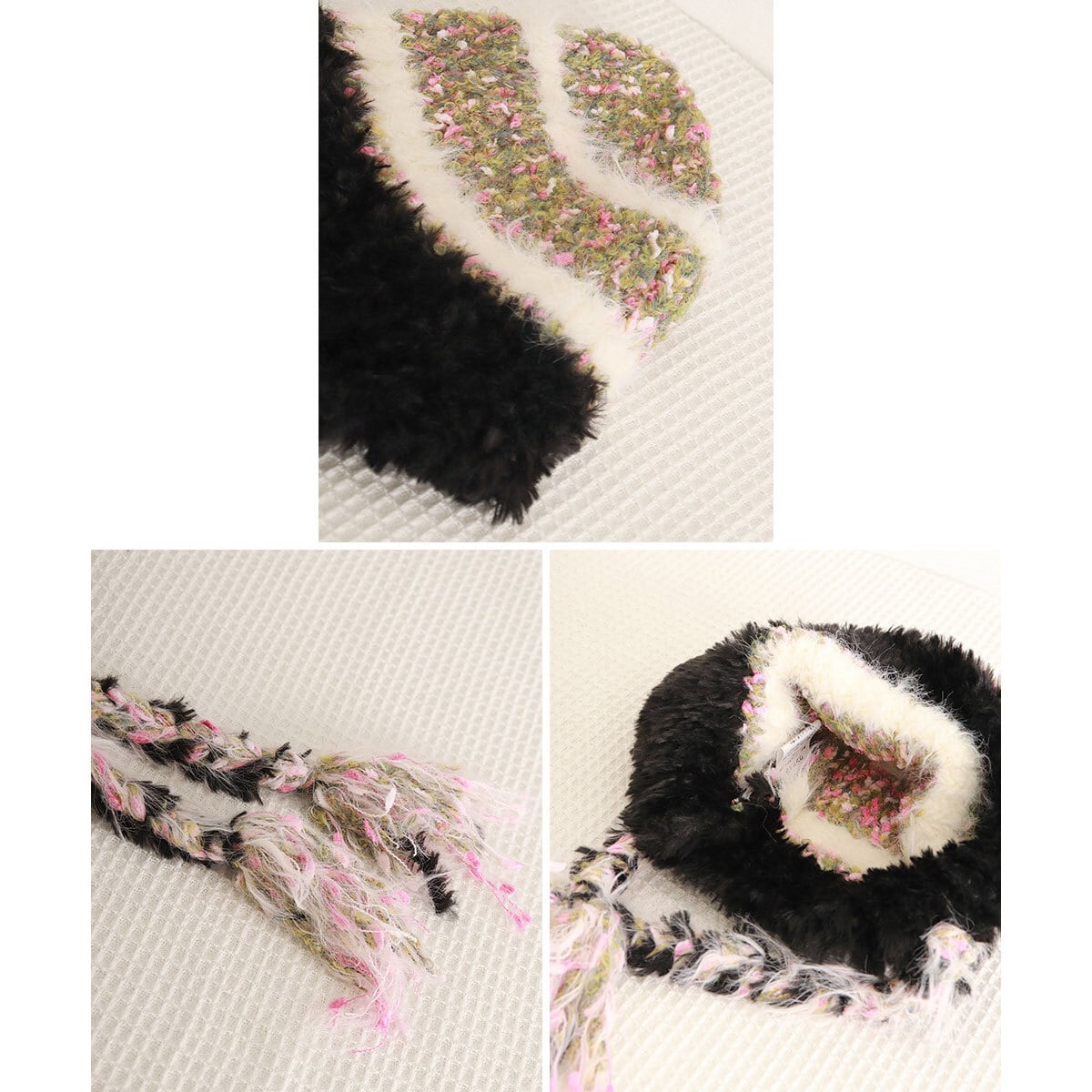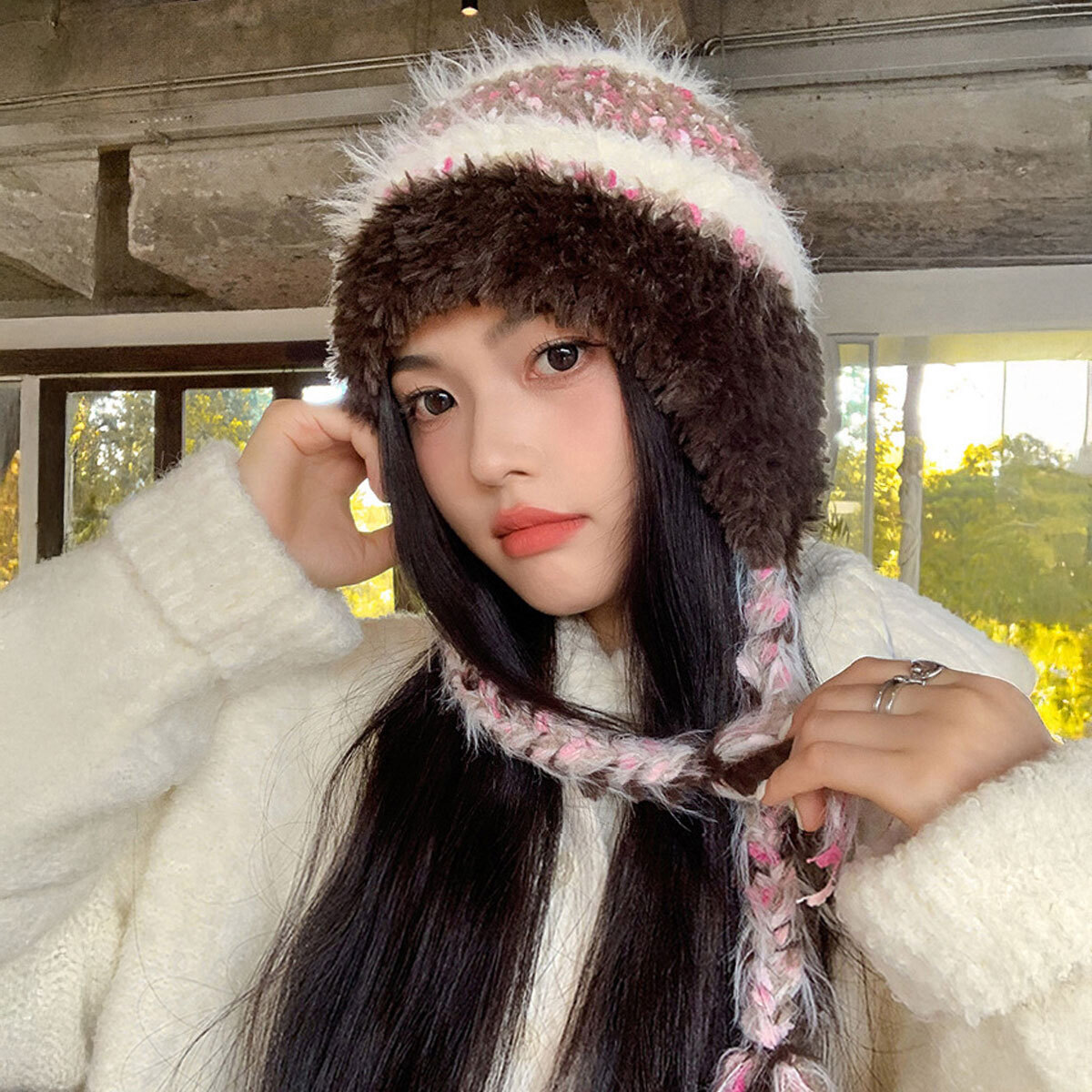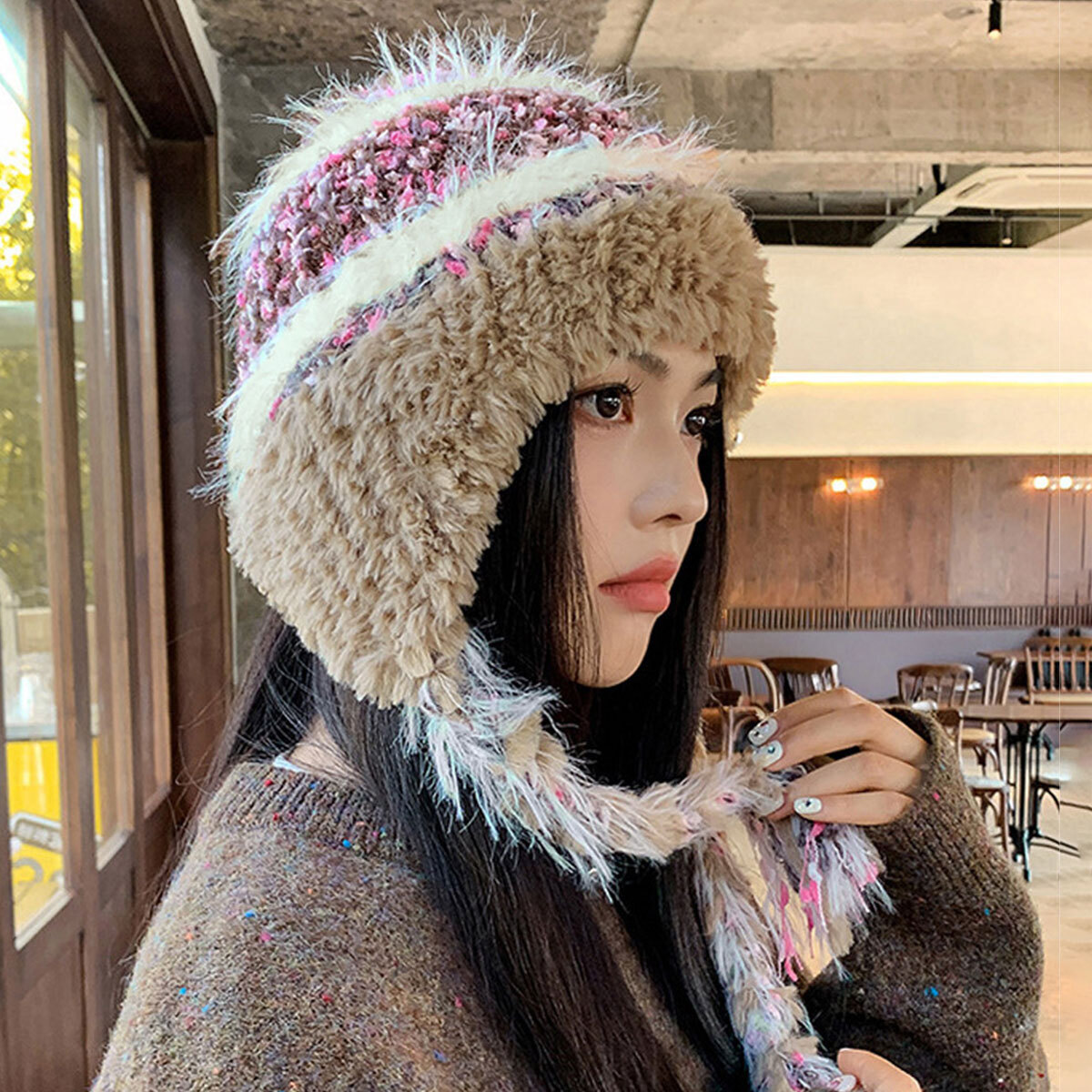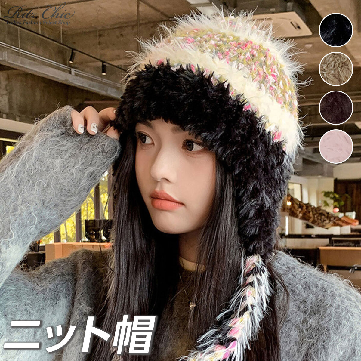 ふわふわのボア素材とニット素材を組み合わせたデザインで、配色のカラーリングがお洒落で可愛く、秋冬に嬉しい防寒性にも優れたニット帽です。