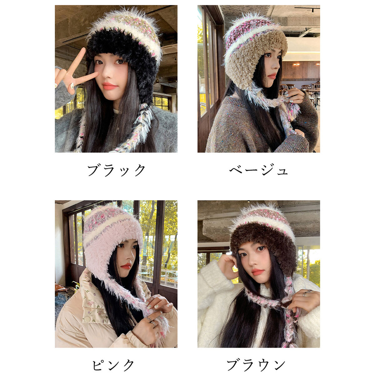 ニット帽 紐付き ボア素材 レディース 秋冬 防寒 保温 暖かい 韓国 帽子 大人 かわいい きれいめ おしゃれ カジュアル スキー スノボ 大人可愛い 大人女子