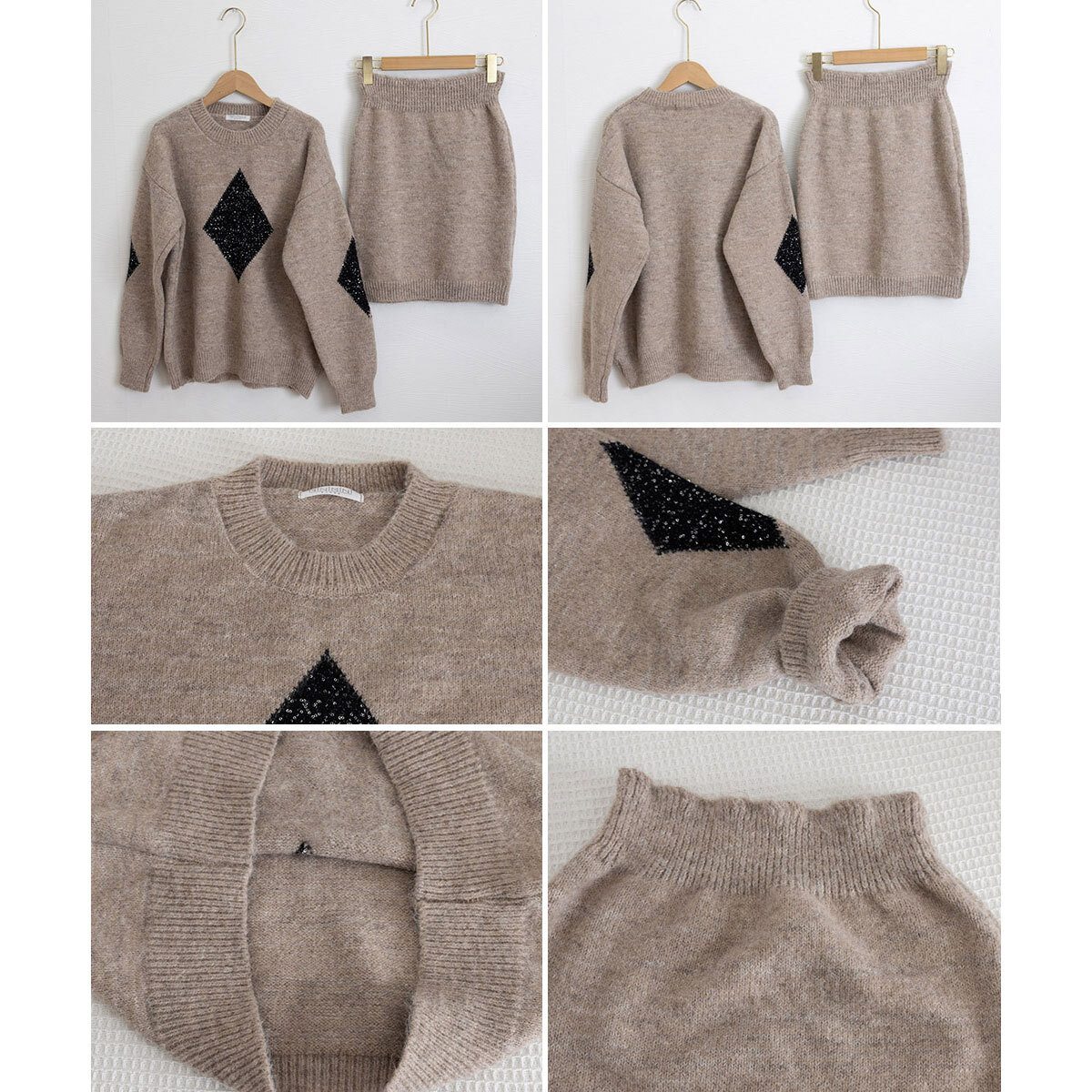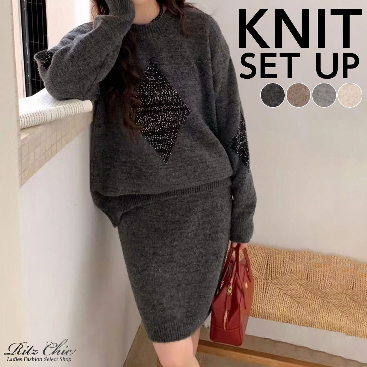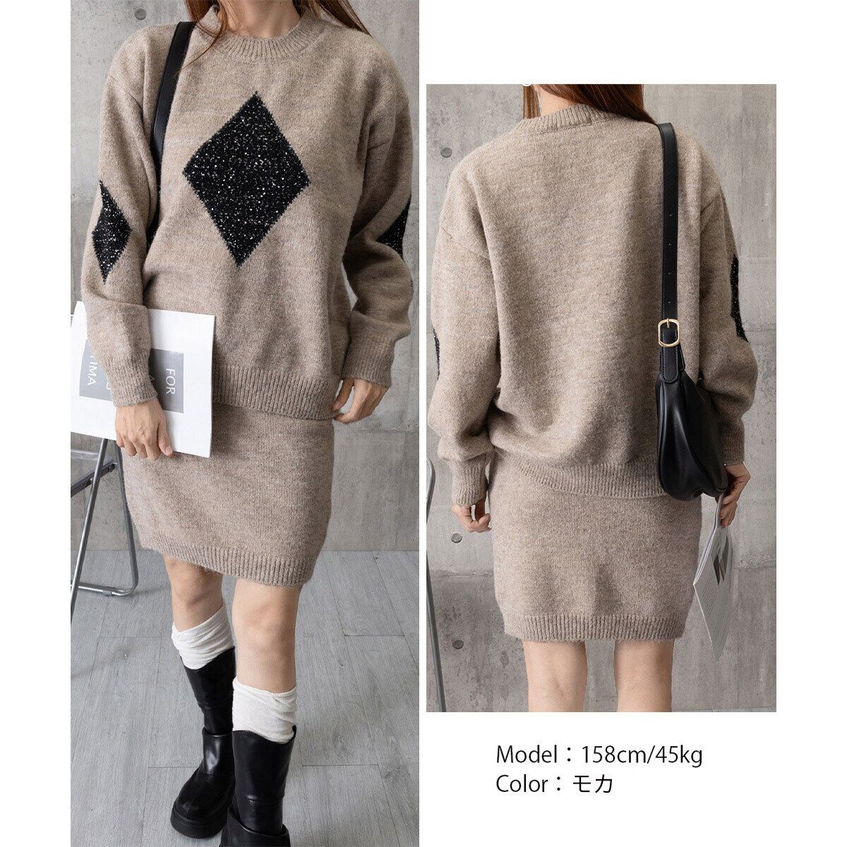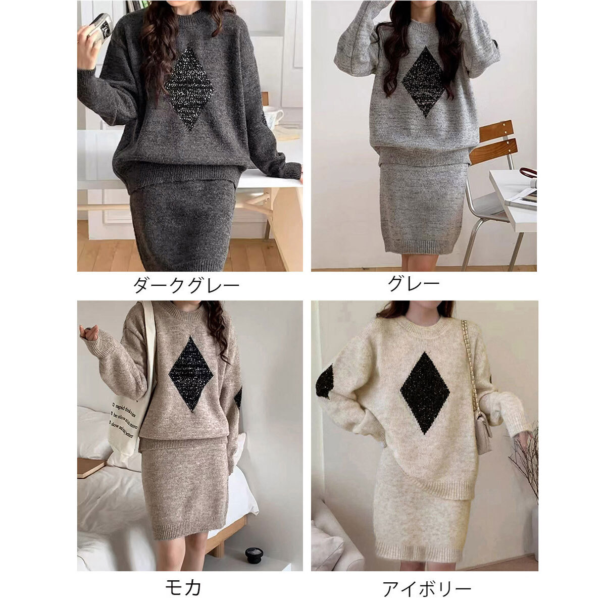ニット セットアップ トップス スカート 2点セット レディース 秋冬 韓国 長袖ニット ミニスカート きれいめ 大人 カジュアル おしゃれ スパンコール 高見え 上品 大人可愛い 大人女子
