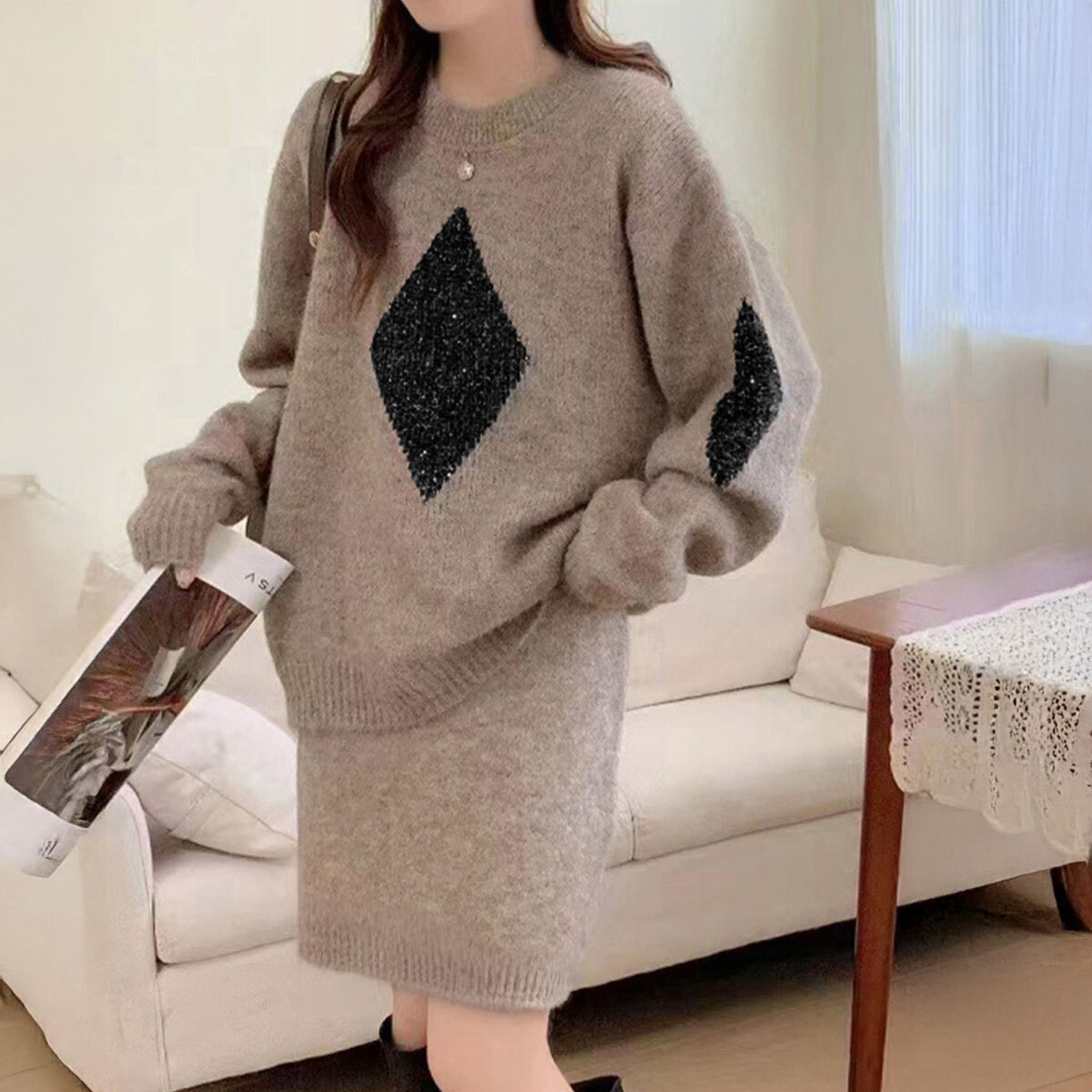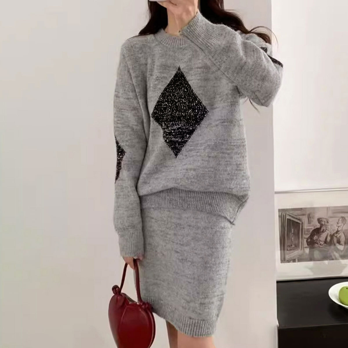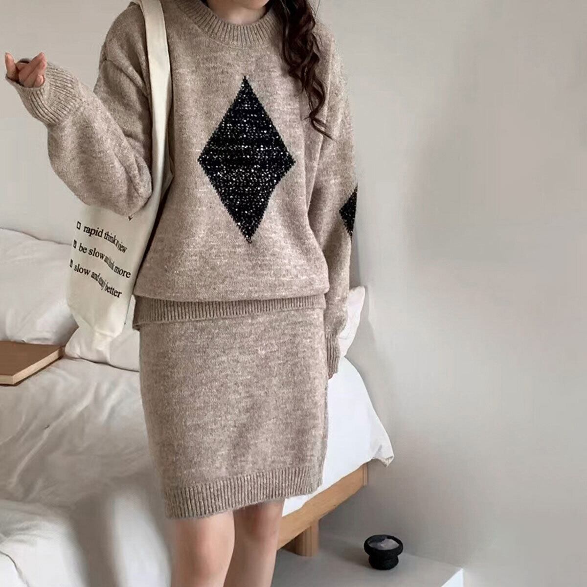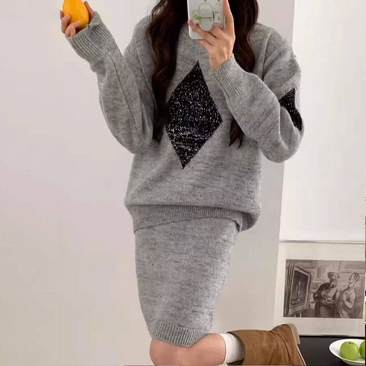 ニット セットアップ トップス スカート 2点セット レディース 秋冬 韓国 長袖ニット ミニスカート きれいめ 大人 カジュアル おしゃれ スパンコール 高見え 上品 大人可愛い 大人女子
