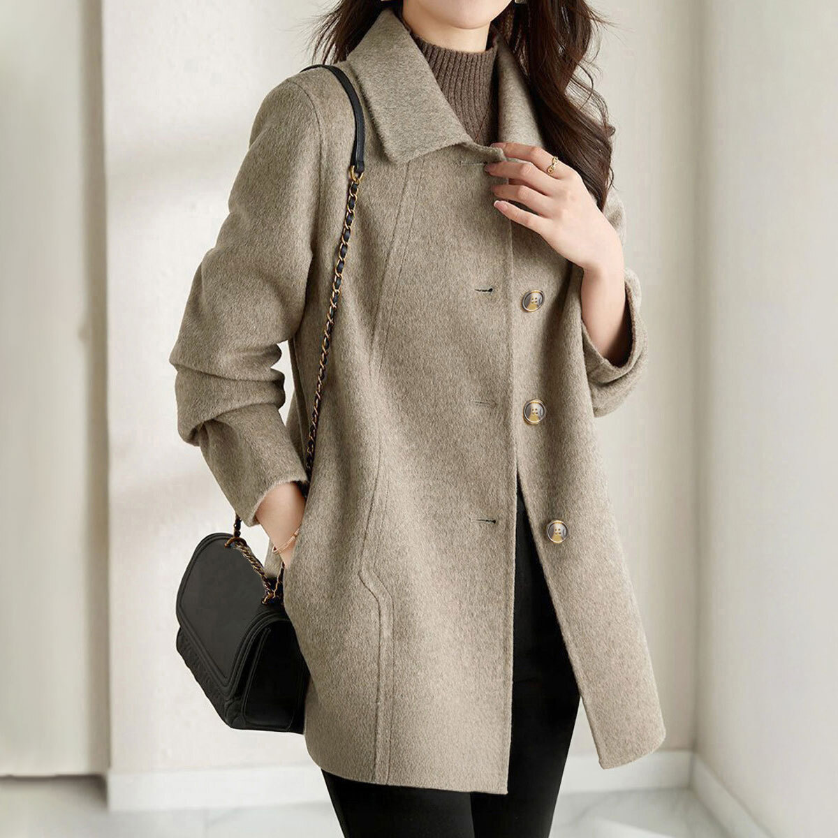 大きめのボタンが程よい存在感を添え、洗練されたクラシックな雰囲気を演出します。