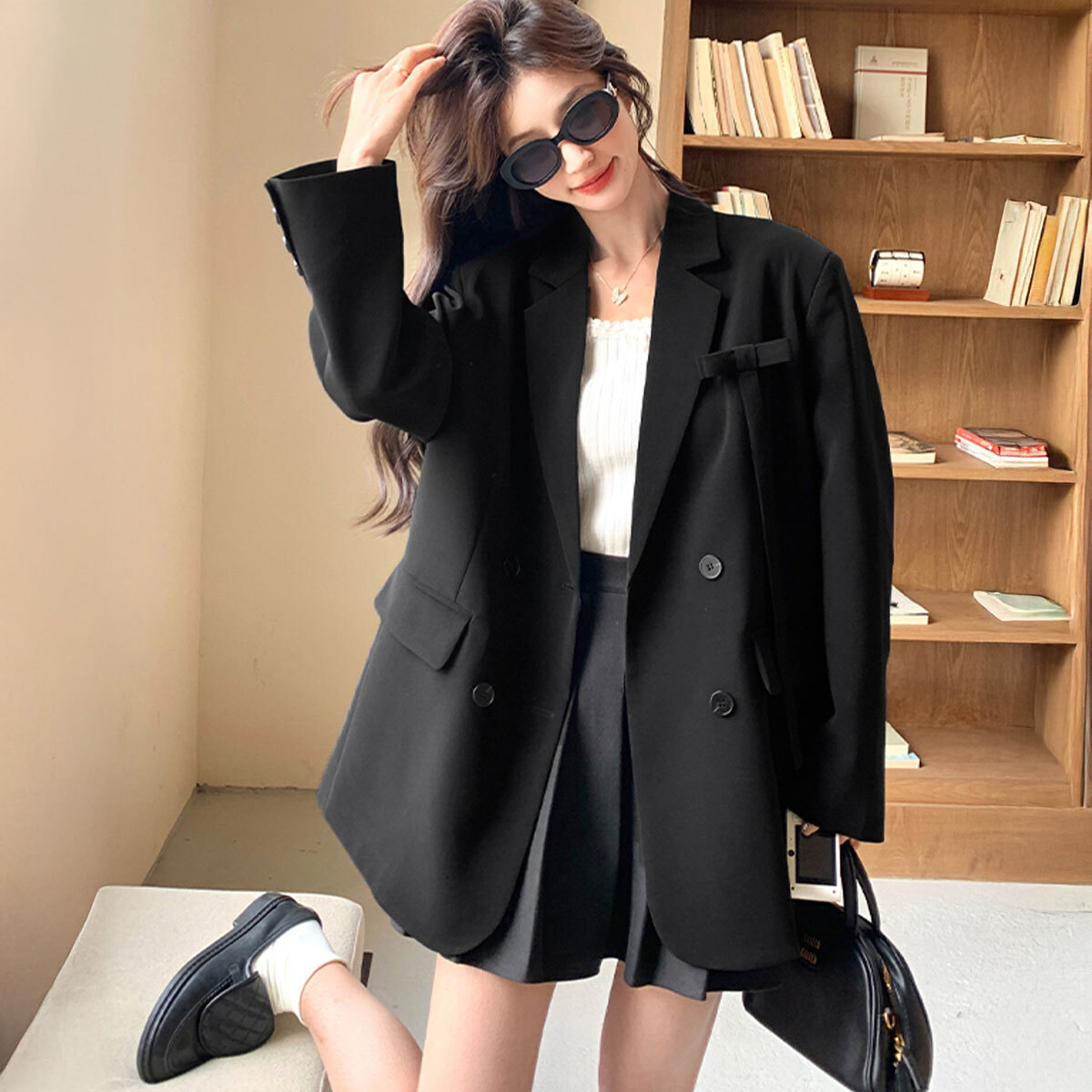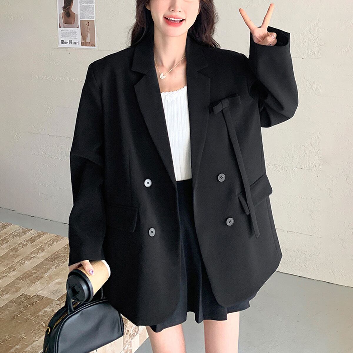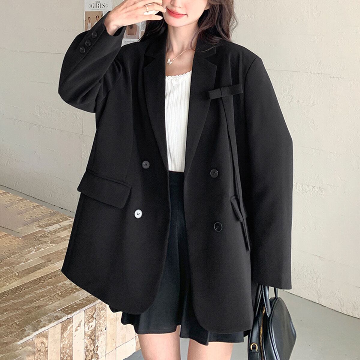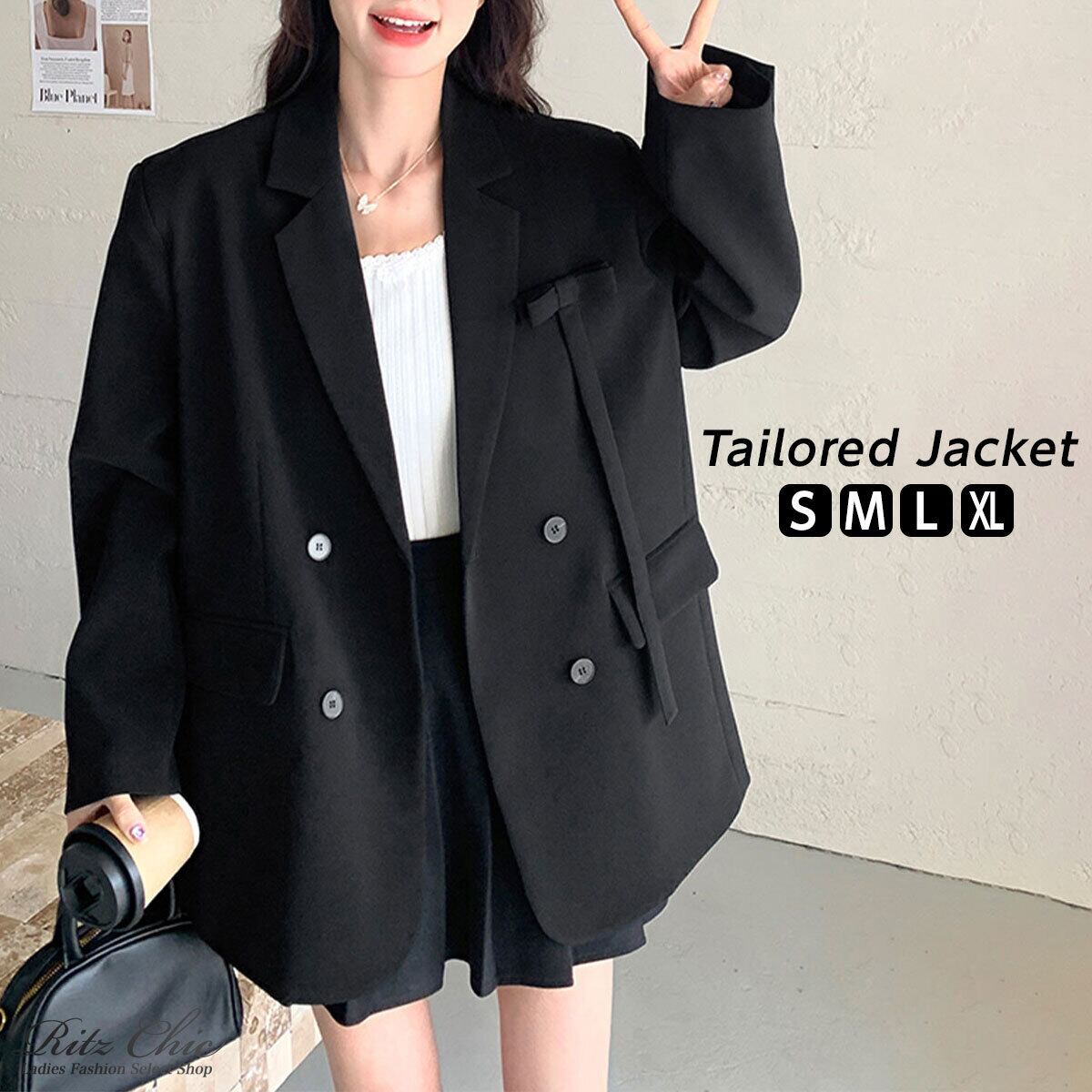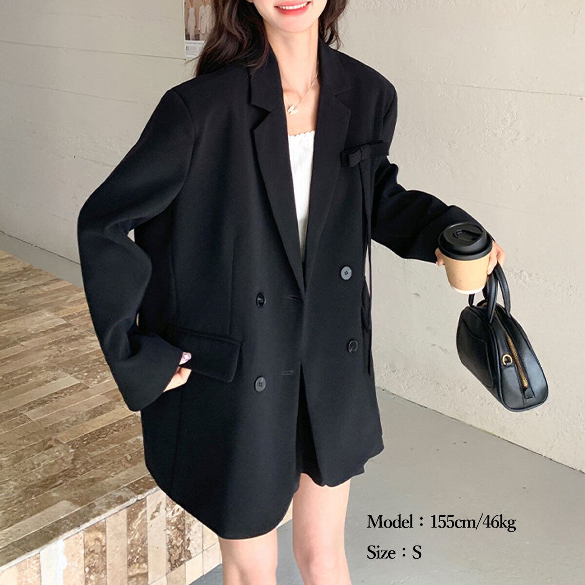 ダブルボタン テーラード ジャケット レディース 春秋冬 韓国 アウター 通勤 ビジネス オフィス きれいめ 大人 カジュアル シンプル 肩パッド入り ゆったり 体型カバー 大人可愛い 大人女子