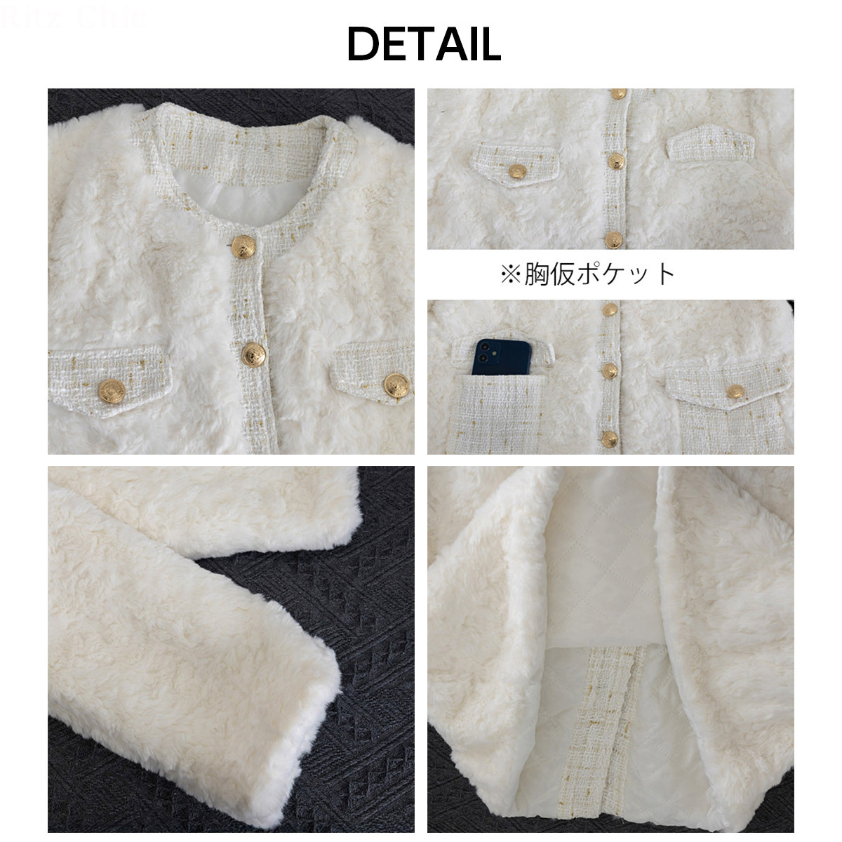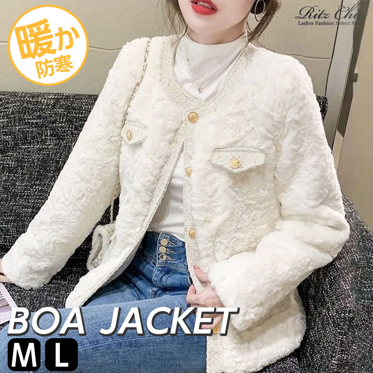 ボアジャケット 中綿 アウター レディース 秋冬 韓国 ファー ジャケット きれいめ 防寒 保温 大人 カジュアル おしゃれ ふわふわ ノーカラー 上品 軽量 暖かい 大人可愛い 大人女子