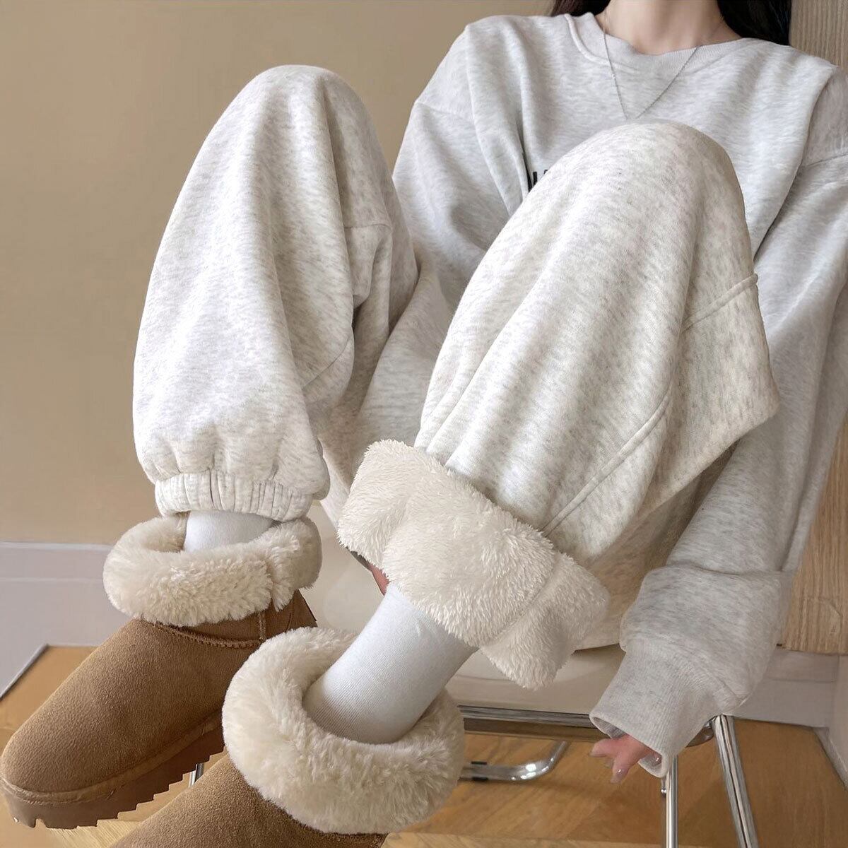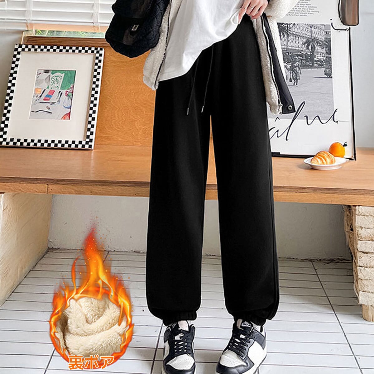 裏ボア スウェット パンツ レディース 秋冬 韓国 あったかパンツ 大人 カジュアル 防寒 保温 ストリート アメカジ ルームウェア ハイウエスト ウエストゴム 大人可愛い 大人女子
