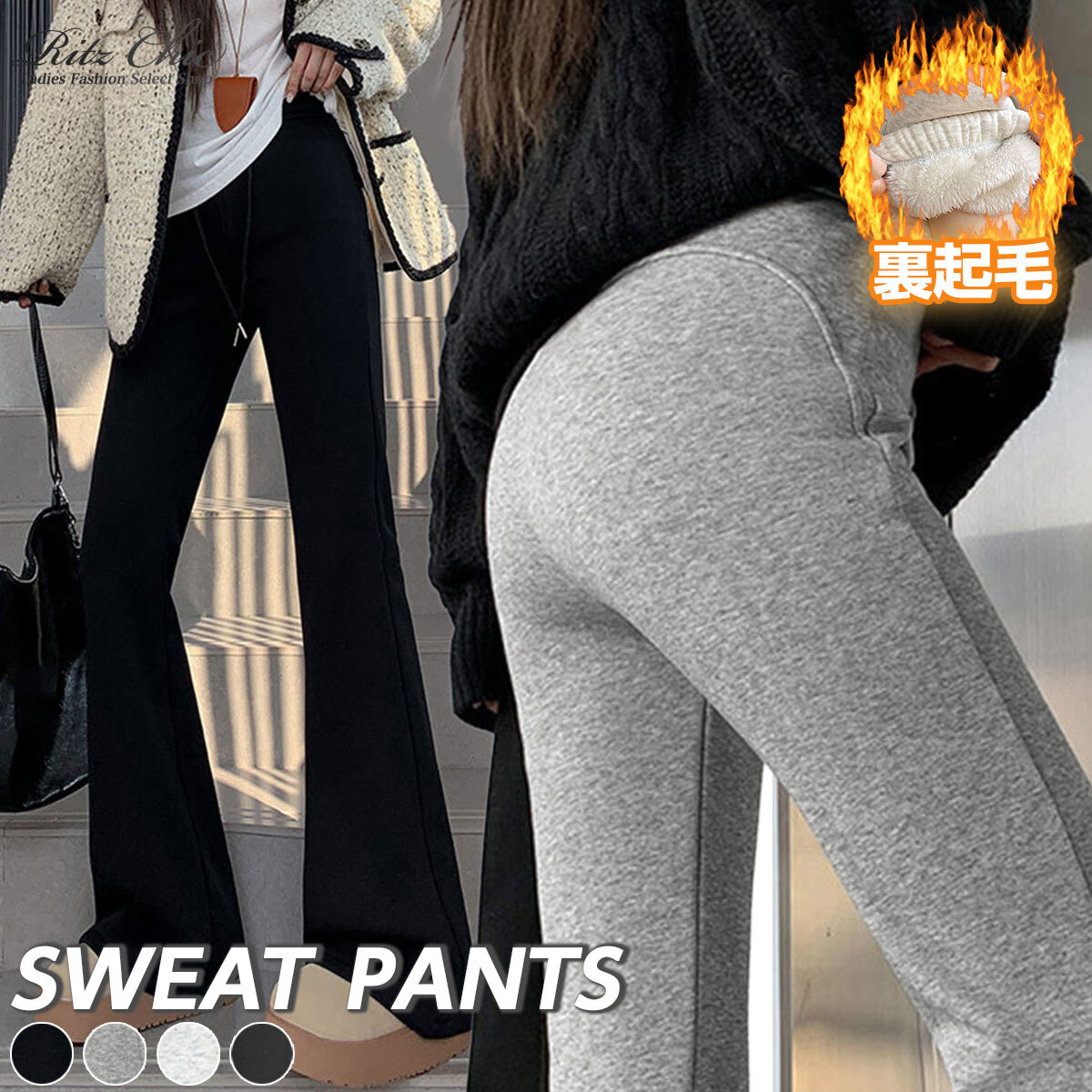 フレアパンツ スウェット 裏起毛 レディース 秋冬 韓国 きれいめ 大人 カジュアル スポーティー ダンス ストリート 美脚 ジャージ パンツ 暖かい 大人可愛い 大人女子