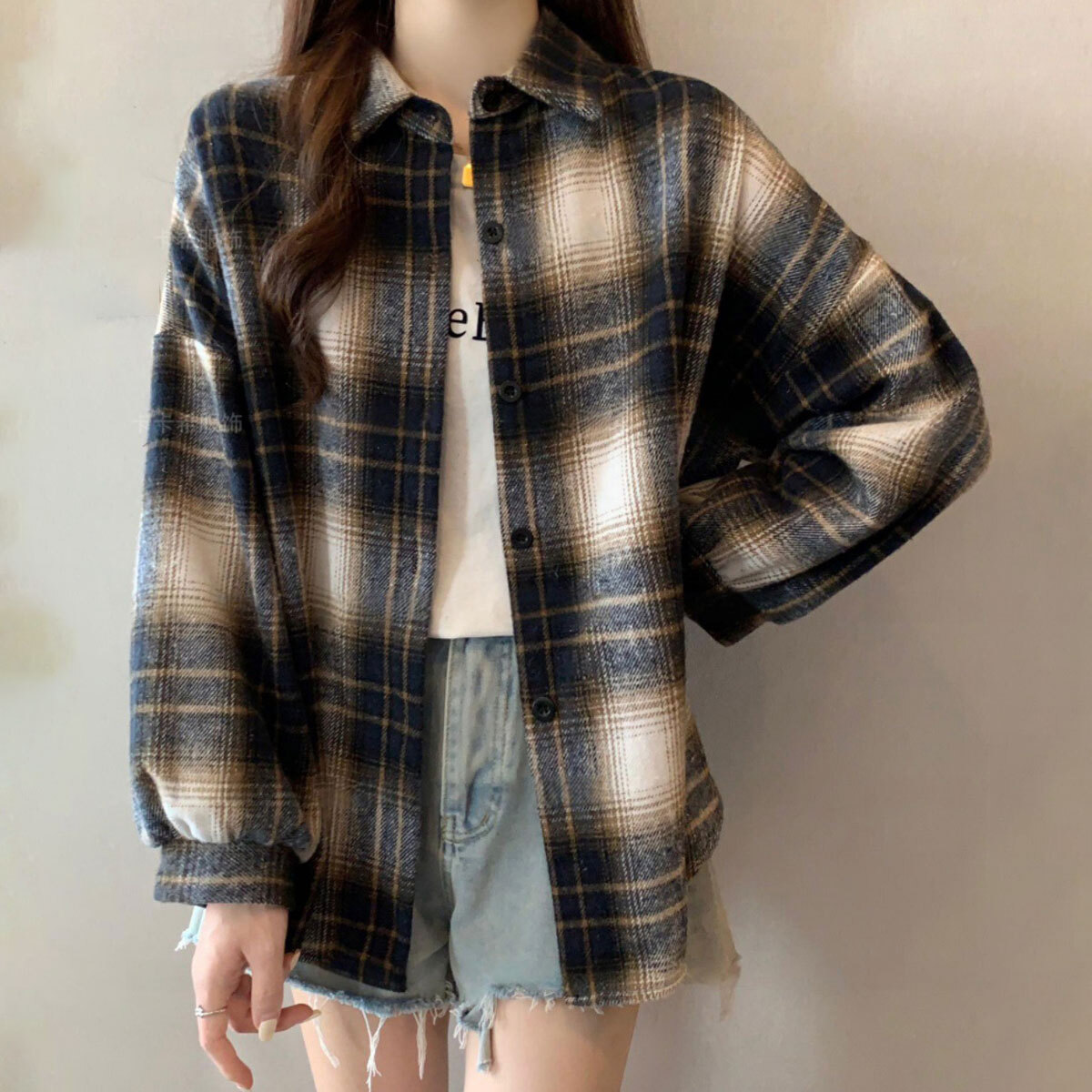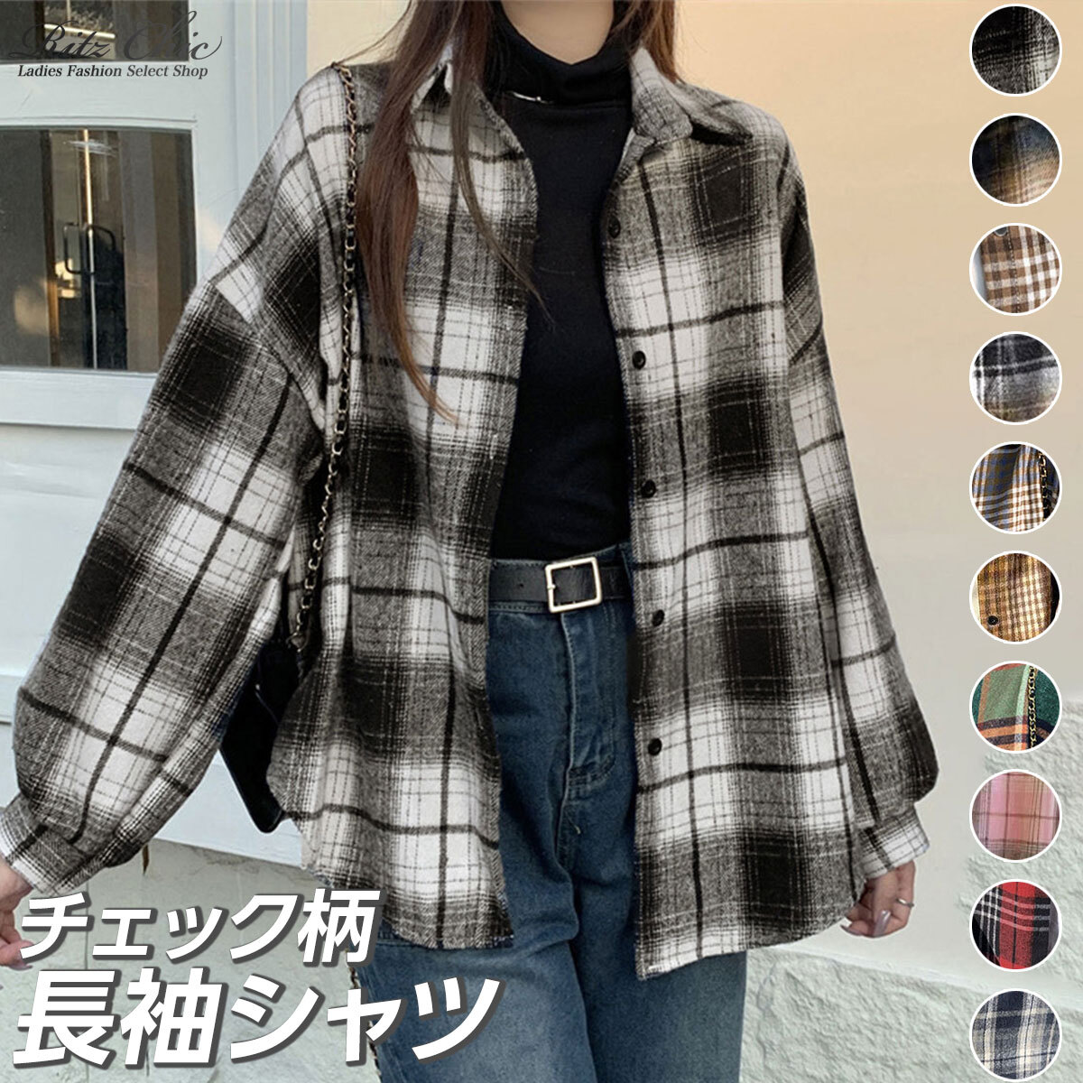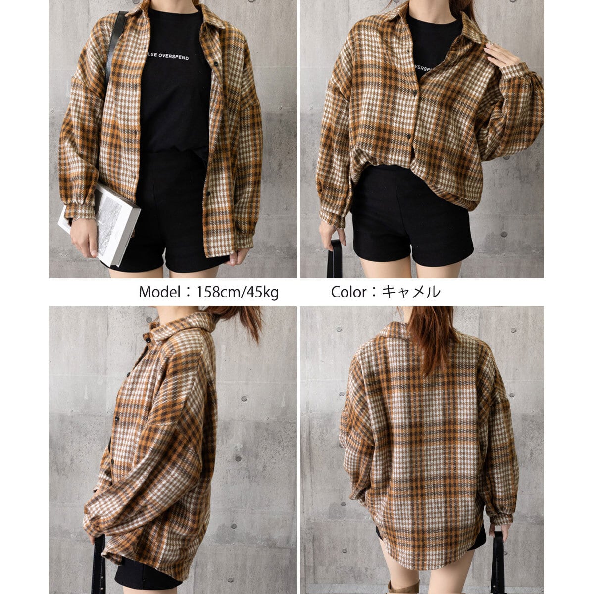 ネルシャツ チェック柄 長袖 起毛 レディース 春秋 韓国 レトロ 大人 カジュアル ゆったり ドロップショルダー 長袖シャツ ライトアウター トップス 大人可愛い 大人女子