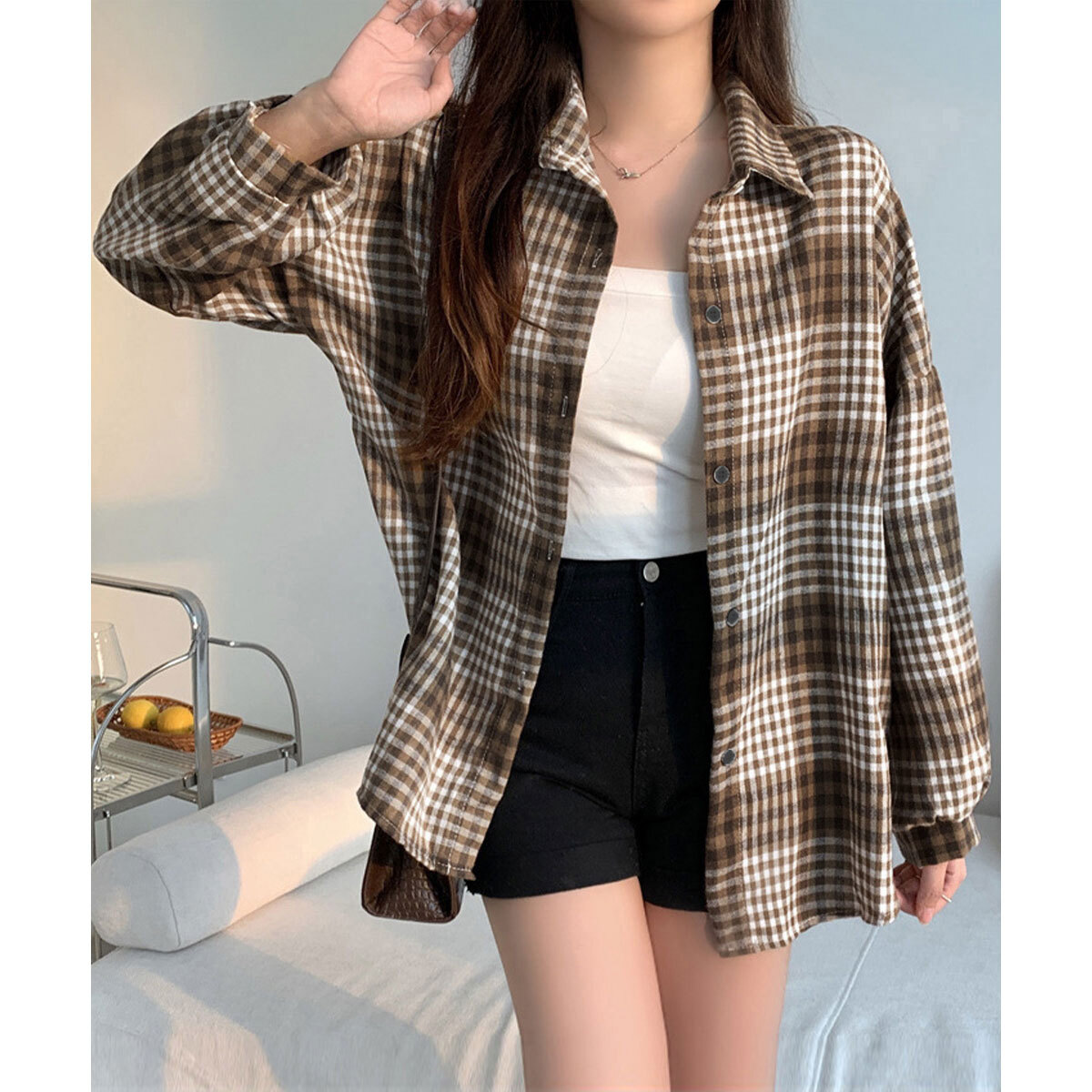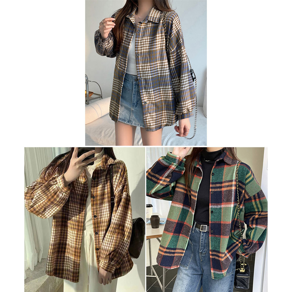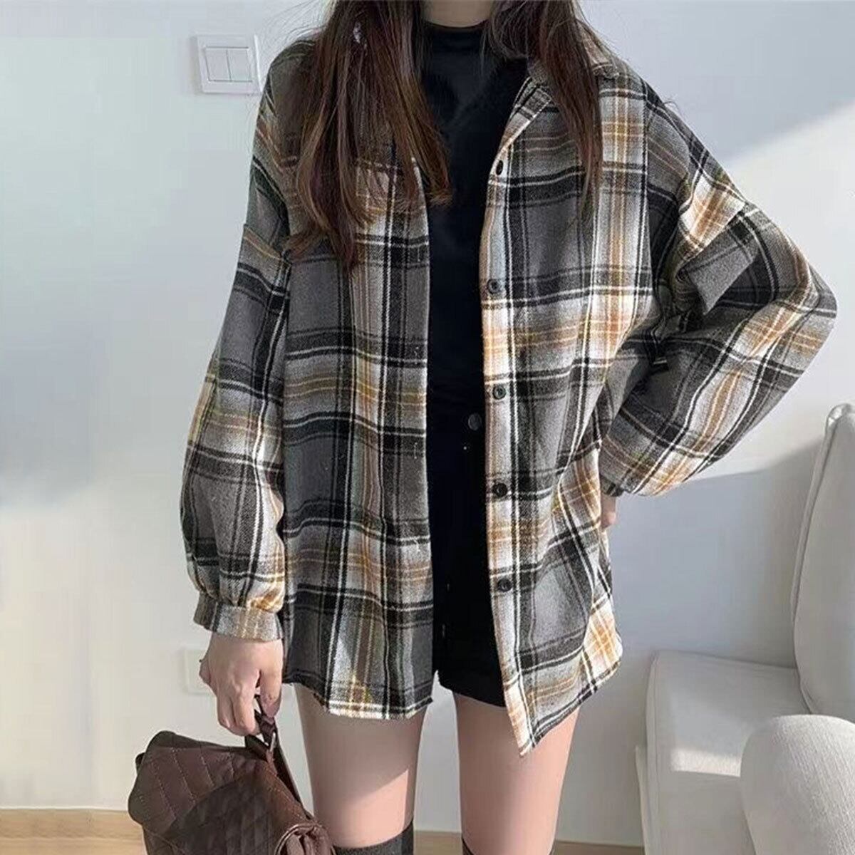 ネルシャツ チェック柄 長袖 起毛 レディース 春秋 韓国 レトロ 大人 カジュアル ゆったり ドロップショルダー 長袖シャツ ライトアウター トップス 大人可愛い 大人女子