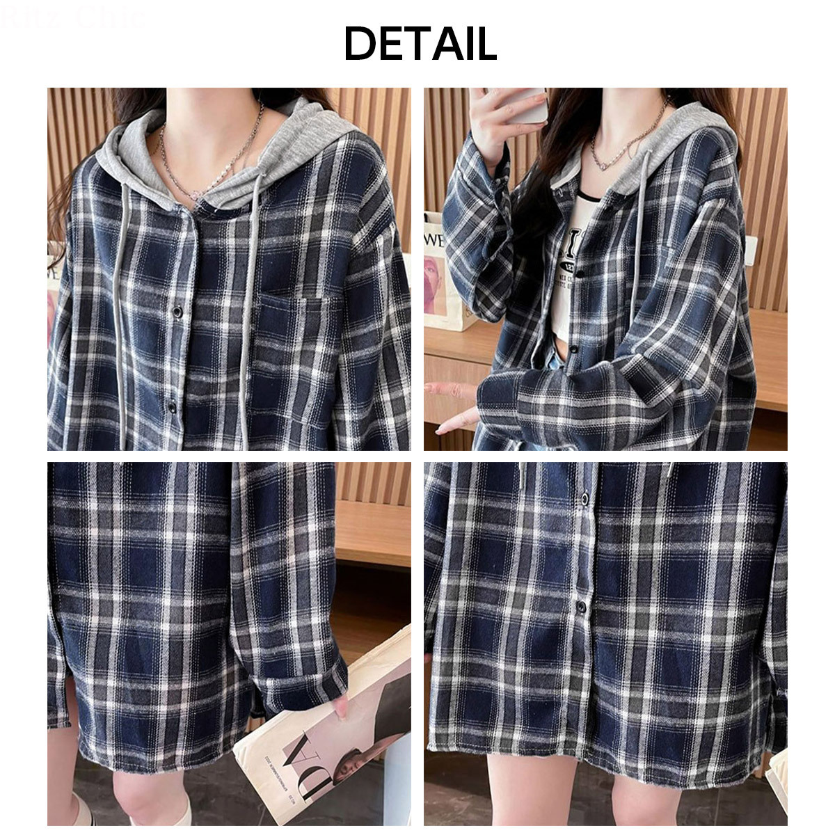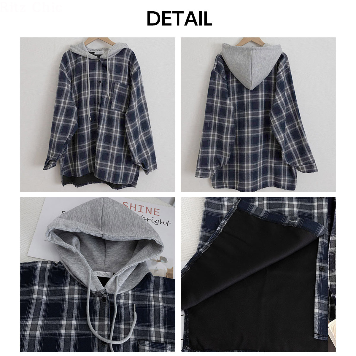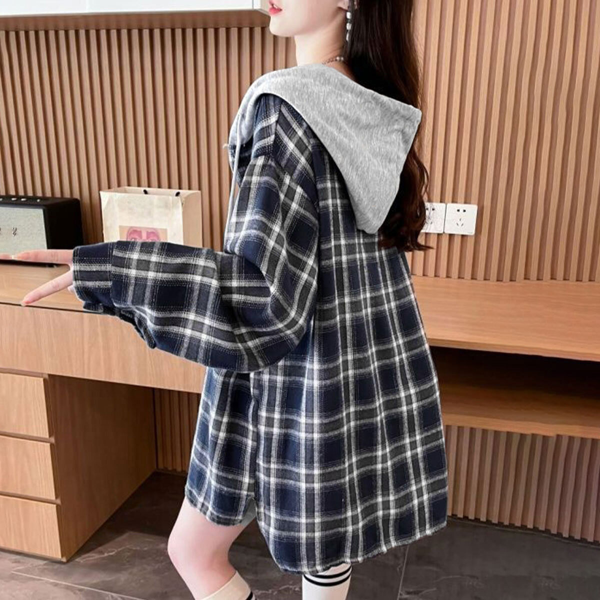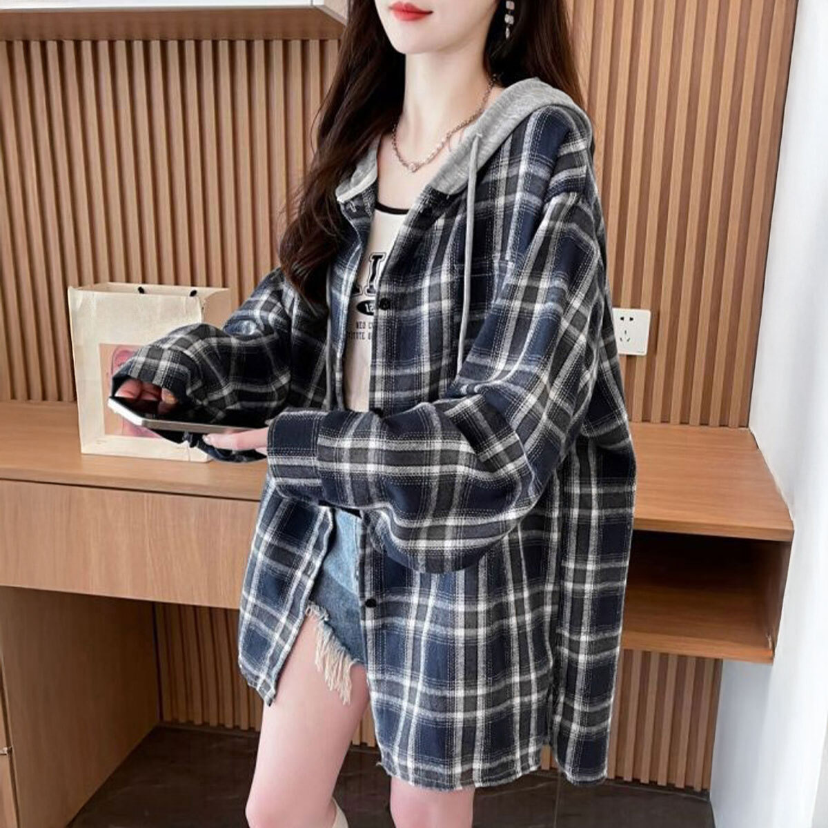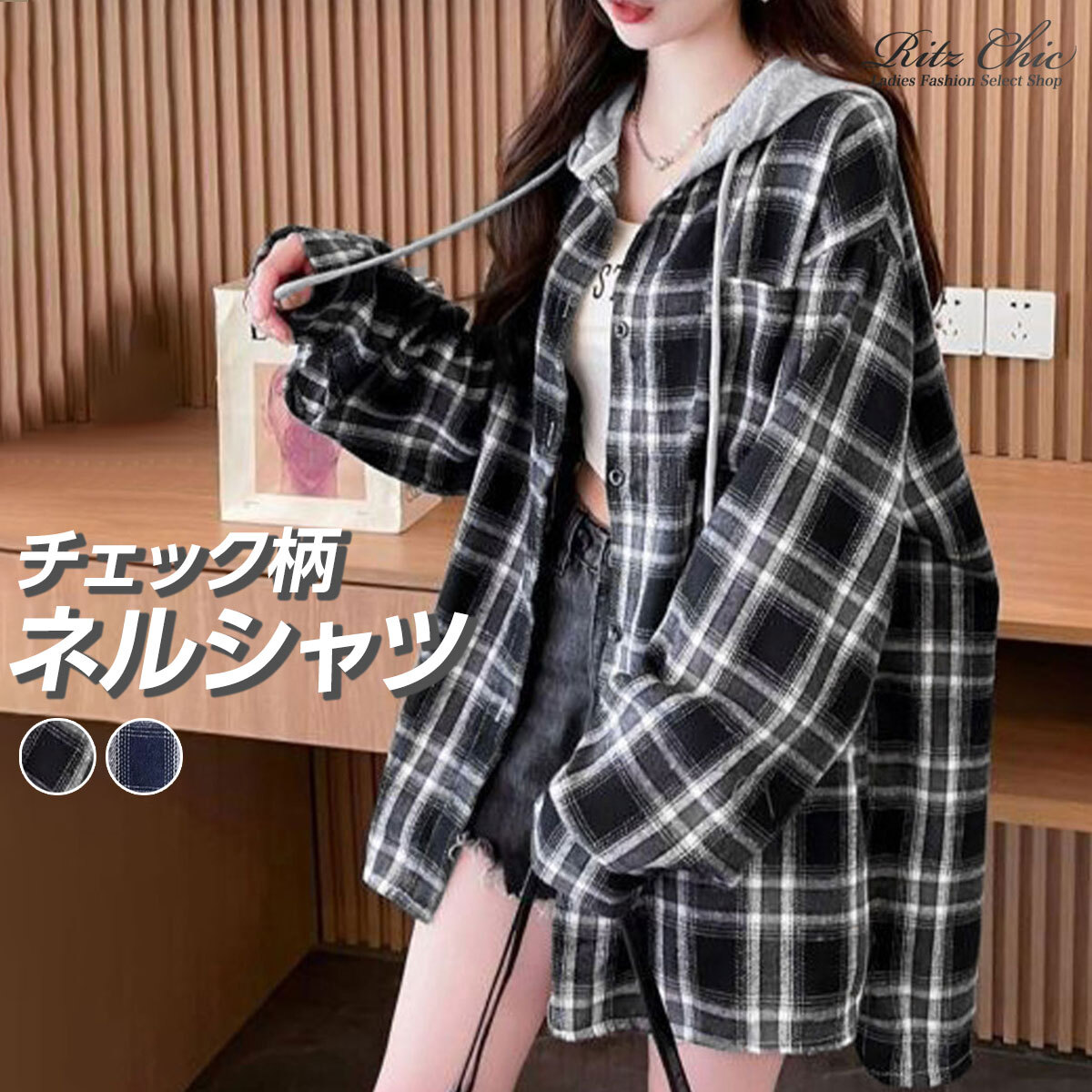 ネルシャツ フード付き 長袖 シャツ レディース 春秋冬 韓国 ライトアウター トップス おしゃれ 大人 カジュアル ストリート アメカジ レトロ 微起毛 ゆったり オーバーサイズ 大人可愛い 大人女子
