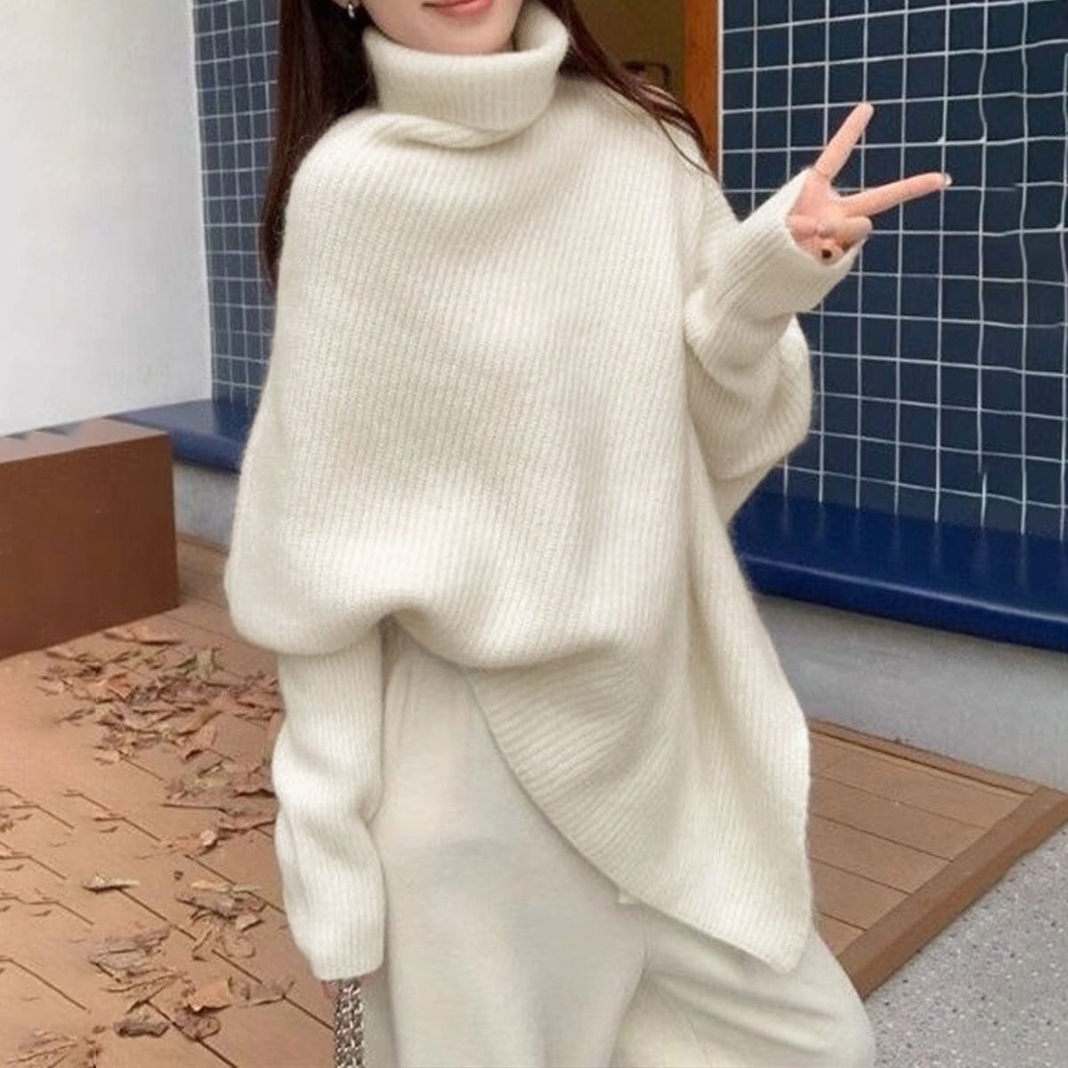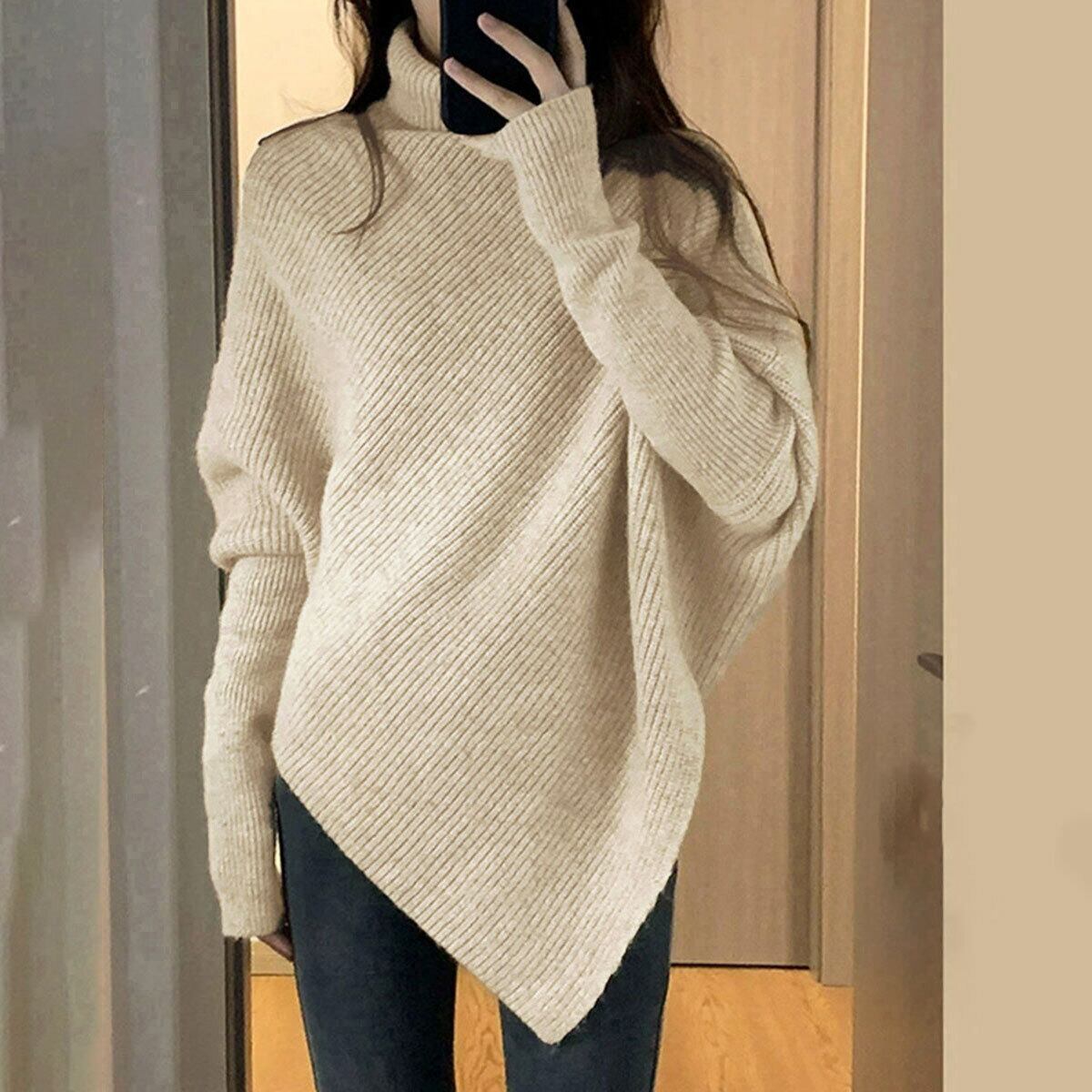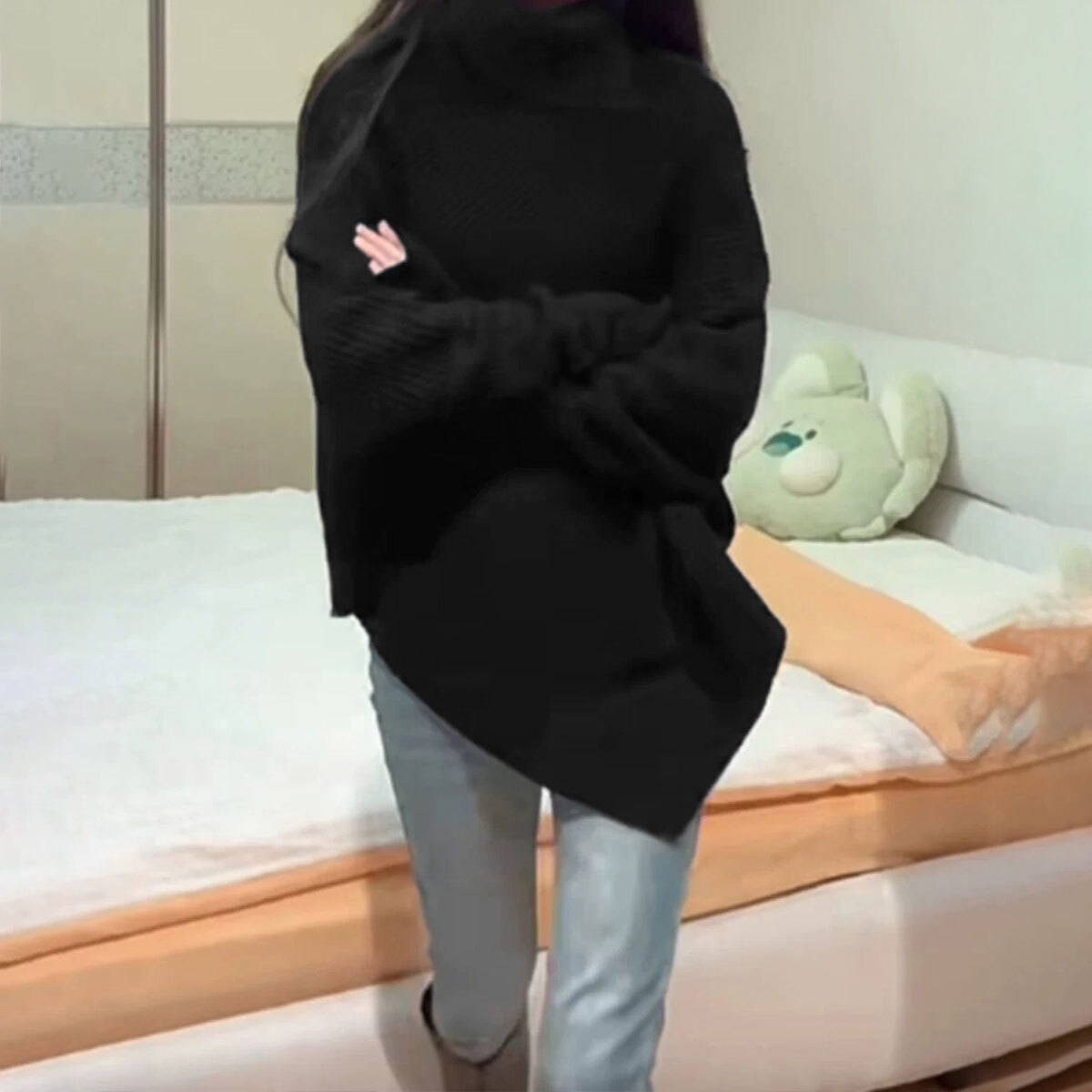 ハイネック ニット セーター レディース 秋冬 韓国 変形デザイン きれいめ 大人 カジュアル ドルマンスリーブ ゆったり 体型カバー 暖かい 厚手 大人可愛い 大人女子