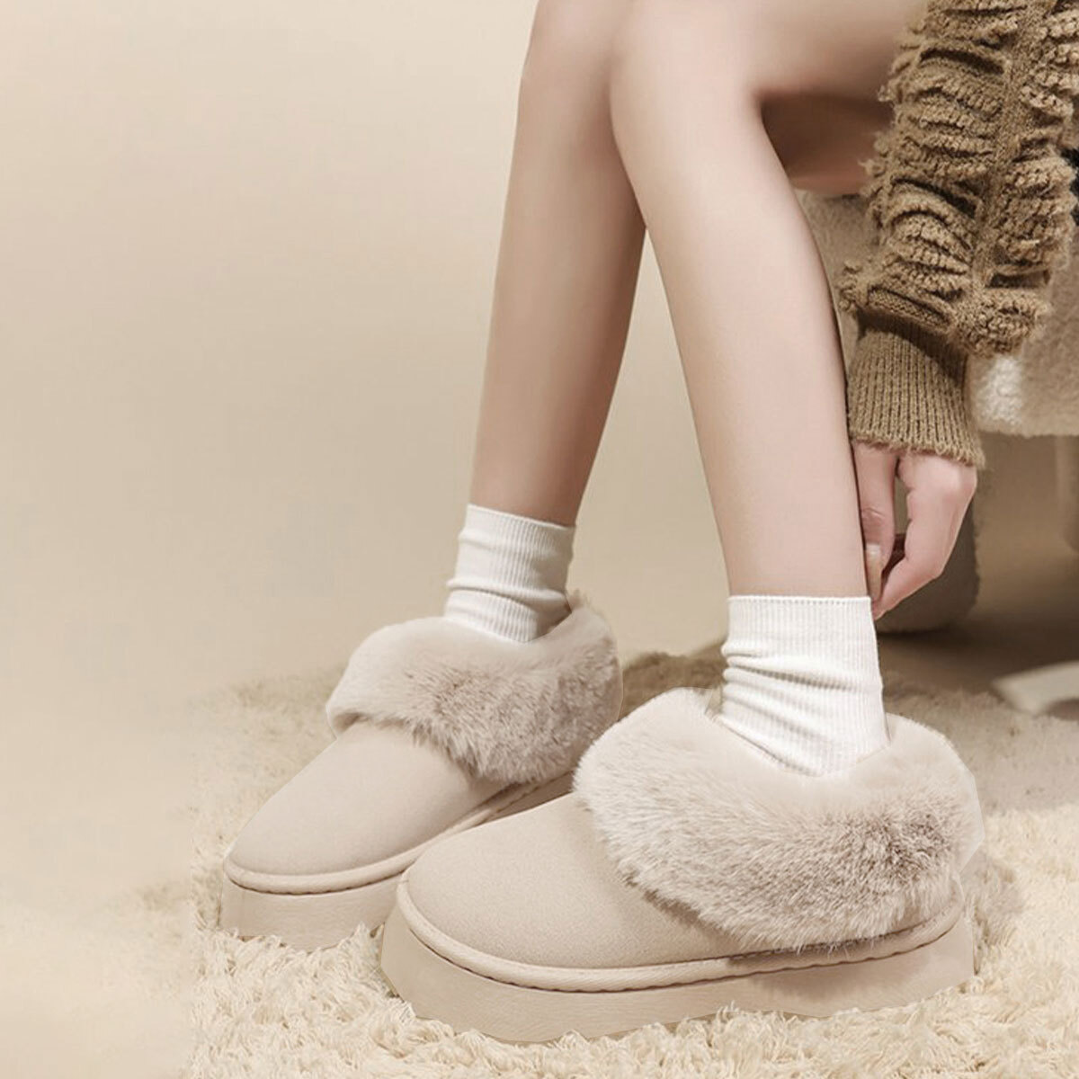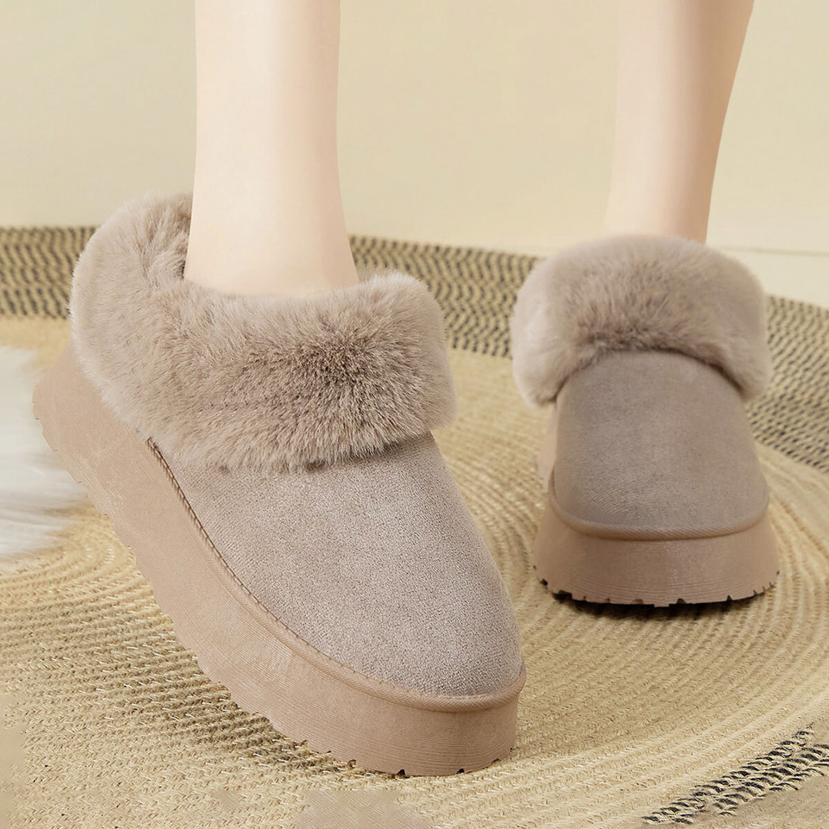 ふわふわのフェイクファーで履き心地もよく、秋冬のコーディネートに取り入れることで、暖かみのあるスタイルをお楽しみいただけます。