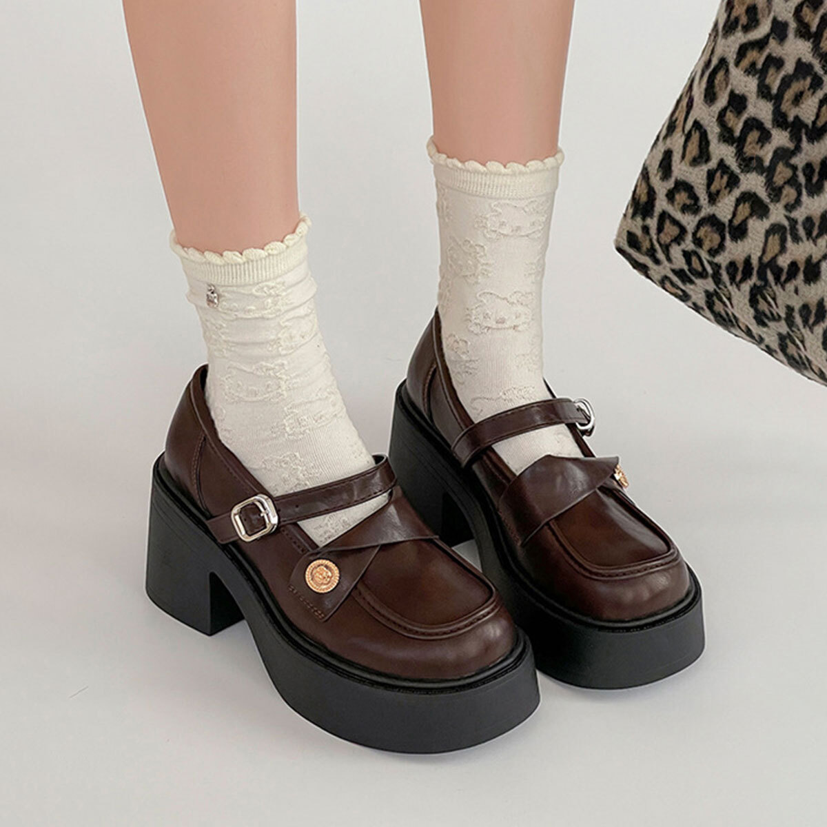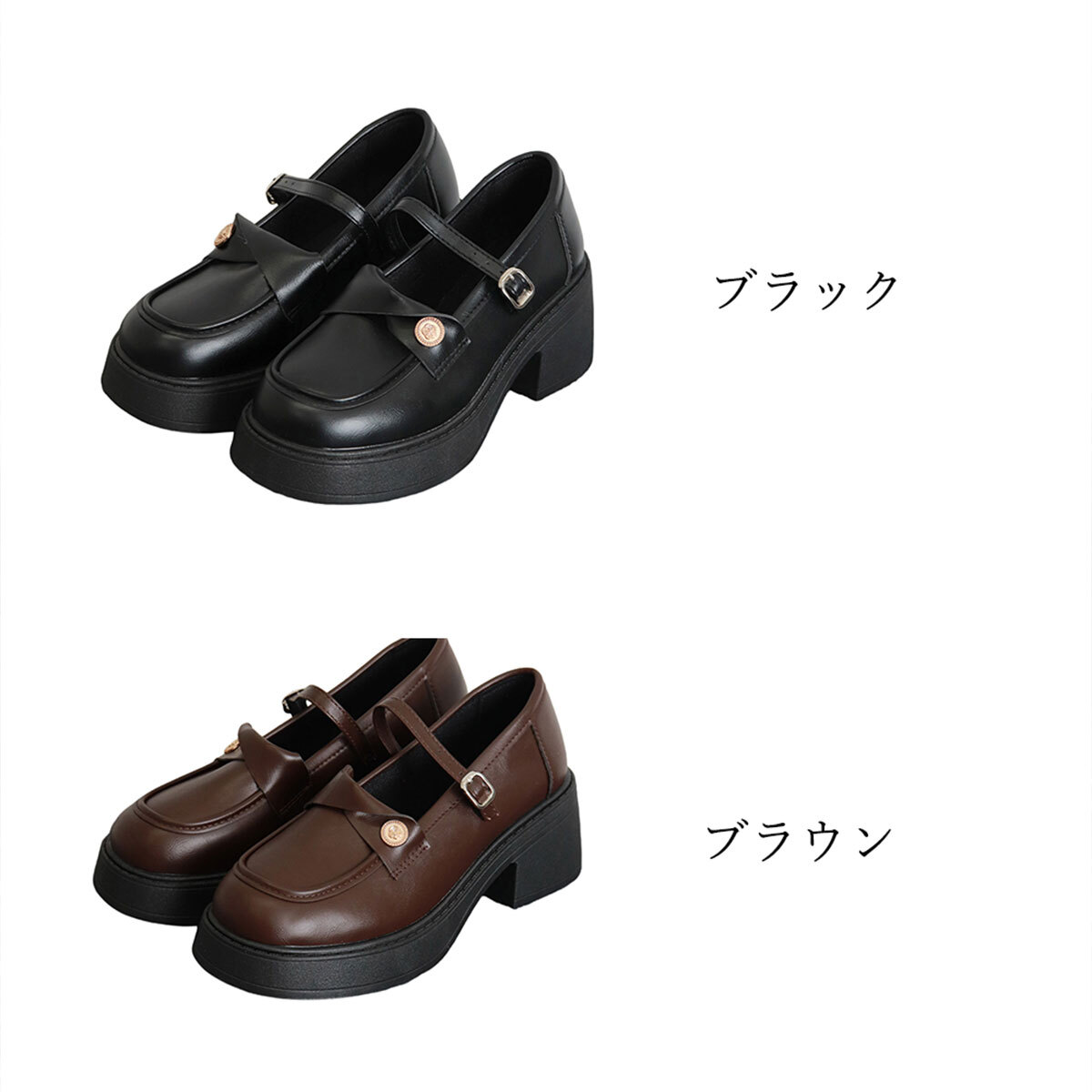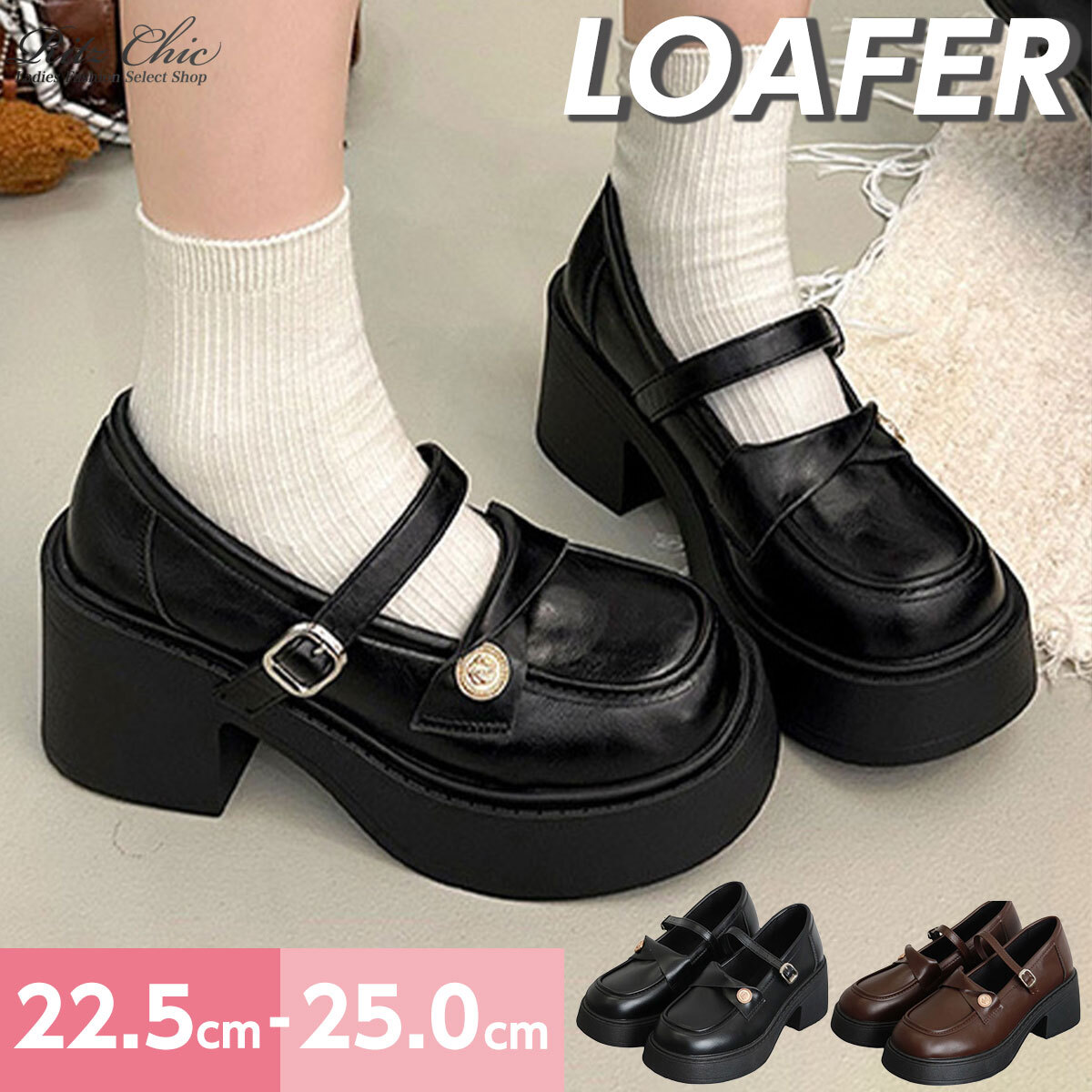 学院風 厚底 ローファー レディース 韓国 通勤 通学 学生 大人 きれいめ PUレザー シンプル ガーリー シューズ コスプレ メイド チャンキーヒール 大人可愛い 大人女子