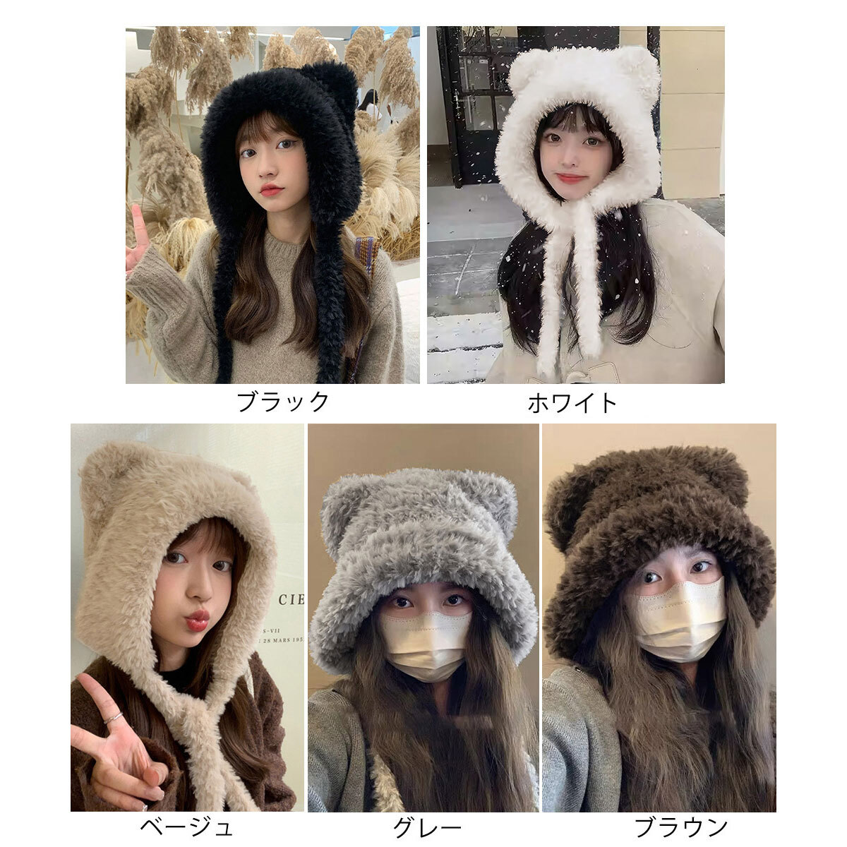 軽量設計であるため、長時間の着用でも快適な被り心地を保ち、もこもこの毛並みが顔まわりに柔らかいニュアンスを添えてくれます。