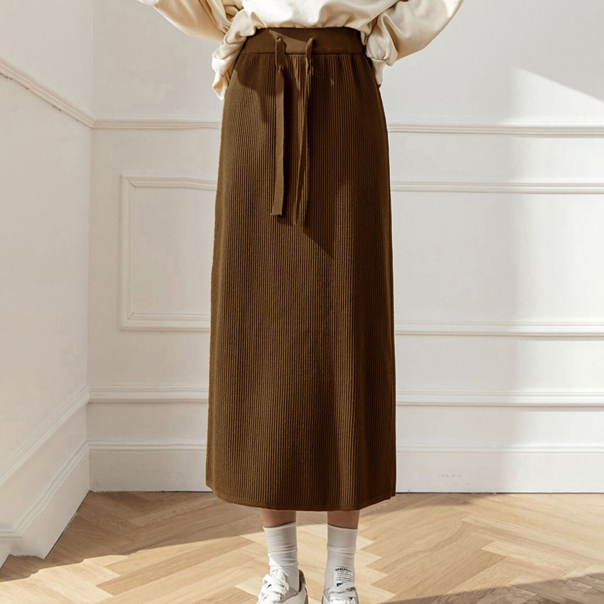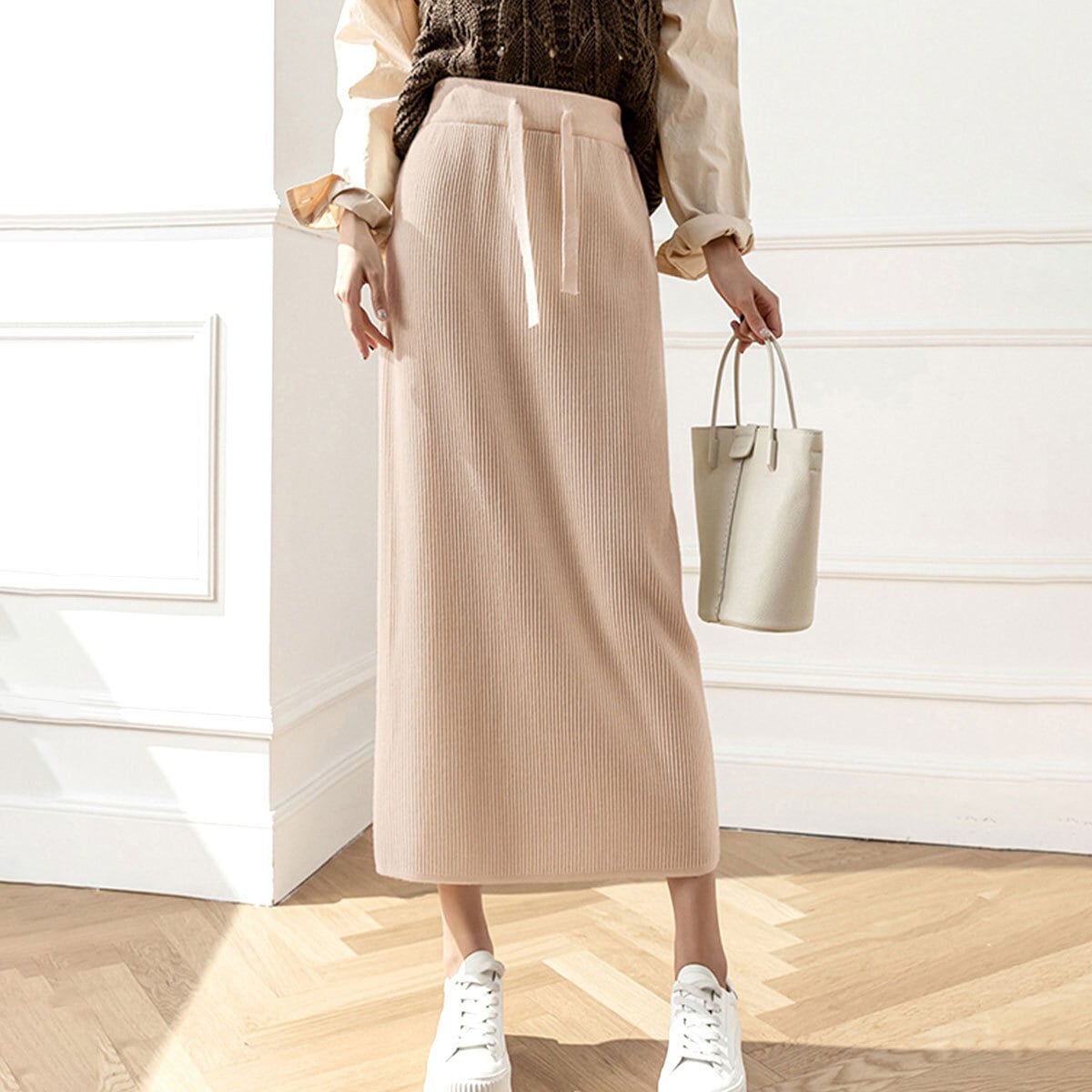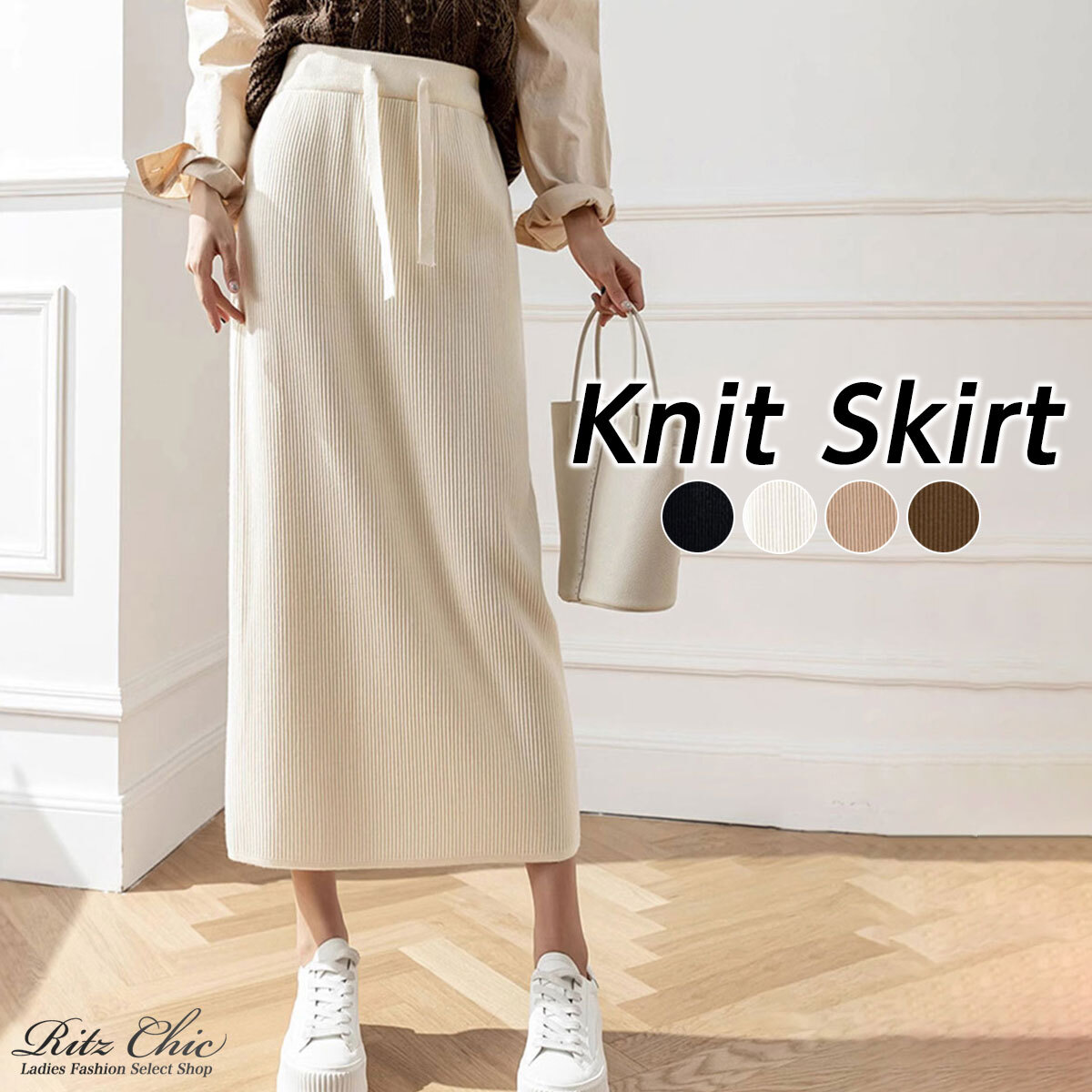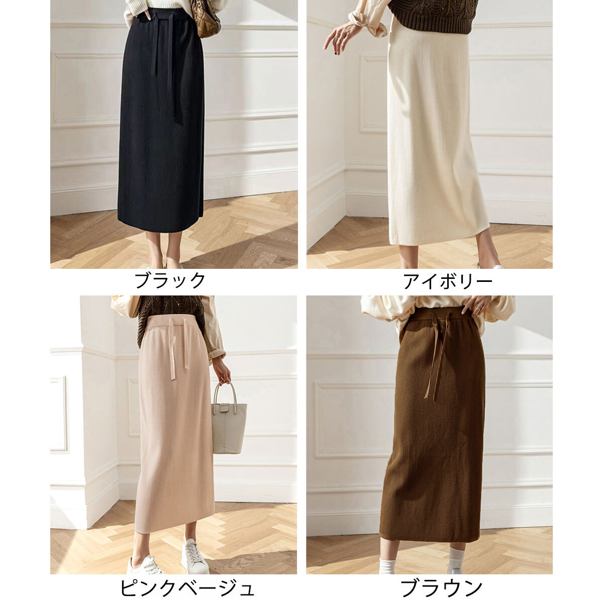 ニット スカート ミモレ丈 レディース 春秋冬 韓国 ロングスカート きれいめ 大人 カジュアル シンプル ウエストゴム リブニット タイト ストレッチ 通勤 通学 大人可愛い 大人女子