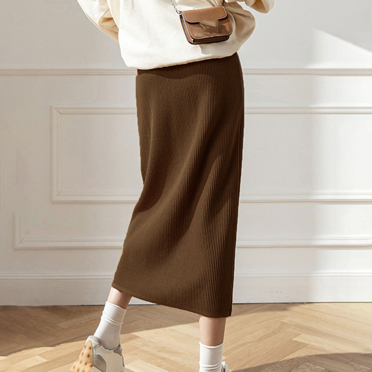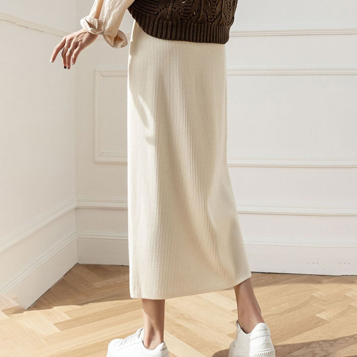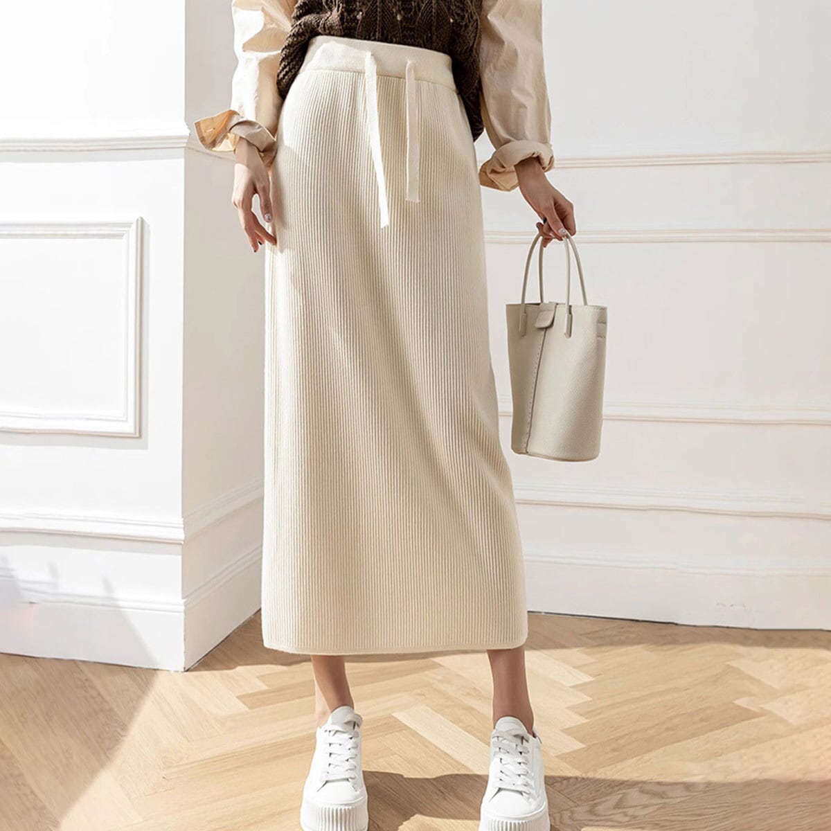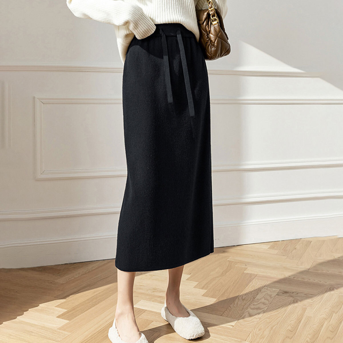 ニット スカート ミモレ丈 レディース 春秋冬 韓国 ロングスカート きれいめ 大人 カジュアル シンプル ウエストゴム リブニット タイト ストレッチ 通勤 通学 大人可愛い 大人女子