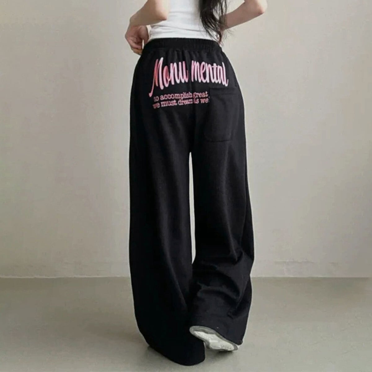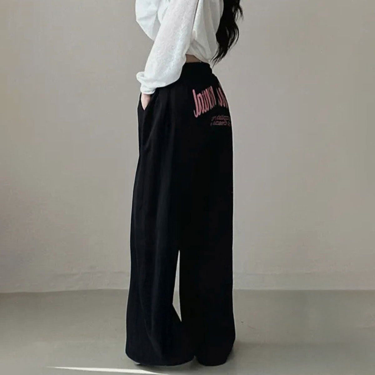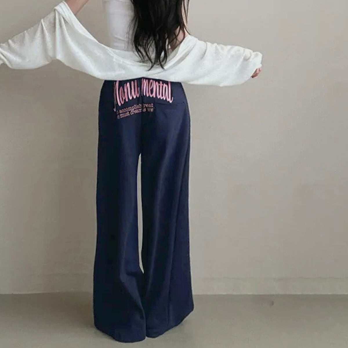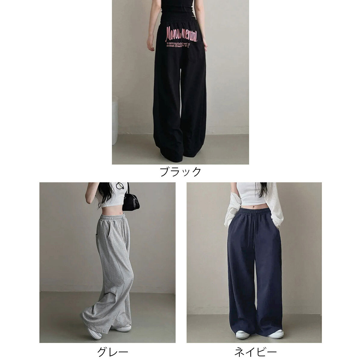 スウェット パンツ バックプリント レディース 秋冬 韓国 ストリート 大人 カジュアル スポーツ ダンス ゆったり リラックス ワイドパンツ 大人可愛い 大人女子