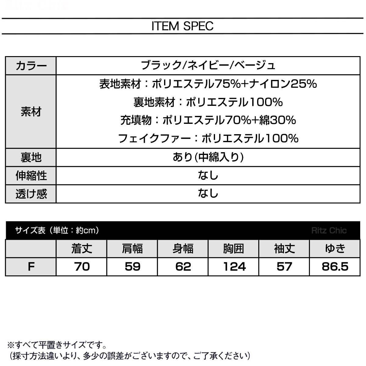 フェイクファー:ポリエステル100%
