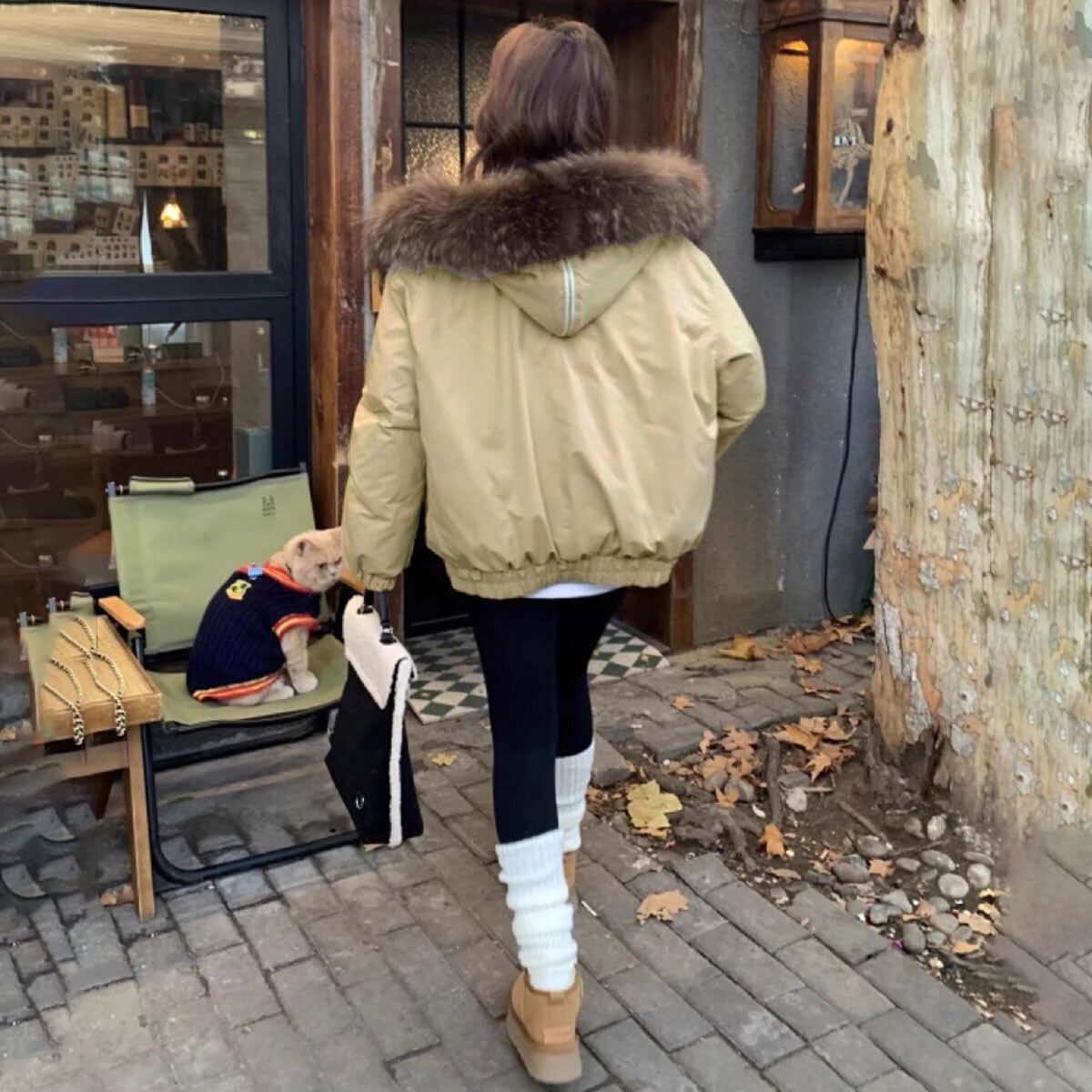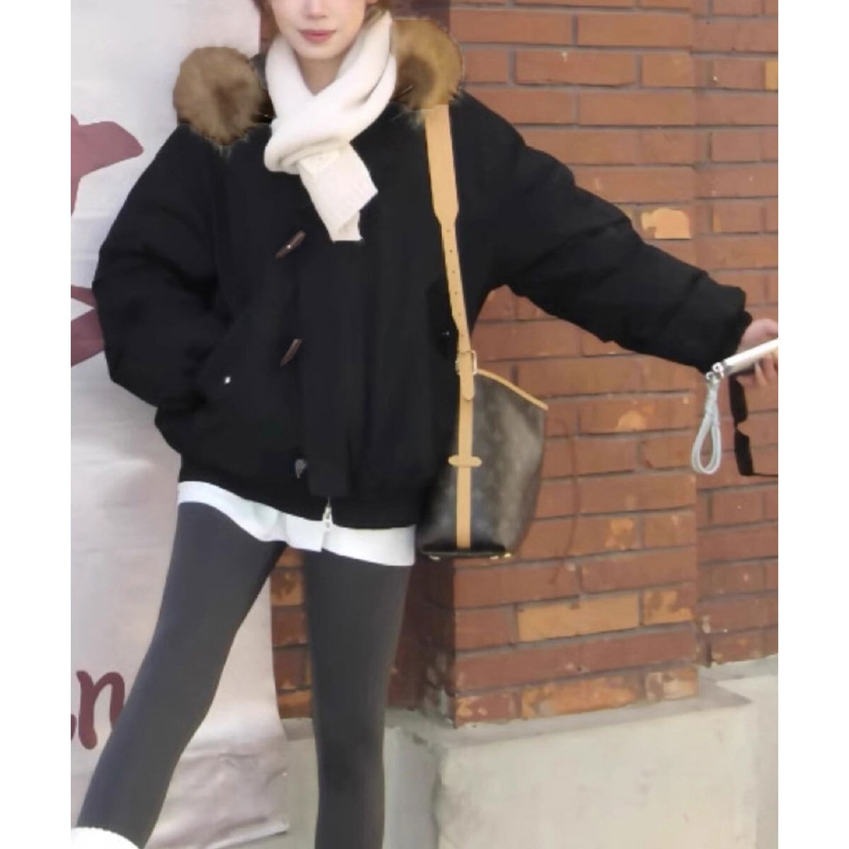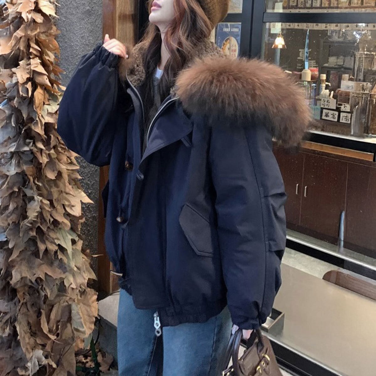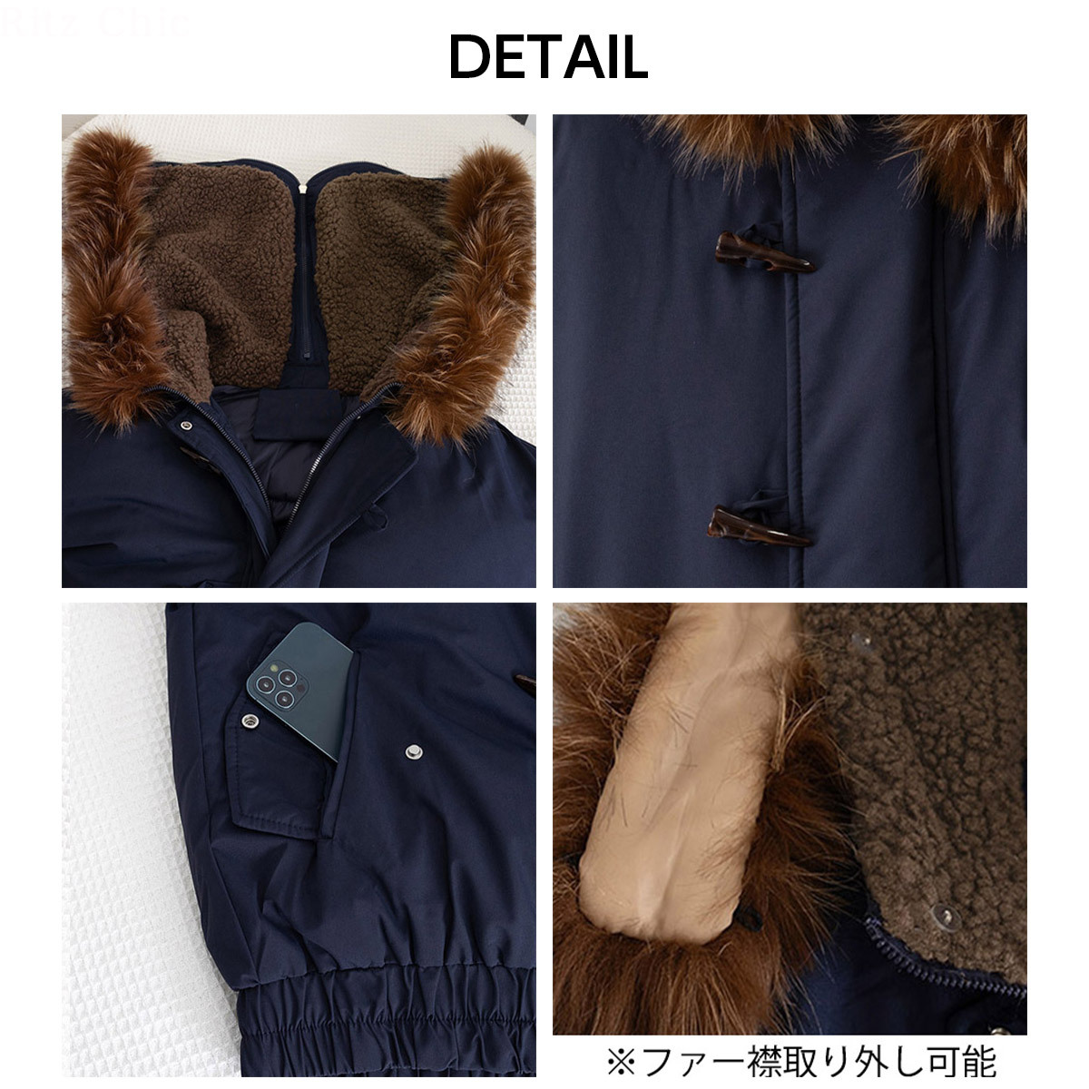 首周りを包み込むボリュームファーが顔まわりを華やかに演出し、寒風もしっかりガードしてくれます。