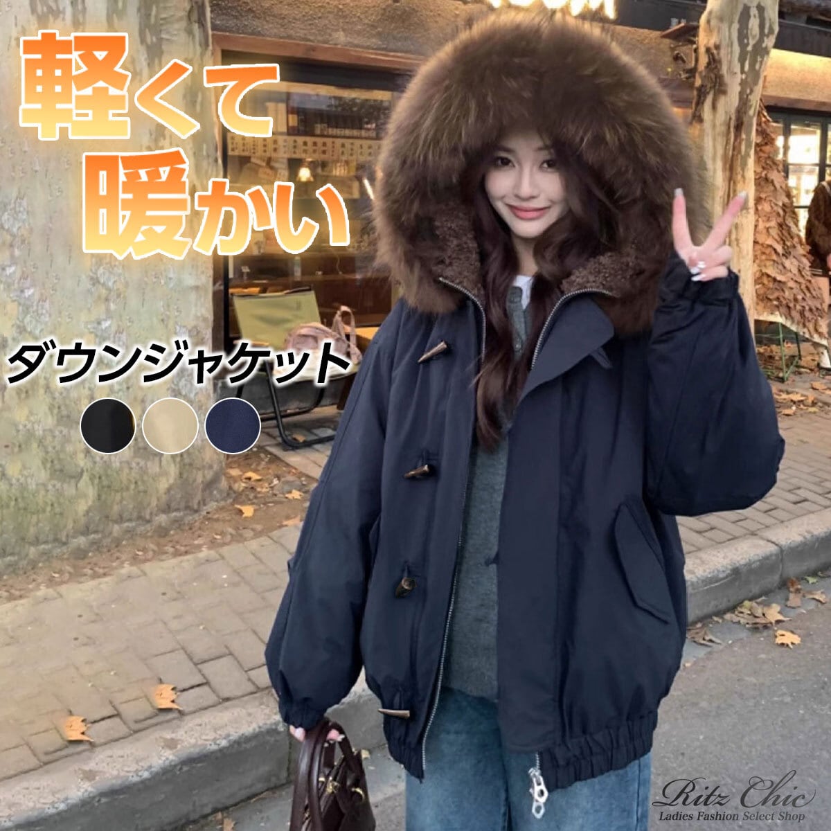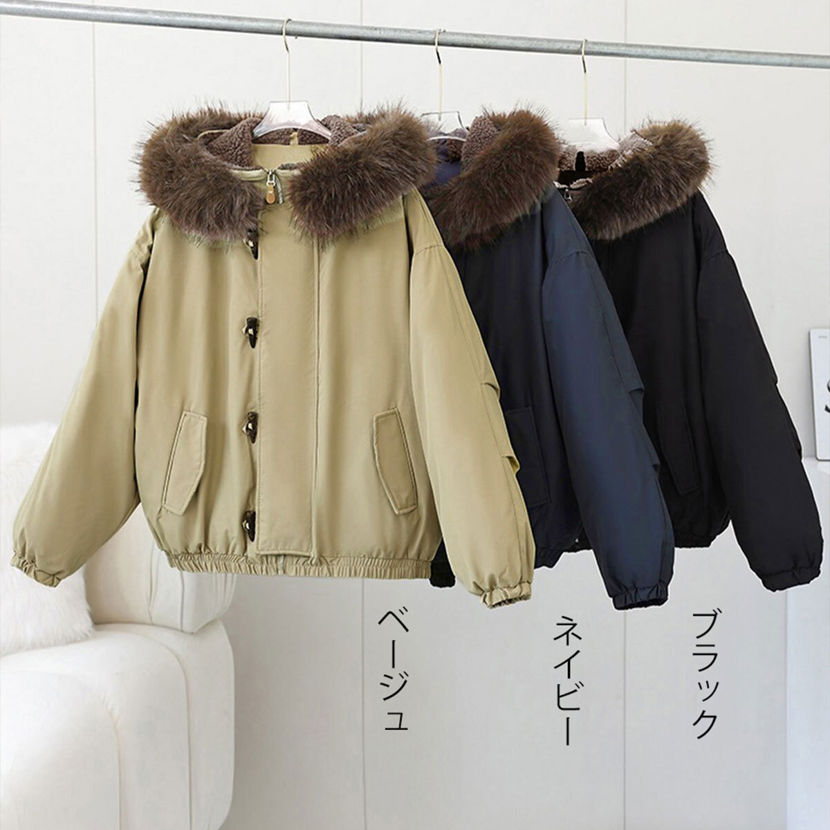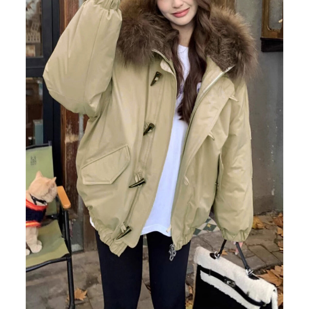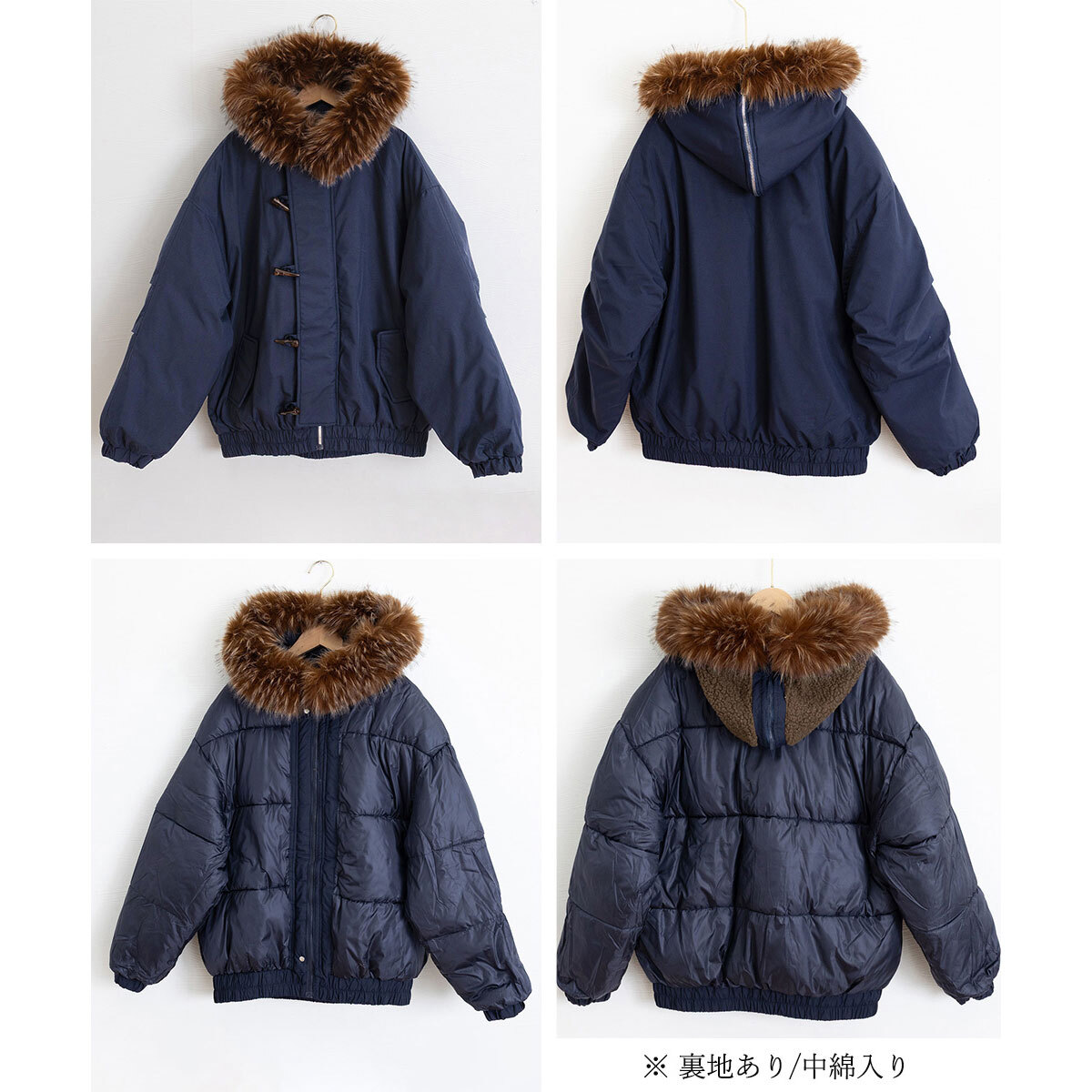 ダウン ジャケット ファー襟 中綿 レディース 冬 韓国 アウター 防寒 防風 保温 きれいめ 大人 カジュアル トグルボタン ダッフル風 ゆったり 体型カバー 厚手 フェイクダウン エコファー 暖かい 大人可愛い 大人女子
