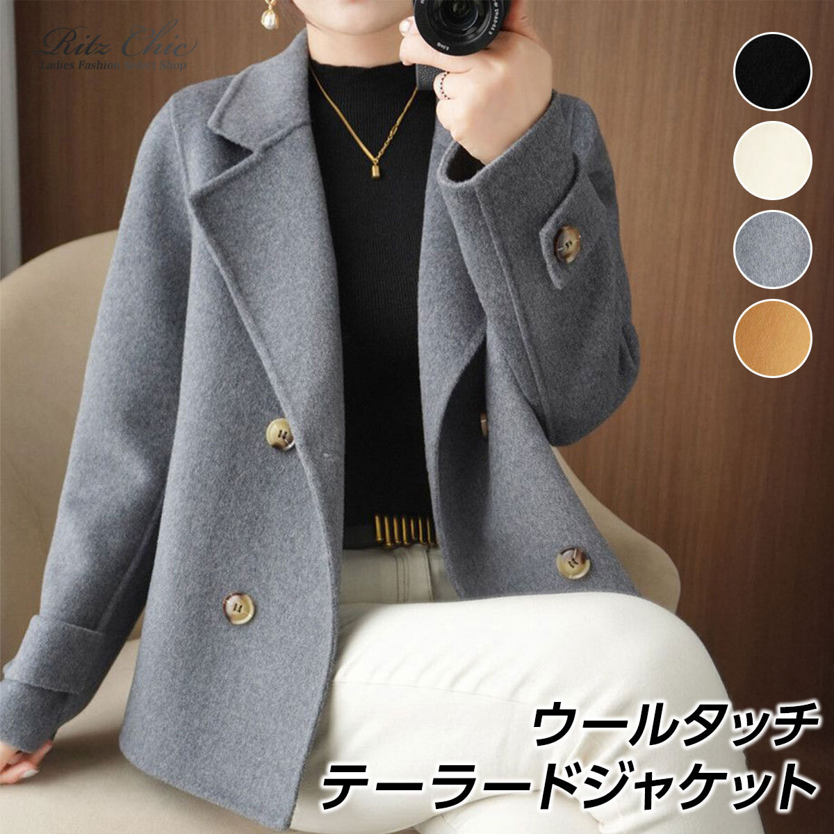 ウールタッチ テーラード ジャケット アウター レディース 秋冬 韓国 防寒 保温 微起毛 大人 きれいめ 通勤 ビジネス オフィス シンプル カジュアル ショート丈 上品 大人可愛い 大人女子