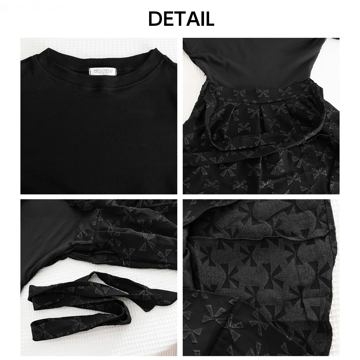 ◇リボン柄の切り替えデザインが目を引くAラインワンピース。