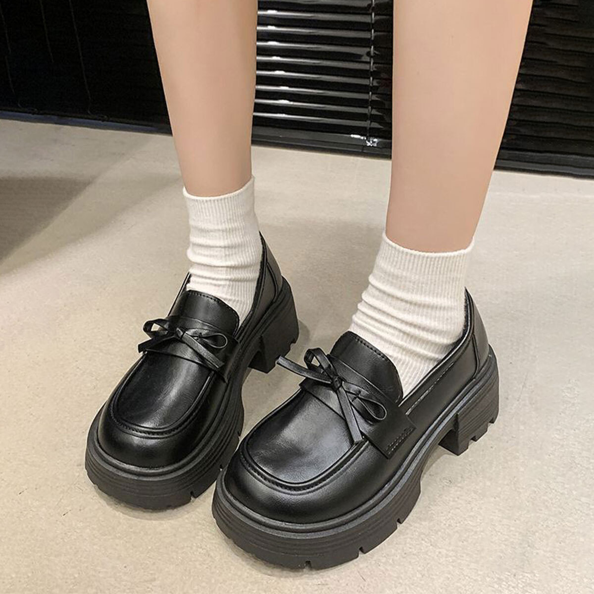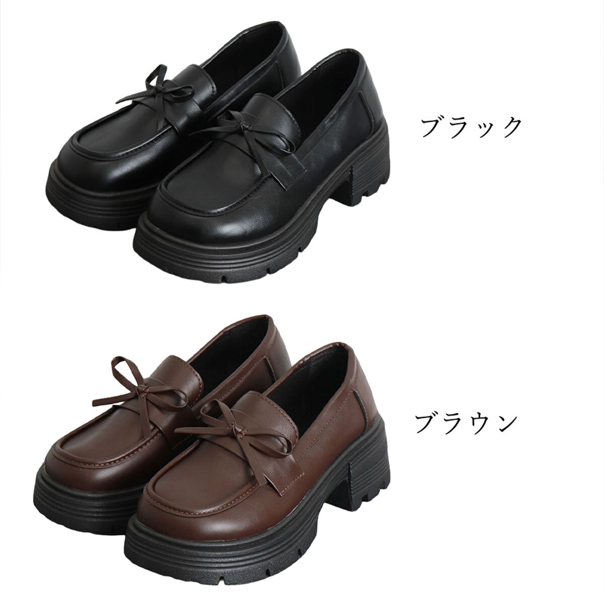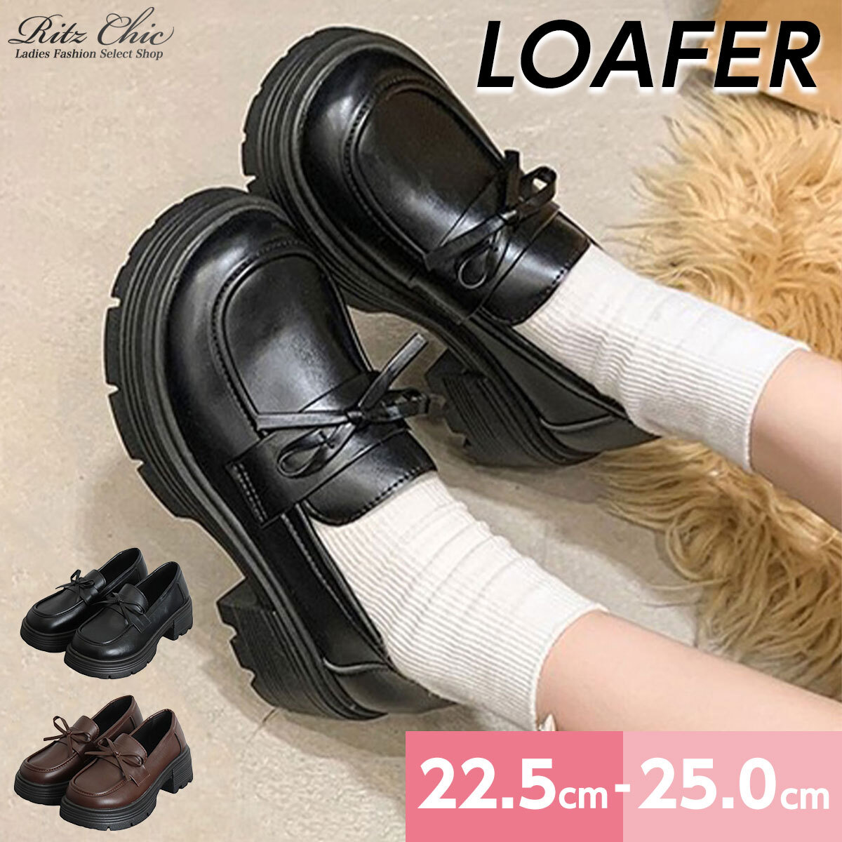 リボン ローファー PUレザー レディース 韓国 シューズ 大人 学生 通勤 通学 きれいめ カジュアル シンプル 歩きやすい チャンキーヒール 大人可愛い 大人女子