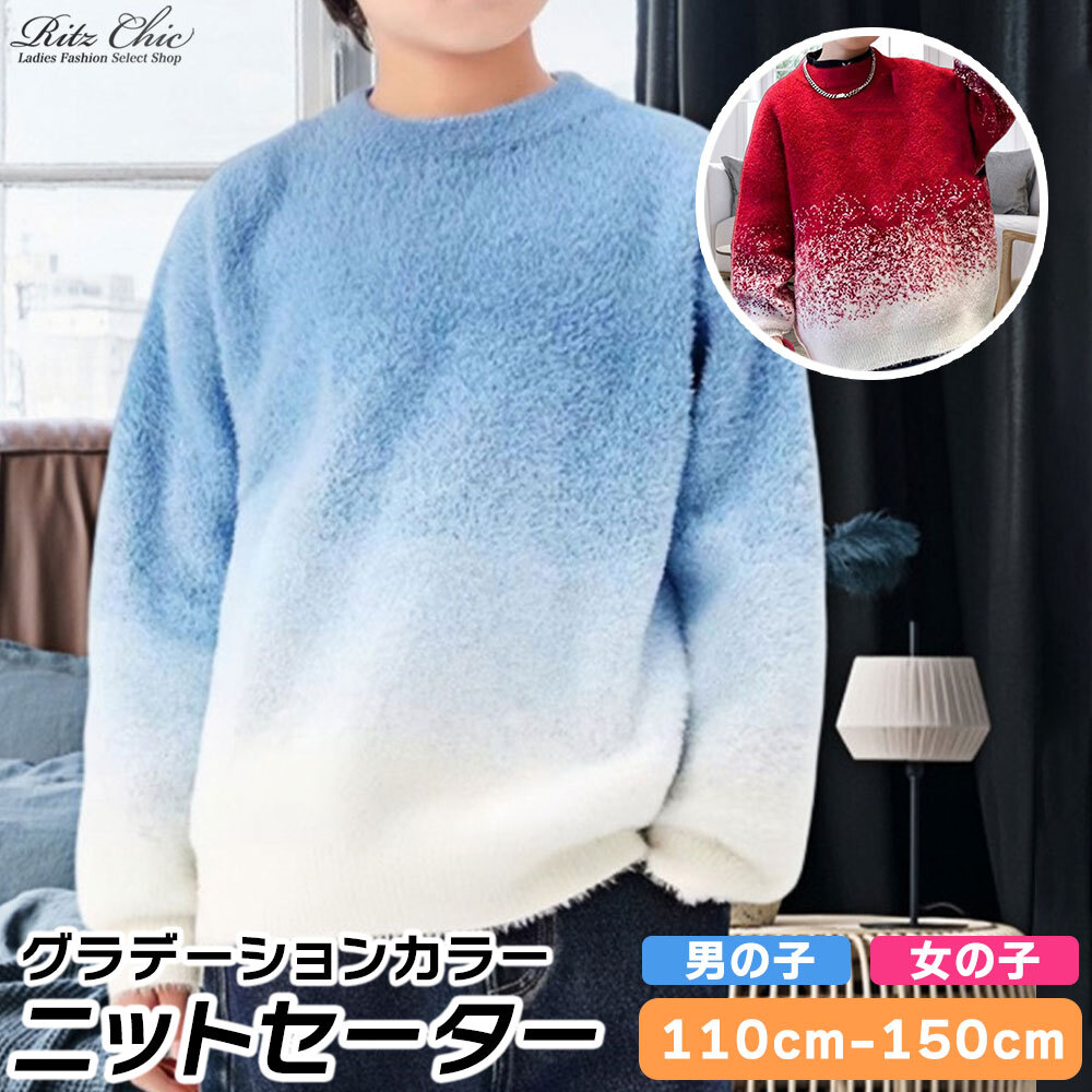 【送料無料】 子供服 男の子 女の子 キッズ ニット セーター グラデーション 長袖 韓国 春秋 おしゃれ 厚手 暖かい カジュアル ゆったり 小学生 柔らかい 大人可愛い 大人女子