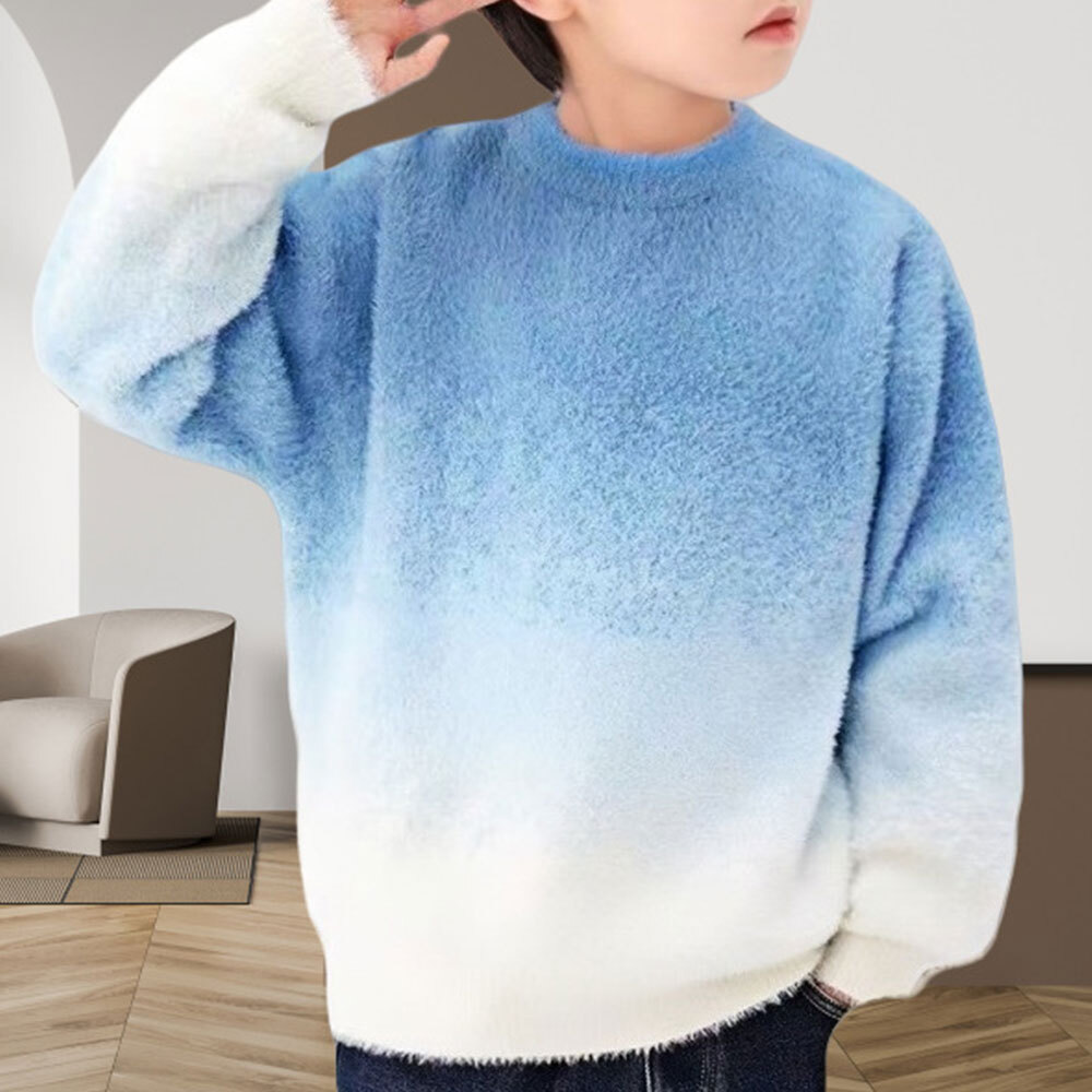 お洒落なグラデーションカラーが周りの目を惹く、男の子女の子向けのキッズニットセーターです。