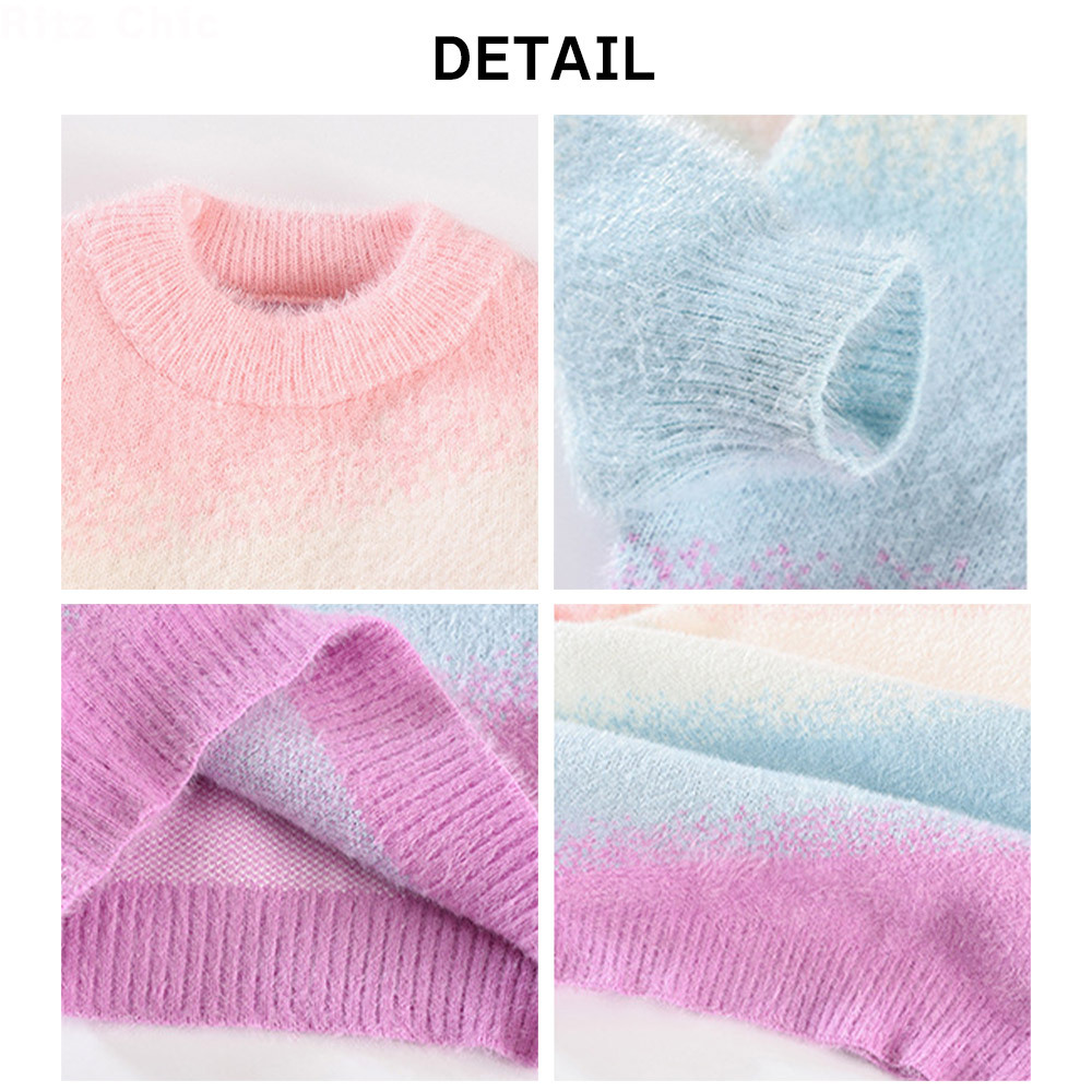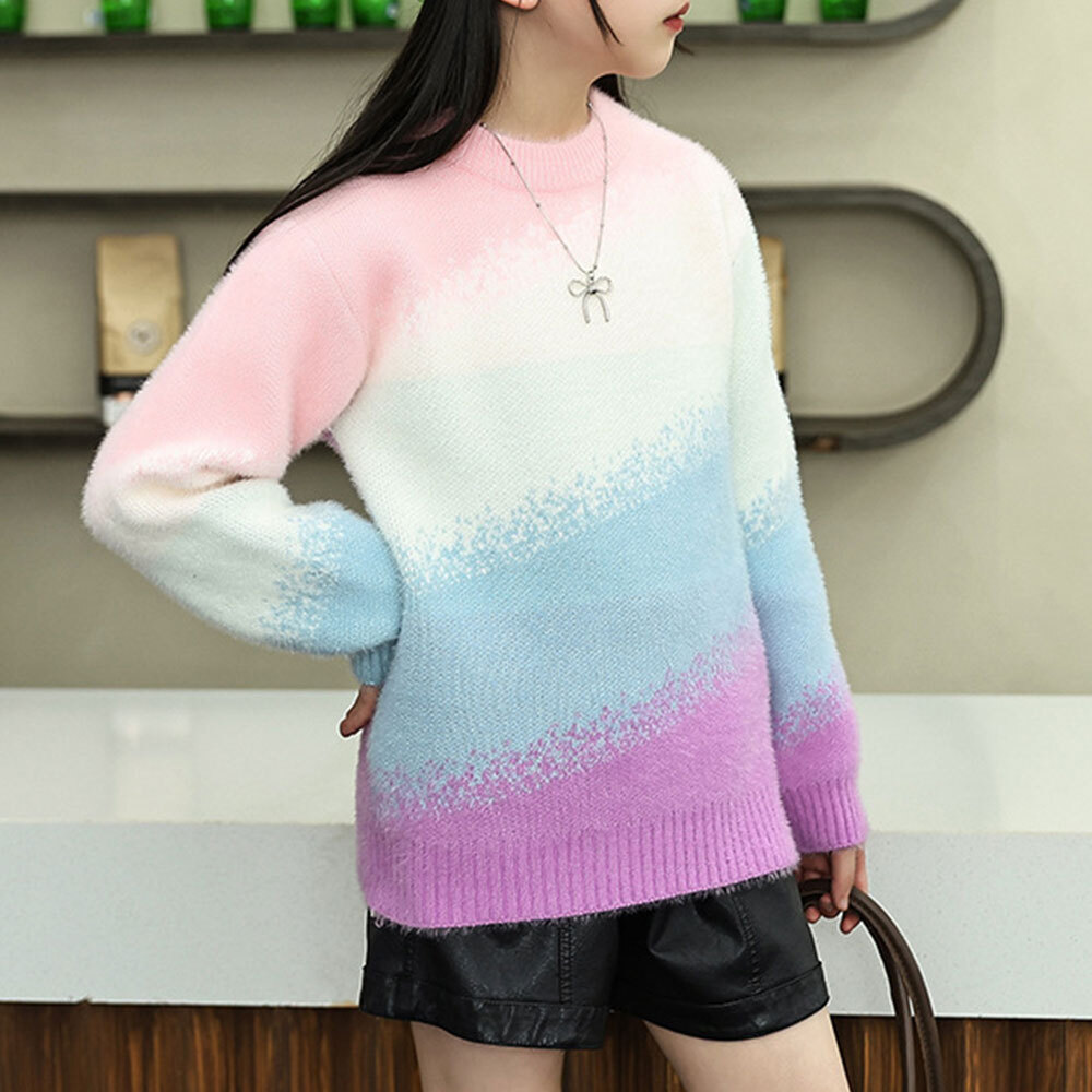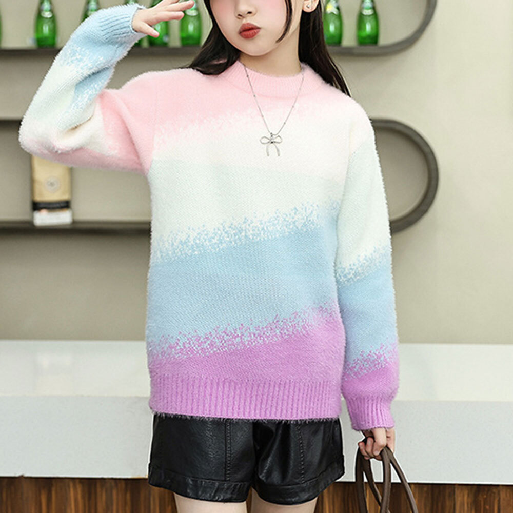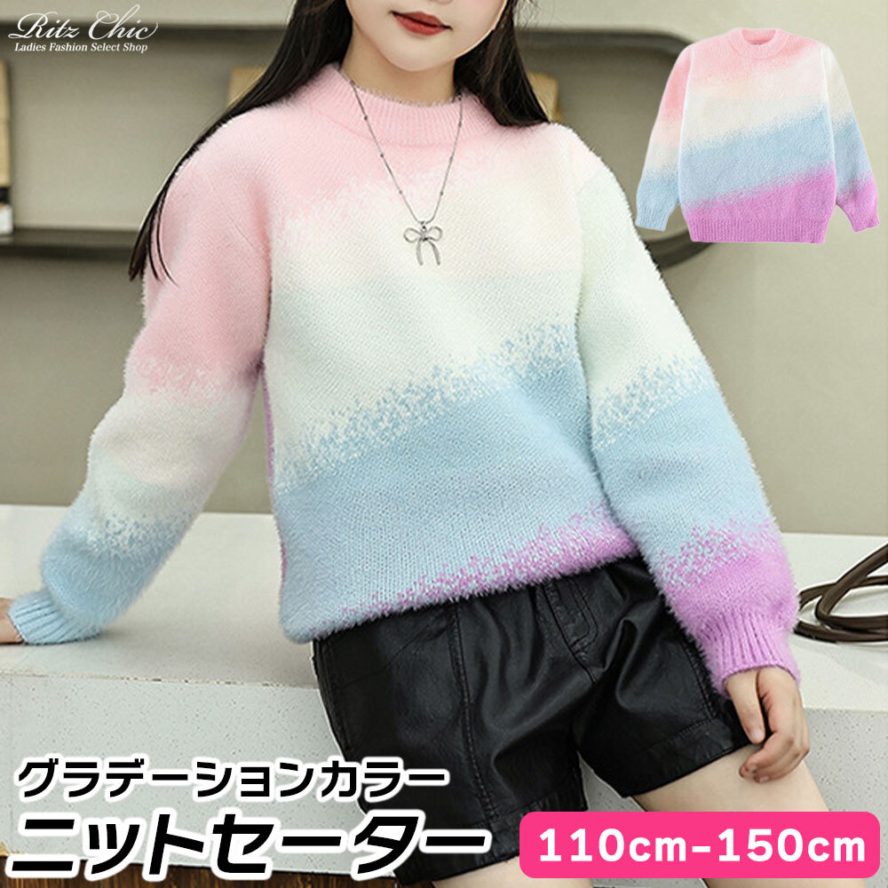 【送料無料】 子供服 女の子 キッズ 小学生 ニット セーター 長袖 グラデーション カラフル 韓国 春秋 おしゃれ かわいい カジュアル ゆったり 通学 厚手 暖かい 大人可愛い 大人女子