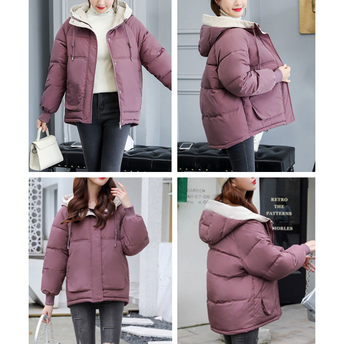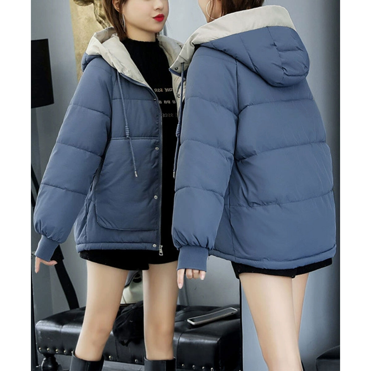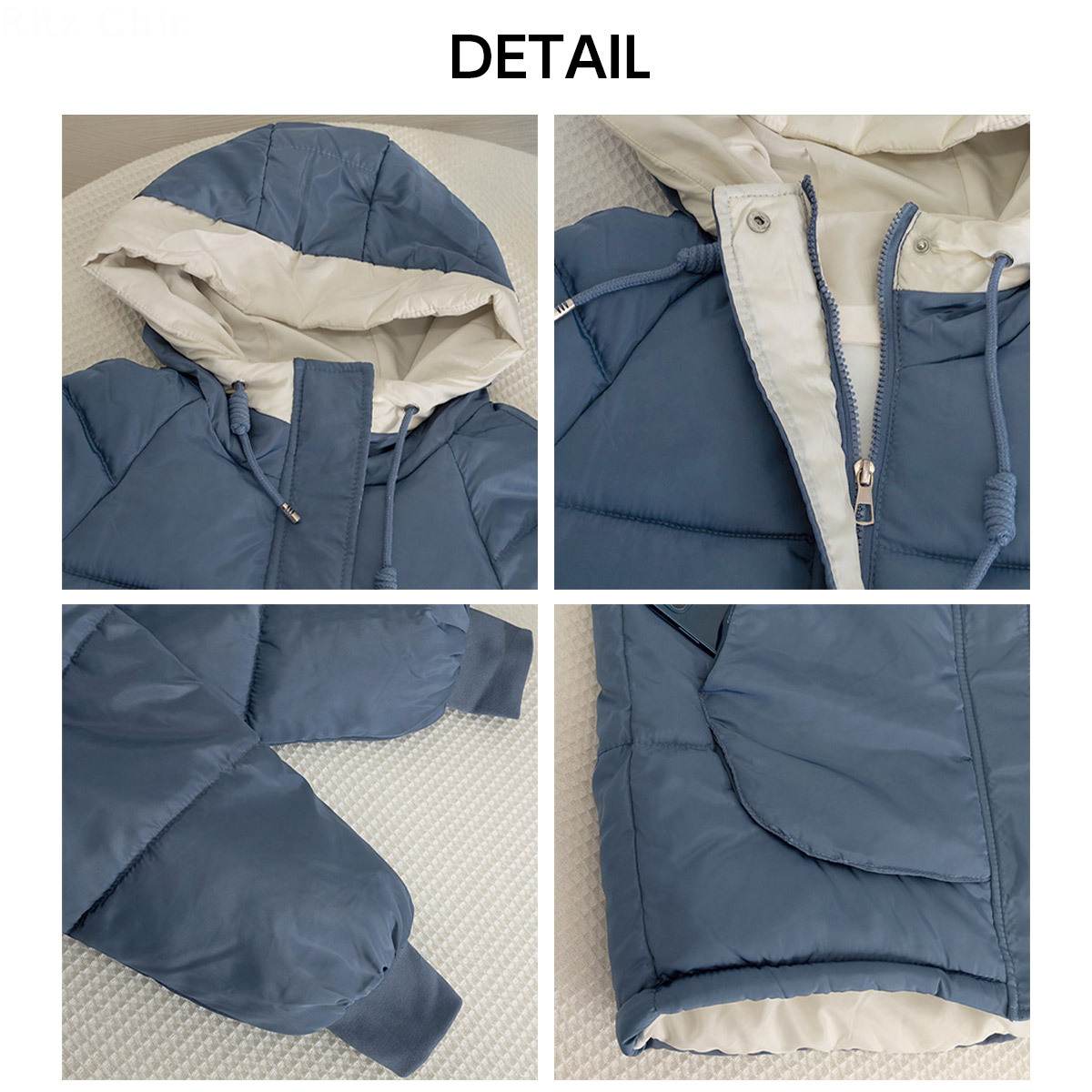 ダウンジャケット フード付き 中綿 アウター レディース 冬 防寒 保温 暖かい 韓国 きれいめ 大人 カジュアル フェイクダウン ブルゾン バイカラー 通勤 通学 大人可愛い 大人女子
