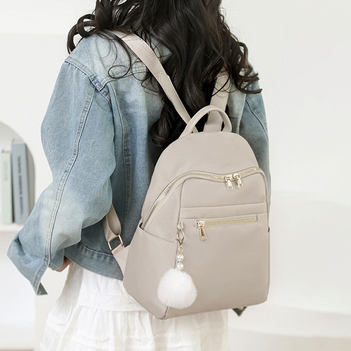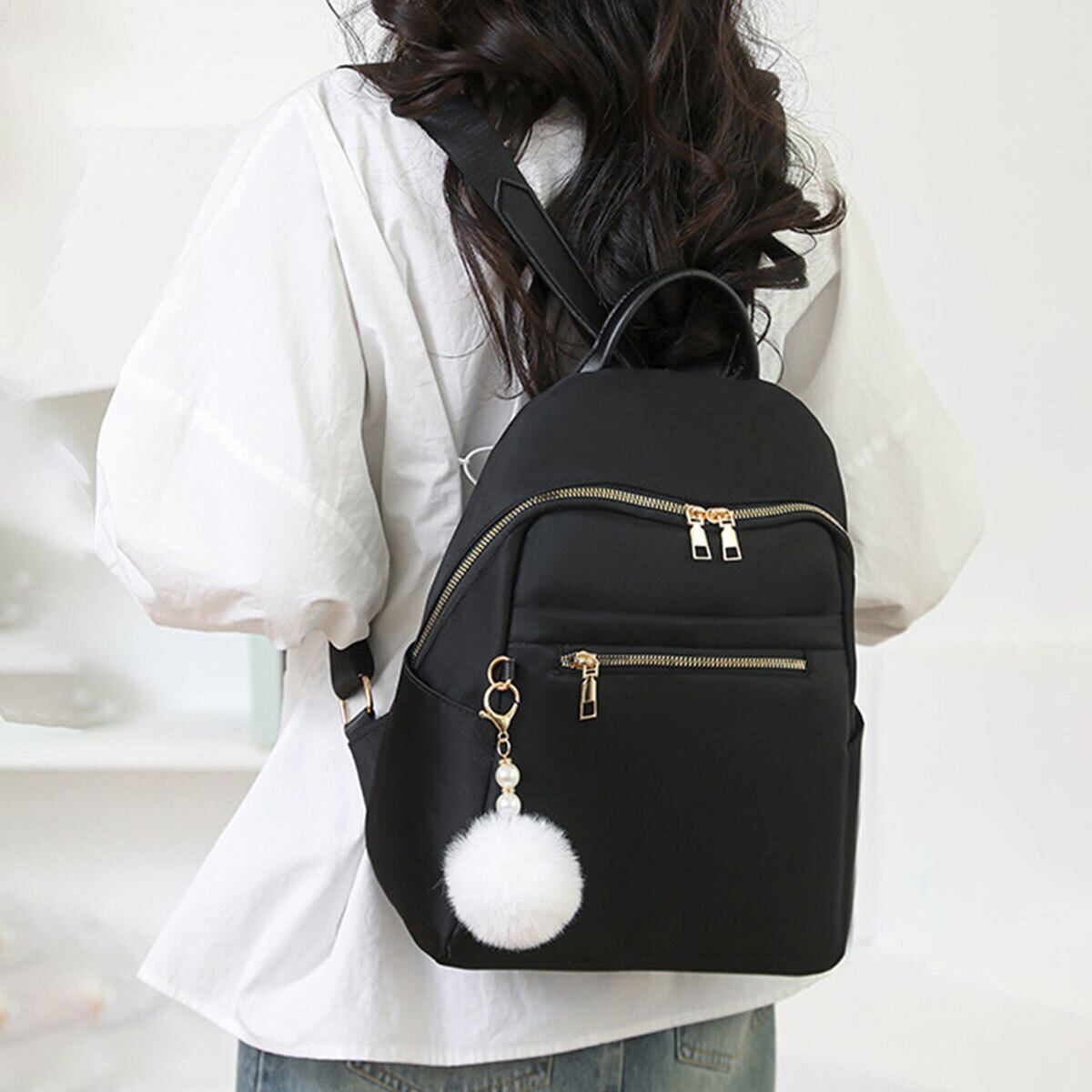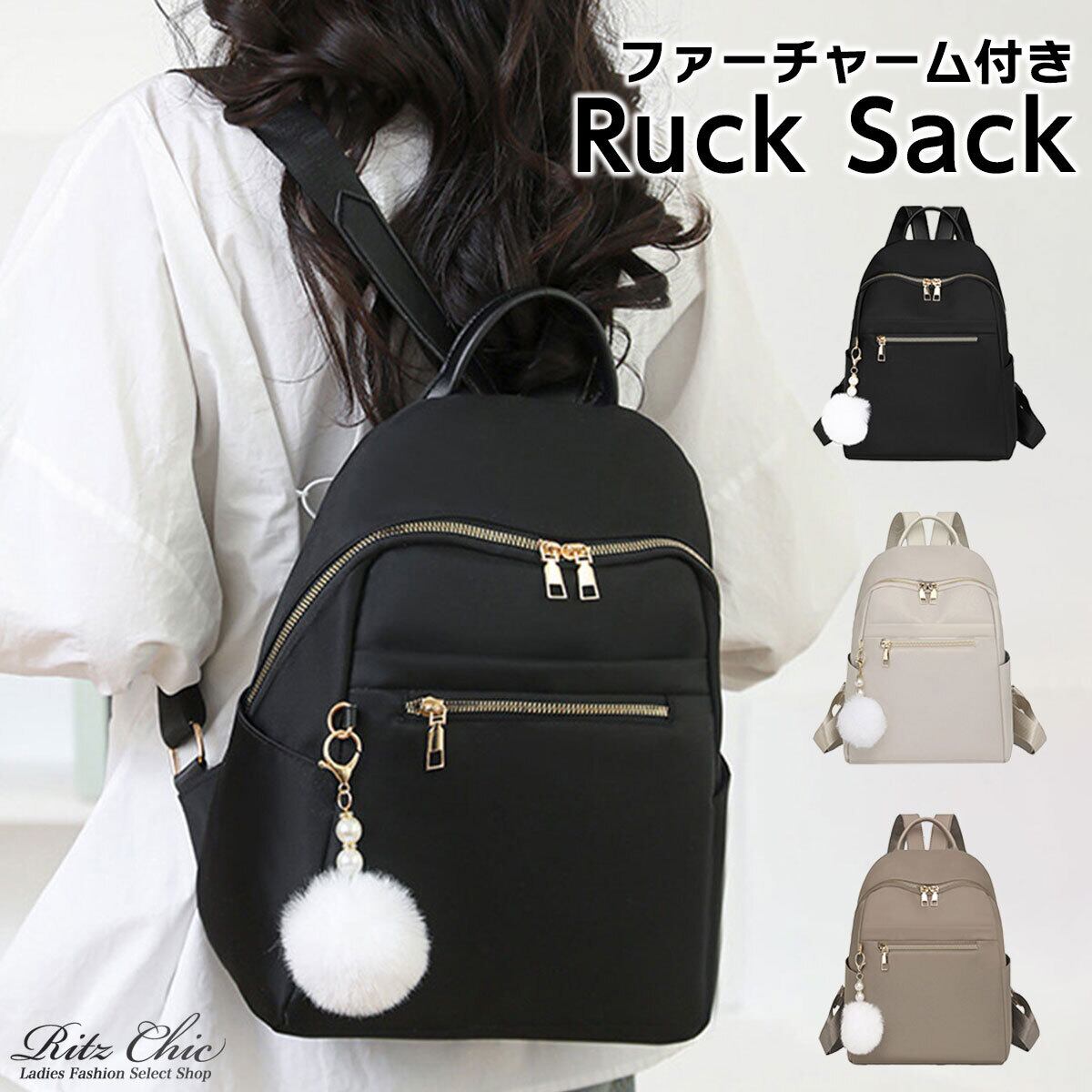 リュックサック ファーチャーム付き レディース 多収納 軽量 韓国 小さめ おしゃれ 大人 かわいい カジュアル シンプル 通勤 通学 学生 大人可愛い 大人女子