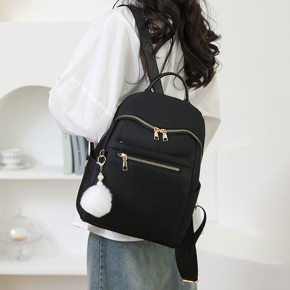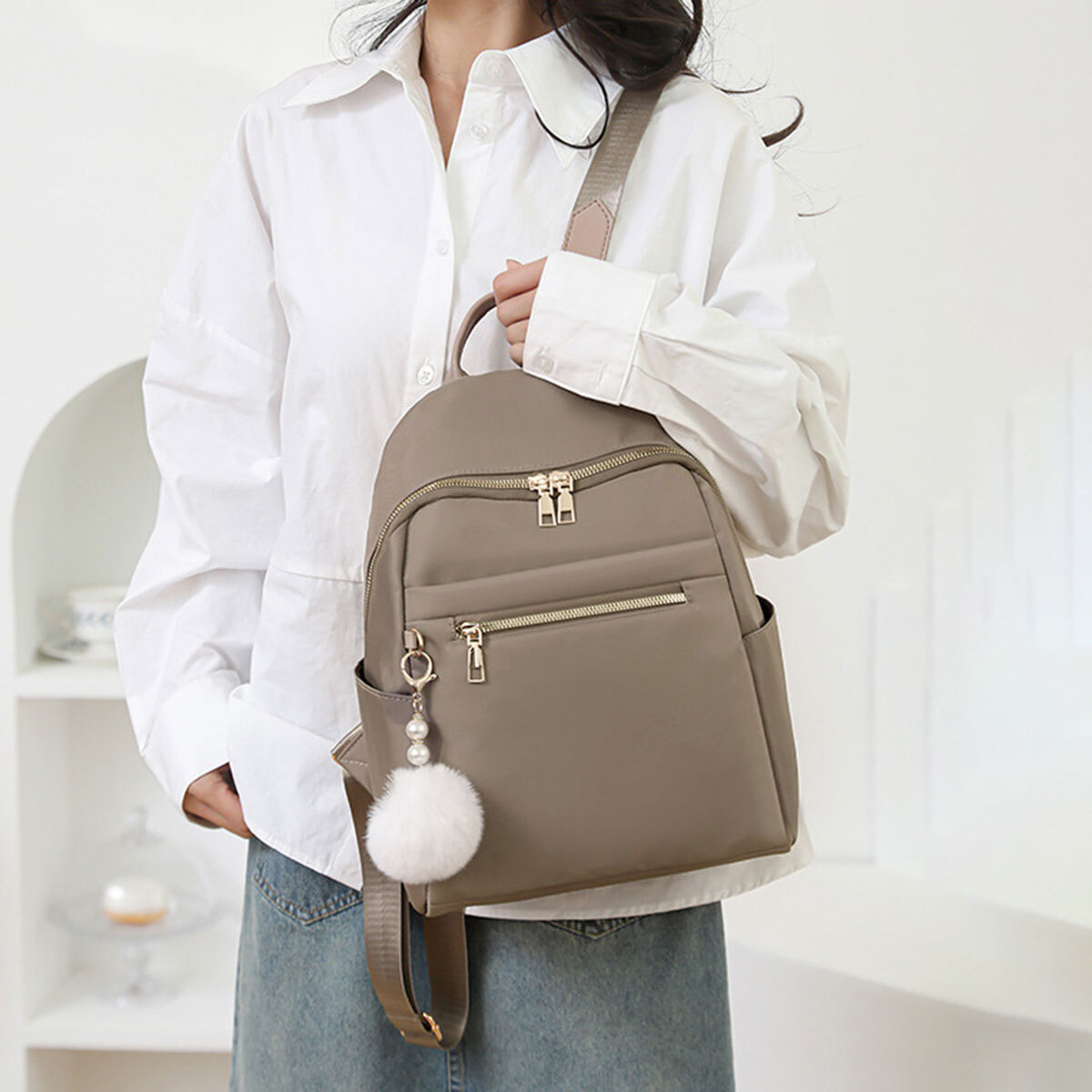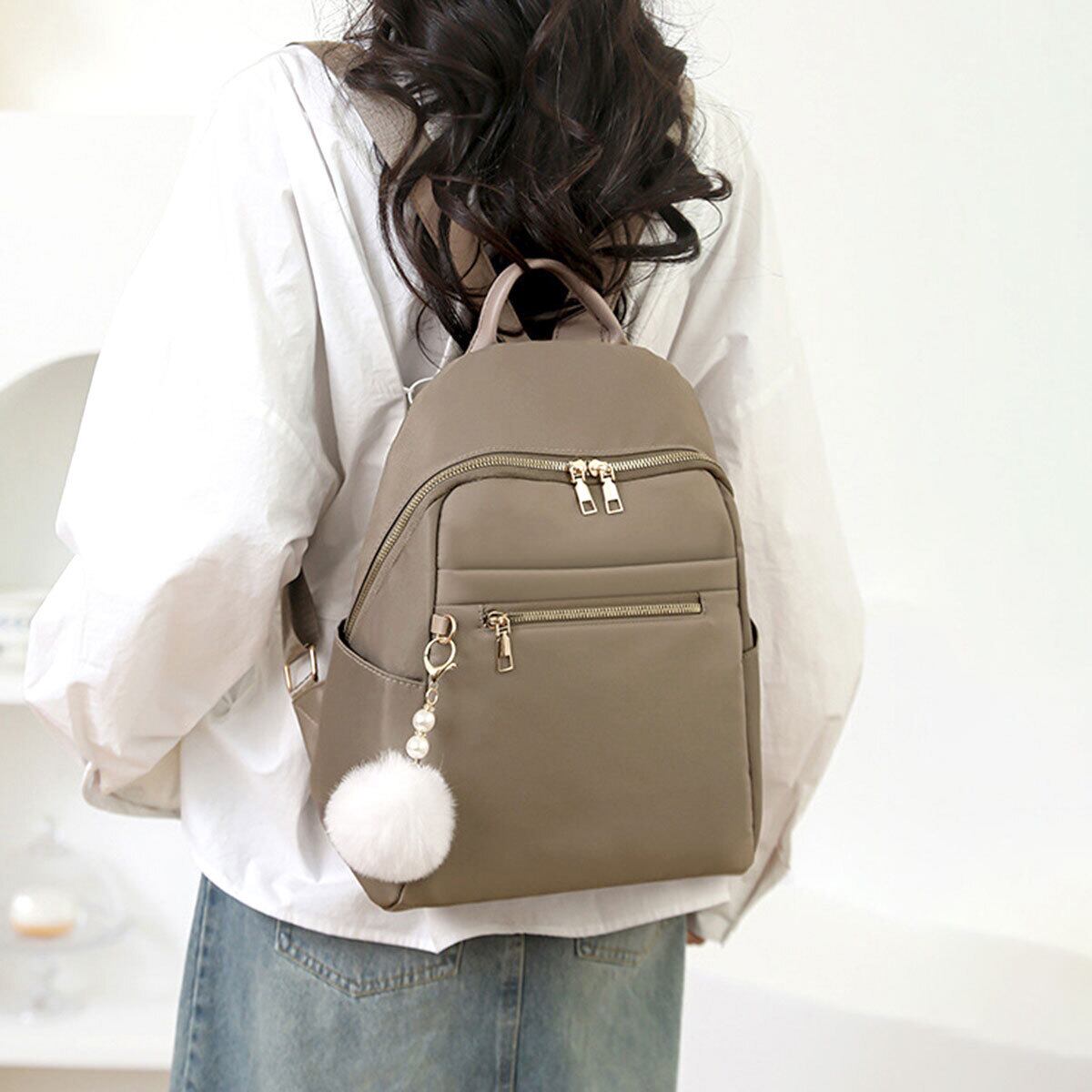 リュックサック ファーチャーム付き レディース 多収納 軽量 韓国 小さめ おしゃれ 大人 かわいい カジュアル シンプル 通勤 通学 学生 大人可愛い 大人女子