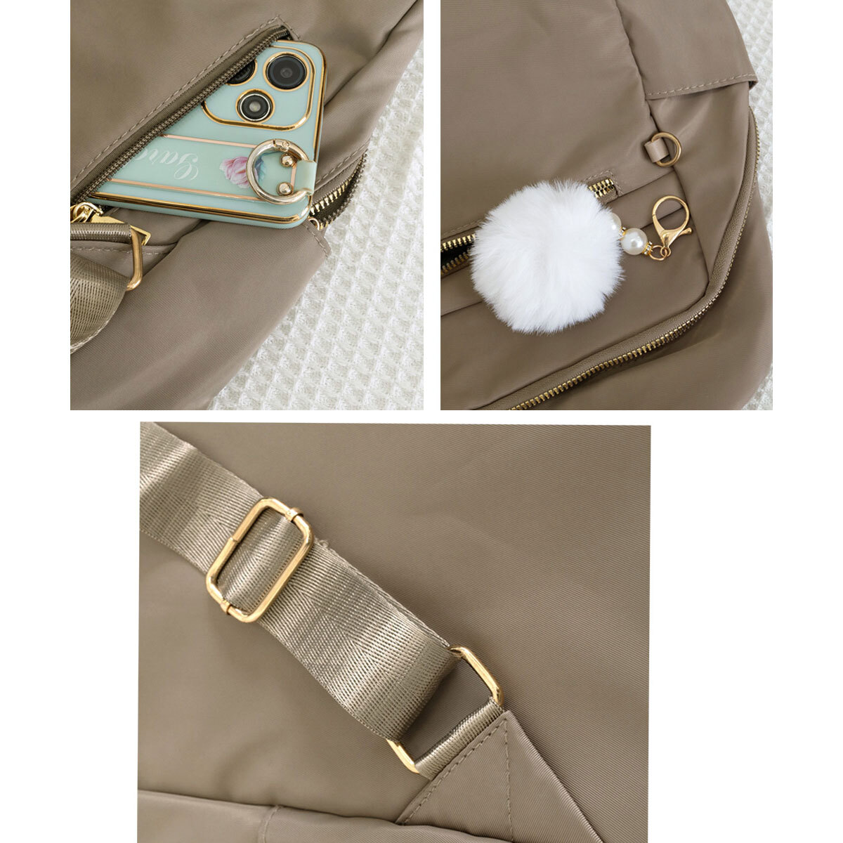 取り外し可能なファーチャームが付いていて、コーディネートに愛らしさをプラスしてくれます。