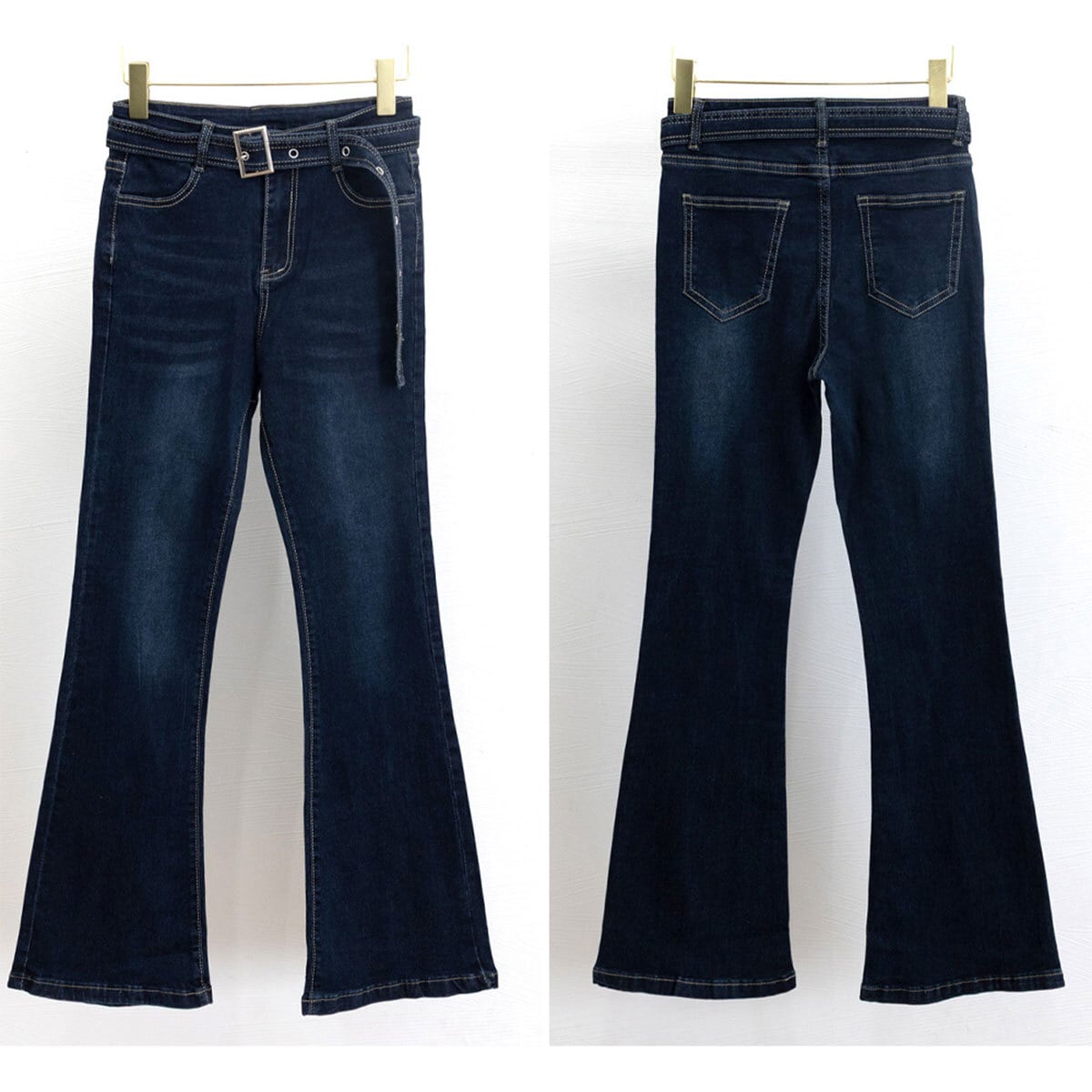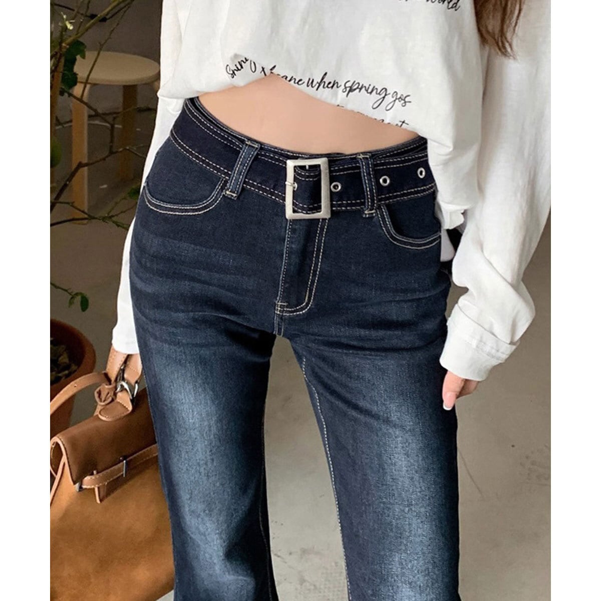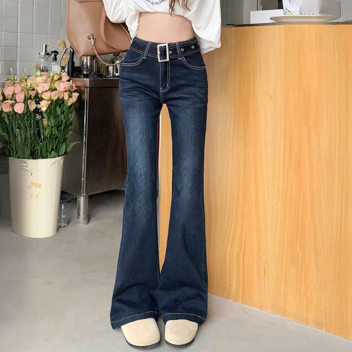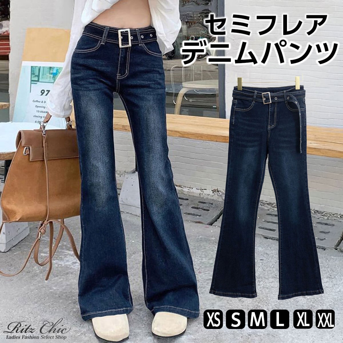 デニム パンツ セミフレア ジーンズ レディース 韓国 ベルボトム ヴィンテージ 大人 カジュアル レトロ おしゃれ ベルト付き デニムパンツ 美脚 脚長 ブーツカット 大人可愛い 大人女子