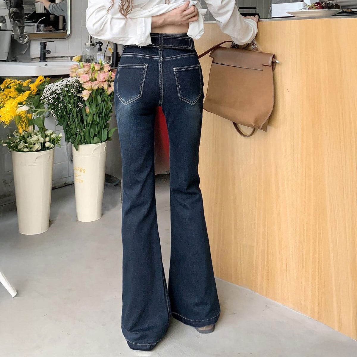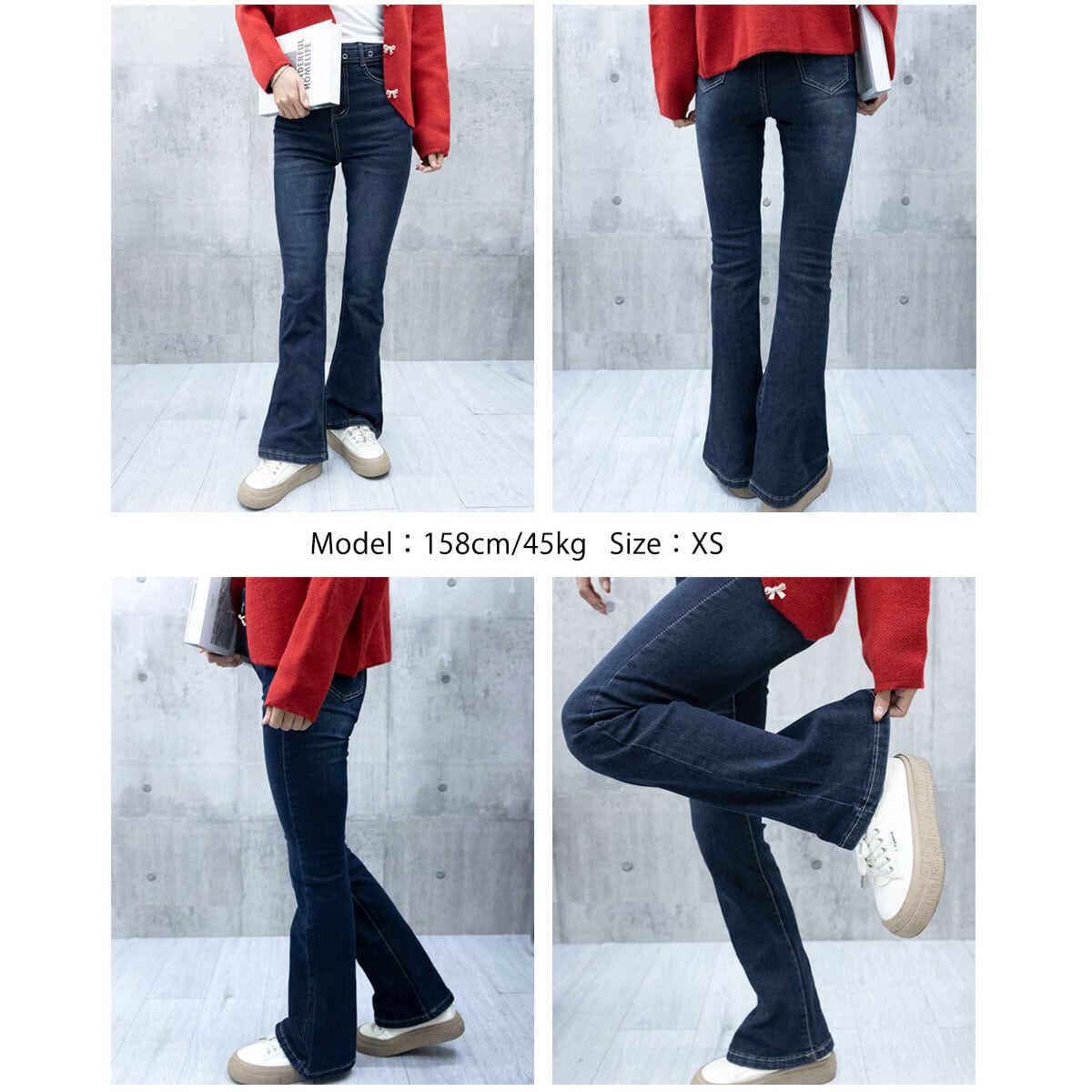 ◇美脚を引き立てるセミフレアデニムパンツ。