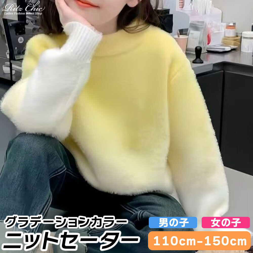 【送料無料】 子供服 女の子 男の子 キッズ セーター グラデーション 長袖 ニット 韓国 春秋 厚手 暖かい おしゃれ 小学生 カジュアル ゆったり 柔らかい イエロー 黄色 大人可愛い 大人女子