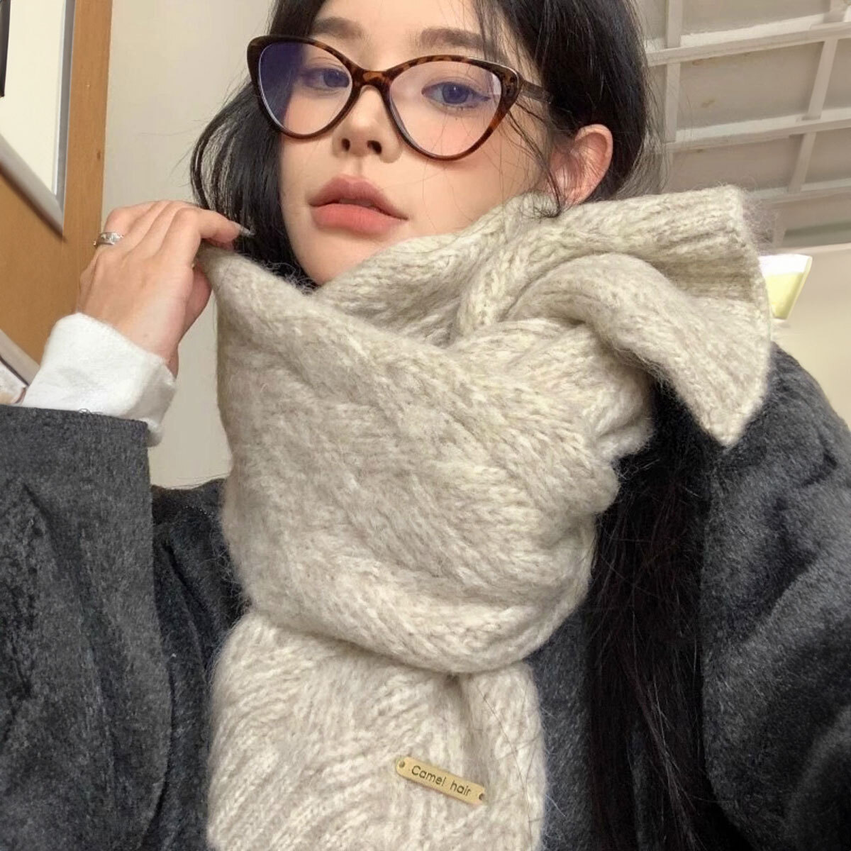 ◇SNS映えするボリュームたっぷりのニットマフラー。
