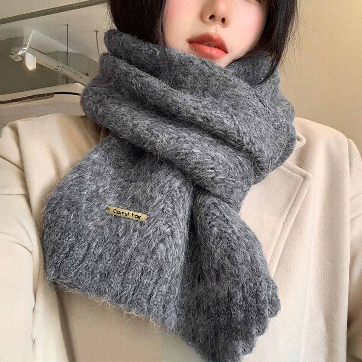 寒さ対策に優れたこのマフラーは、秋冬のスタイルにぴったりフィットしてくれます。