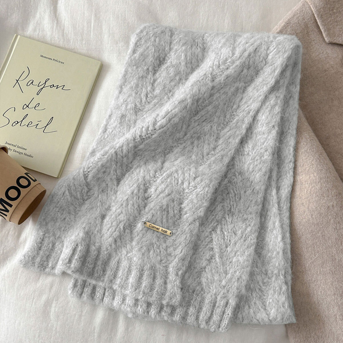柔らかく暖かい素材で首元をしっかり包み込み、寒い季節も快適に外出していただけるカシミヤタッチのニットマフラーです。